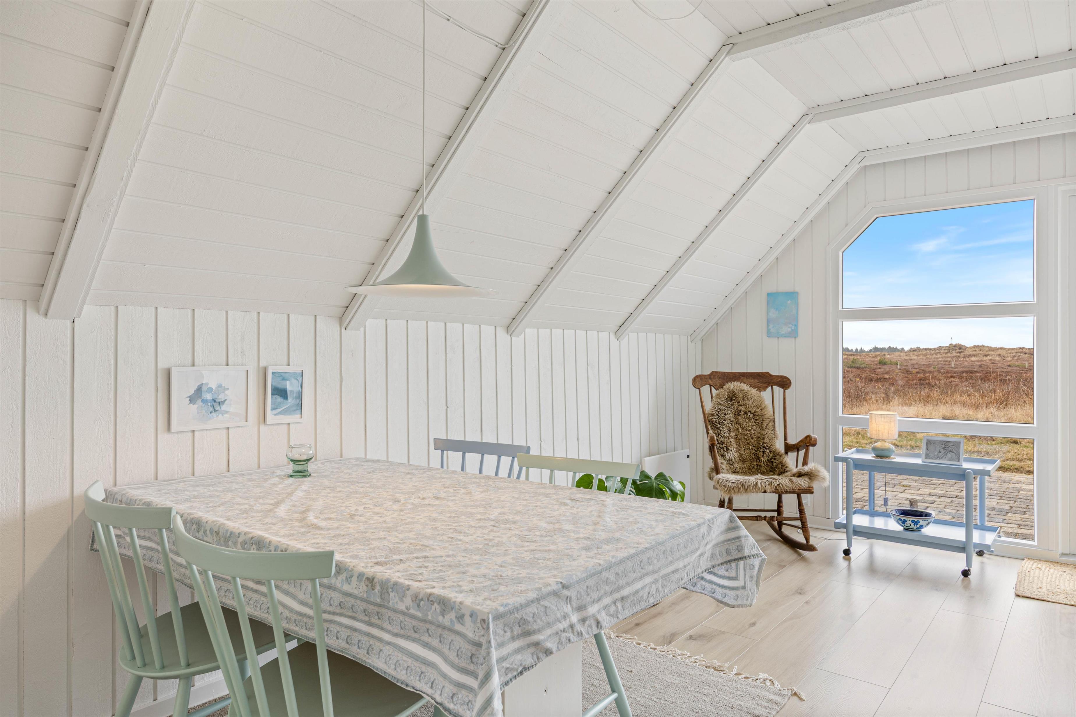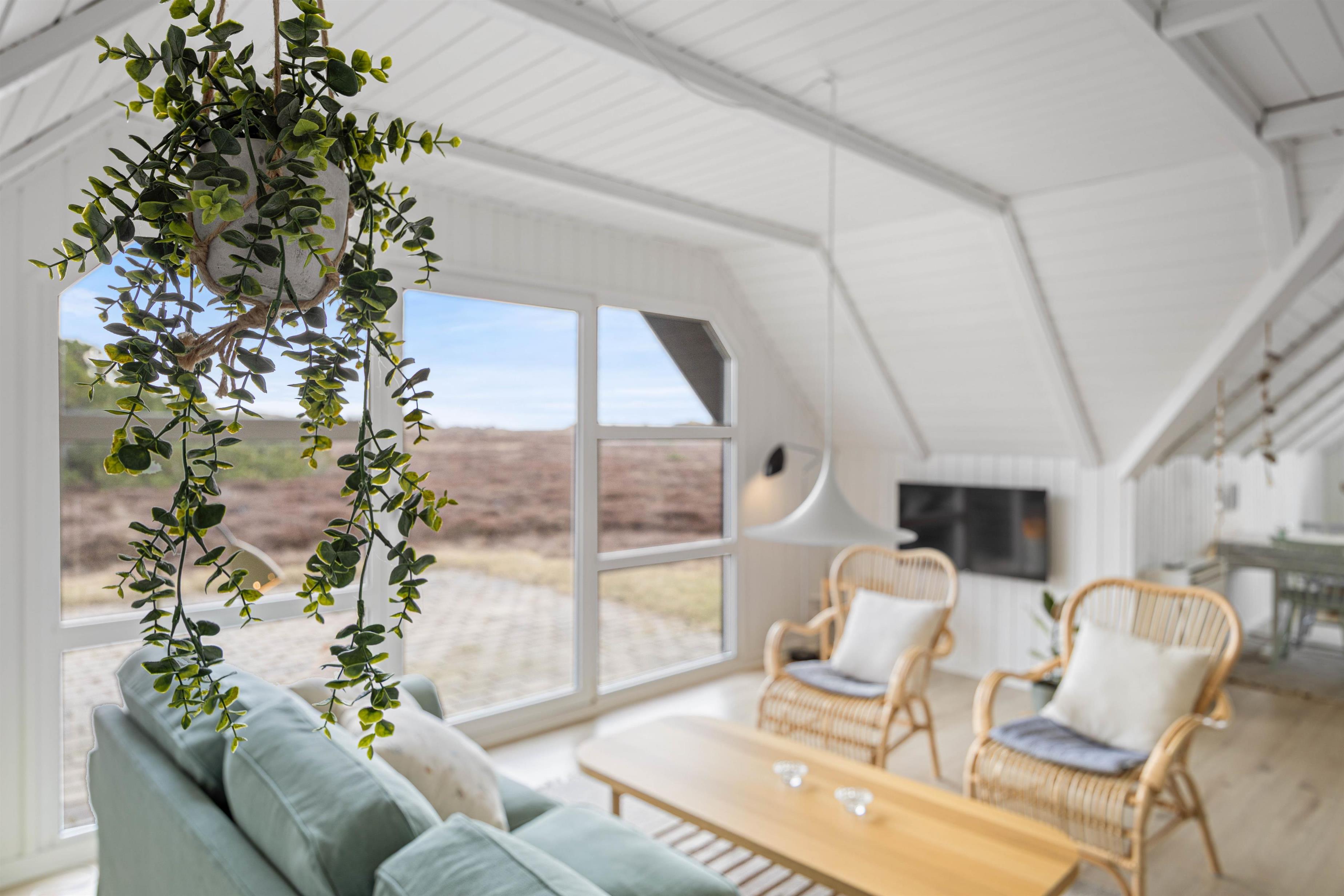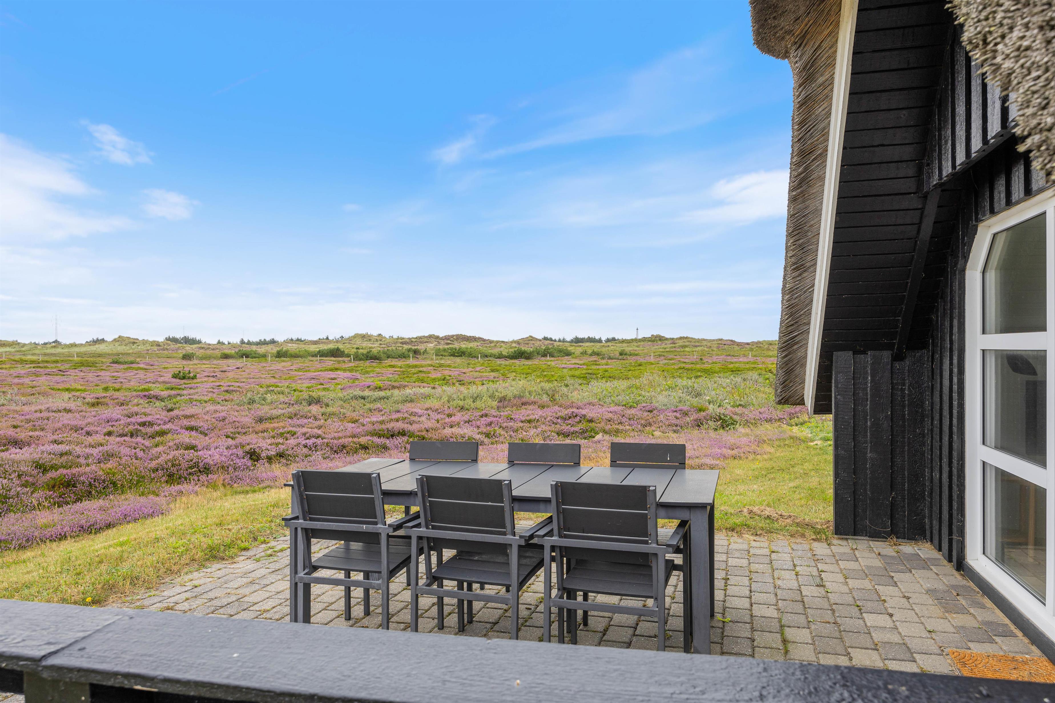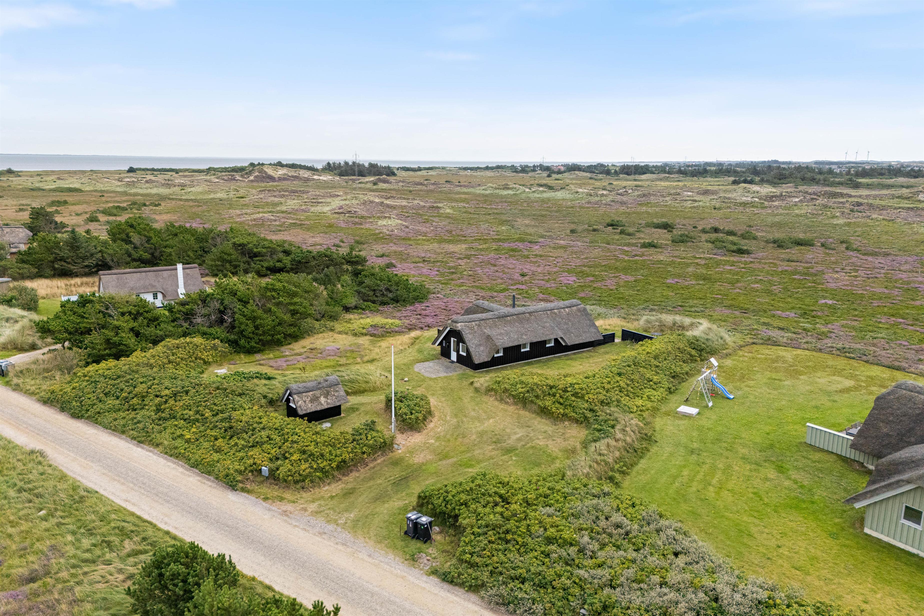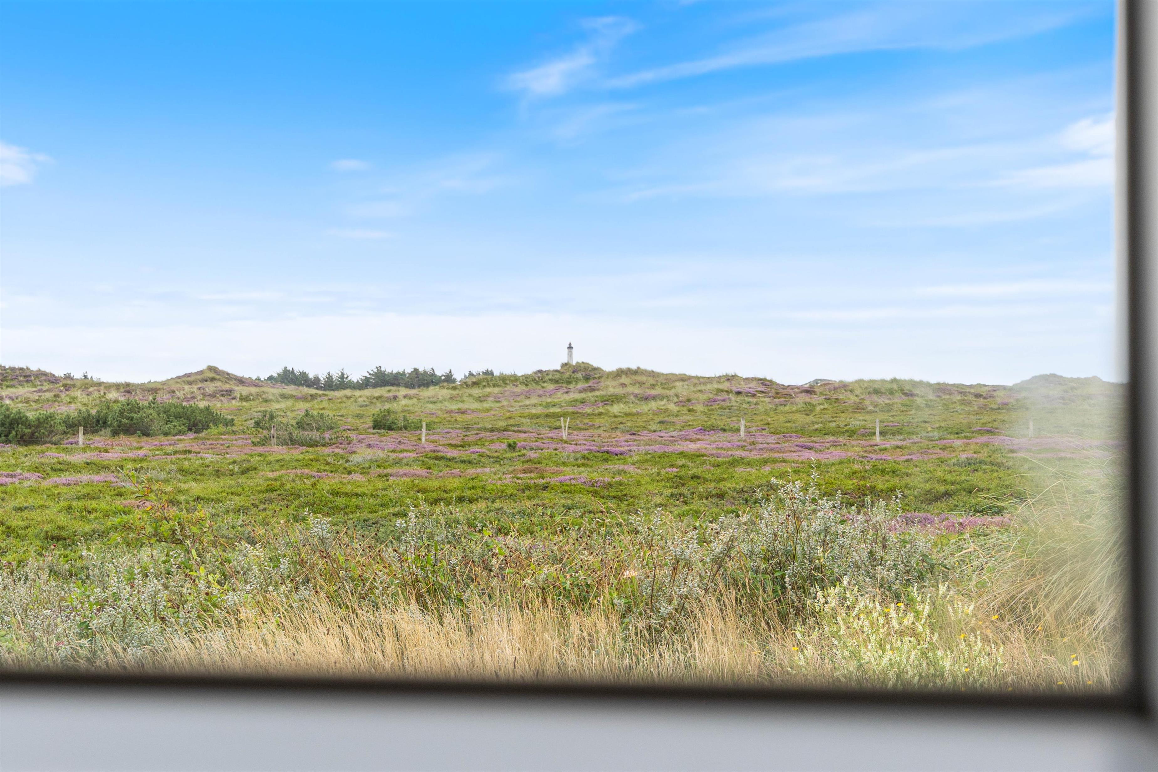 Sommerhuset ligger på en dejlig naturgrund omgivet af lyngklædte arealer, hvor I kan nyde roen og den friske havluft. Fra terrassen er der en skøn udsigt til Nr. Lyngvig Fyr. Den åbne terrasse er udstyret med havemøbler, så I kan nyde feriens måltider under åben himmel eller bare slappe af med en god bog. På grunden er der også et ladestik til el-bil, så I nemt kan lade bilen op, mens I holder ferie.