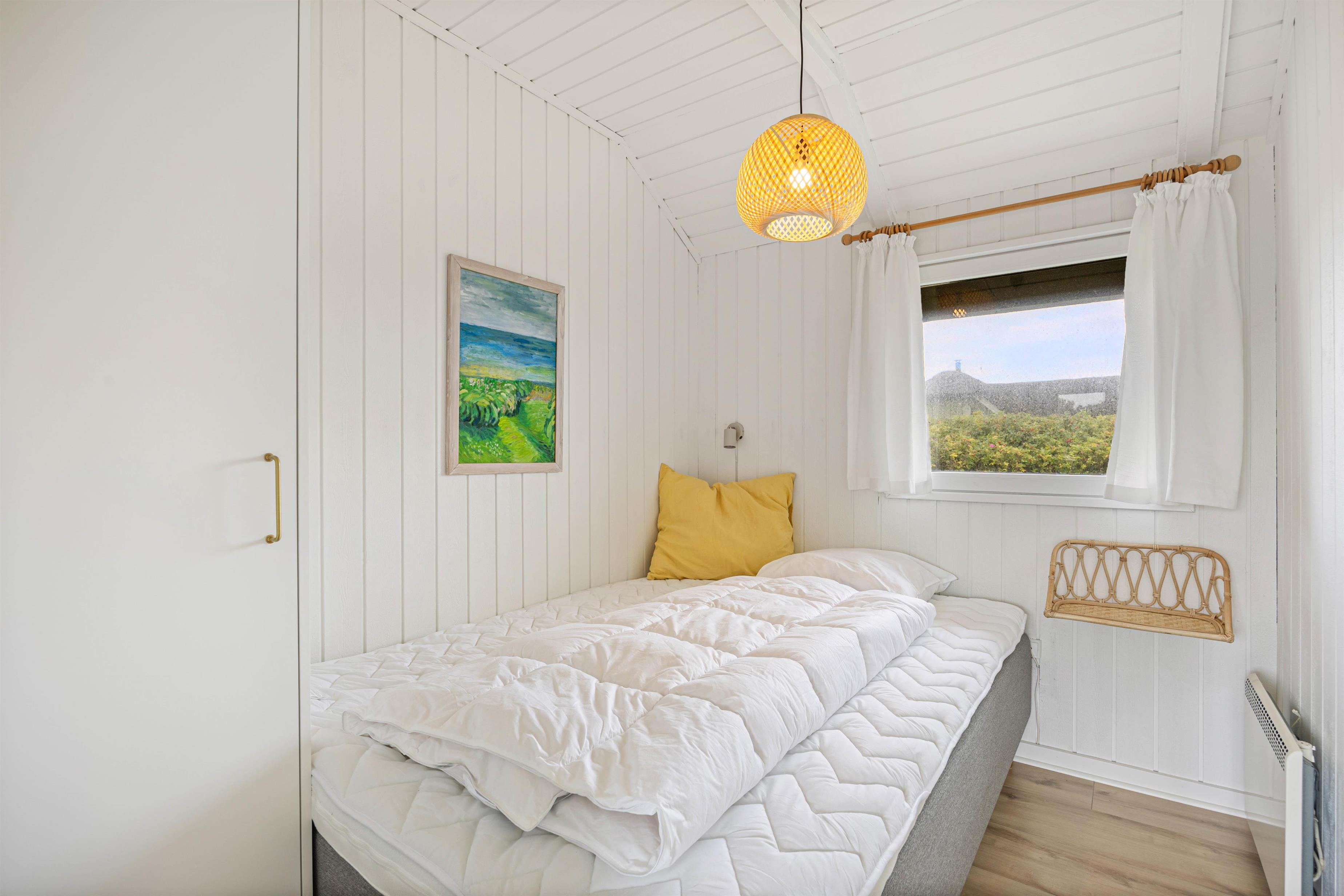 Sommerhuset har plads til 4 personer fordelt på 3 soverum. Badeværelset er lyst og har gulvvarme samt vaskemaskine, så I nemt kan klare praktiske gøremål under ferien.