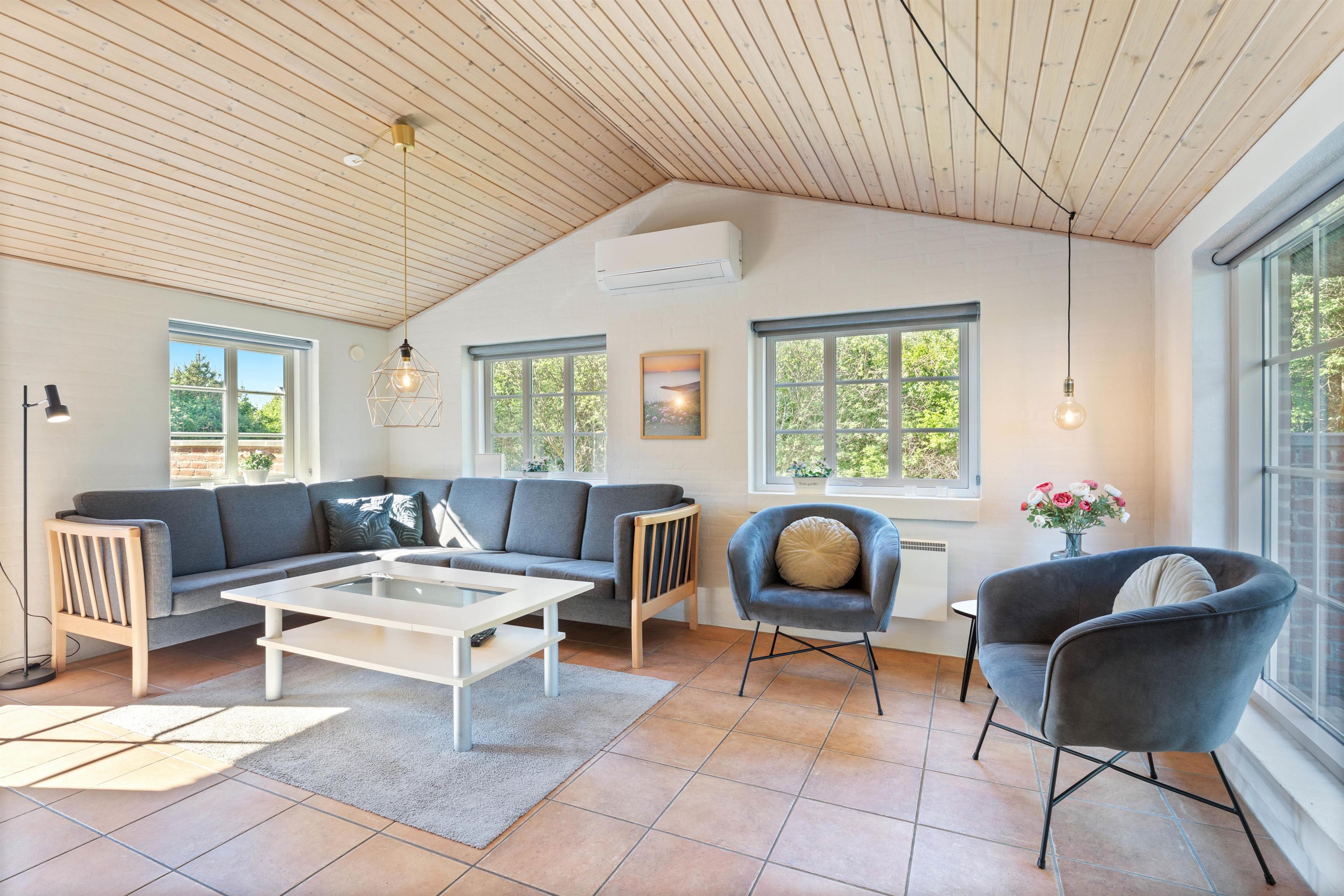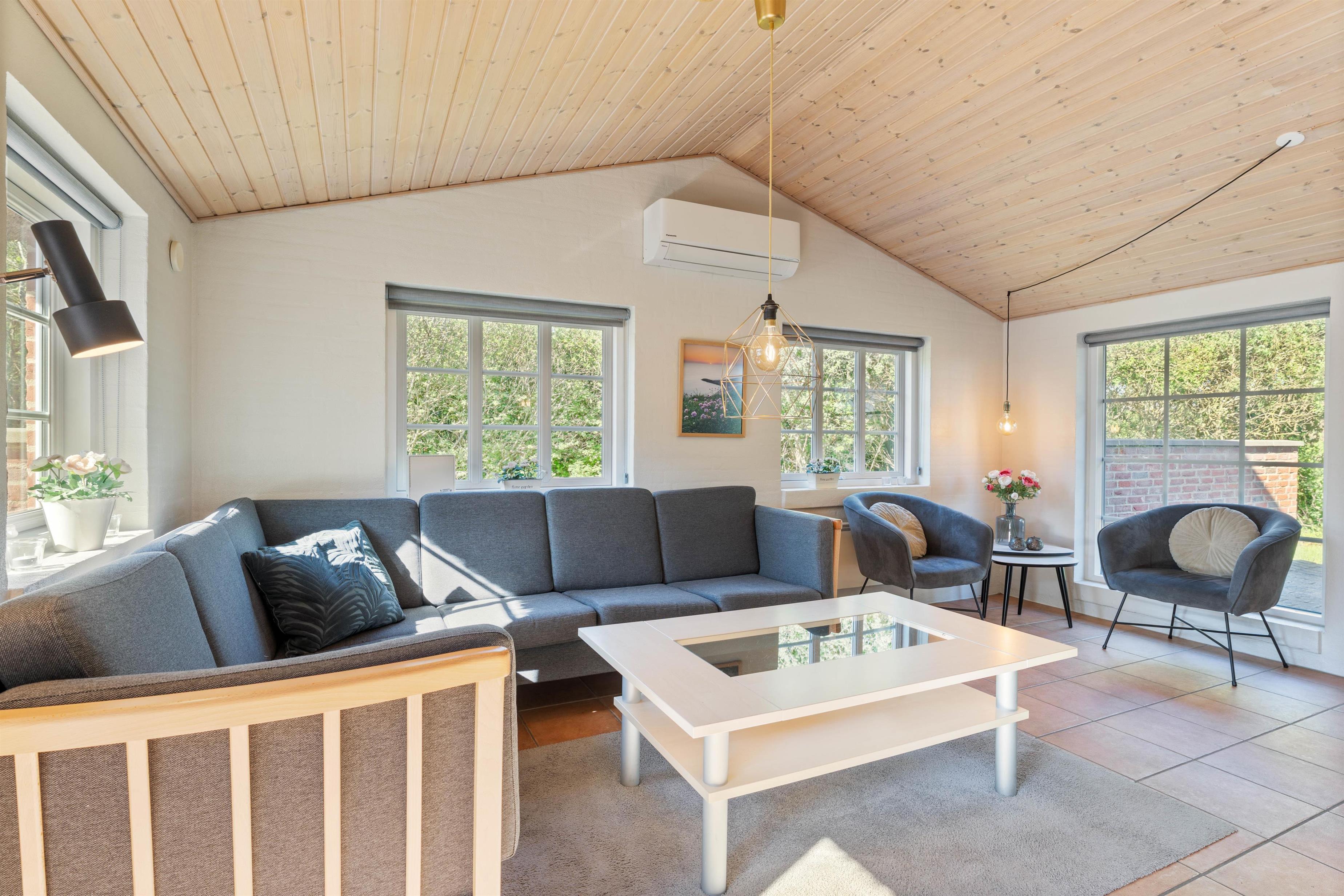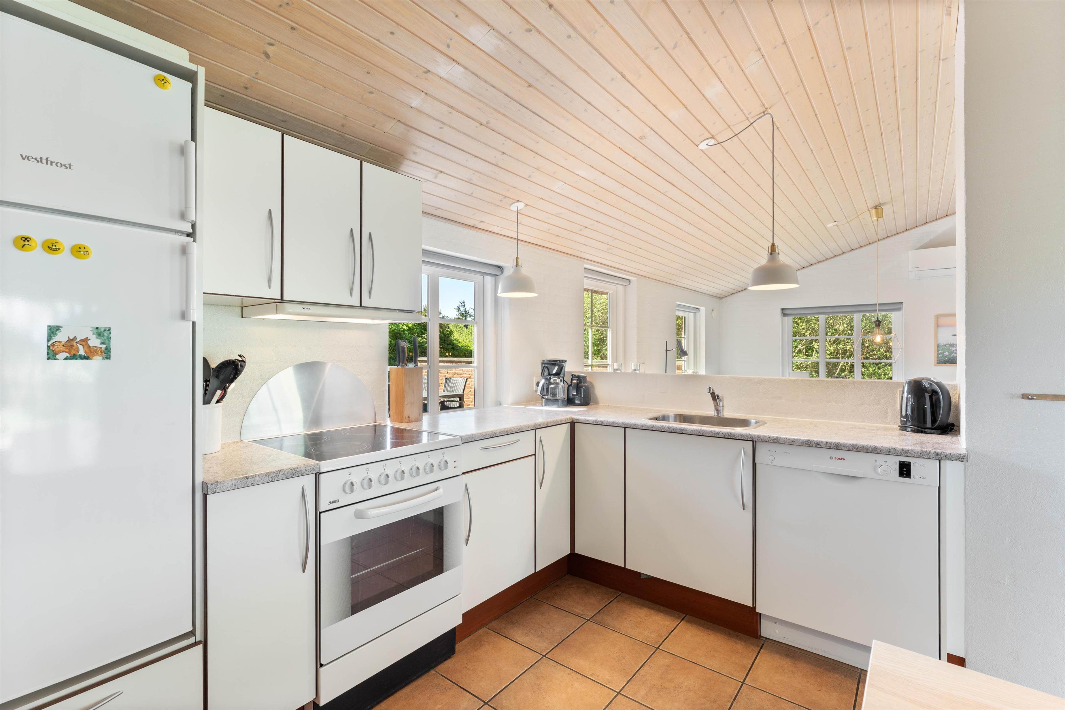 I dette hus er der mange af de moderne faciliteter, som bliver efterspurgt i dag. Desuden er der også en stor fladskærm, hvor film og sport kan nydes som derhjemme, og den trådløse internetforbindelse er til stor glæde for alle i familien. Den hyggelige brændeovn skaber både hygge og giver en dejlig varme.