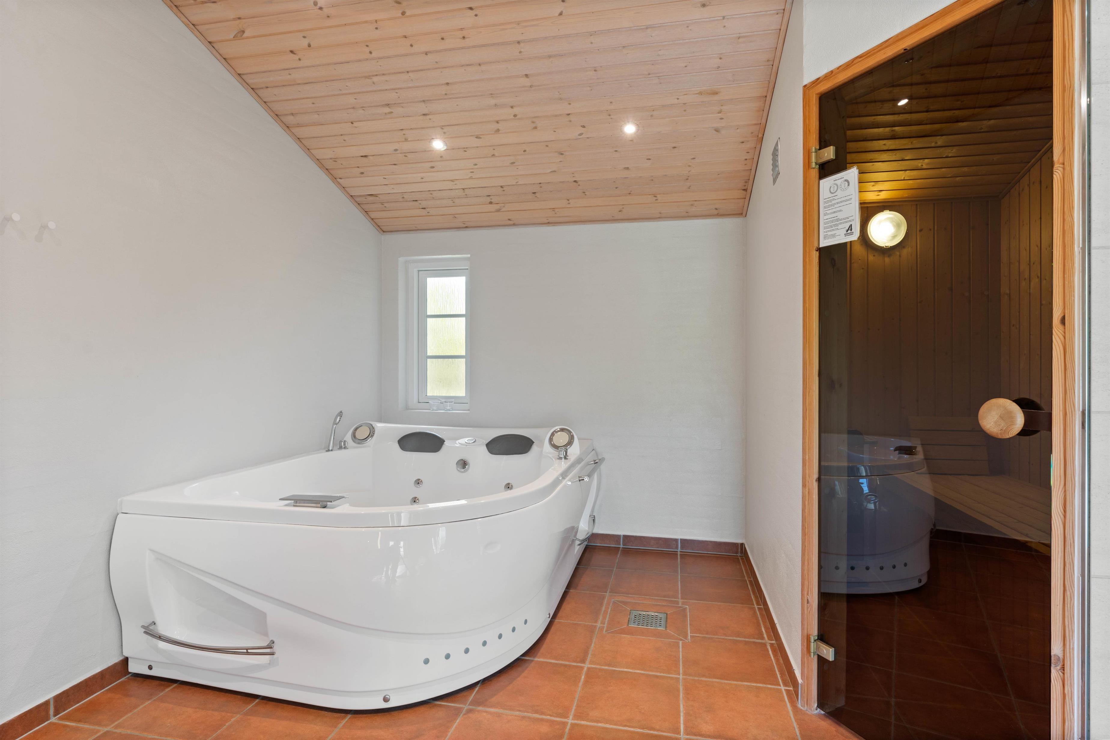 I dette hus er der både spa og sauna og en vaskemaskine