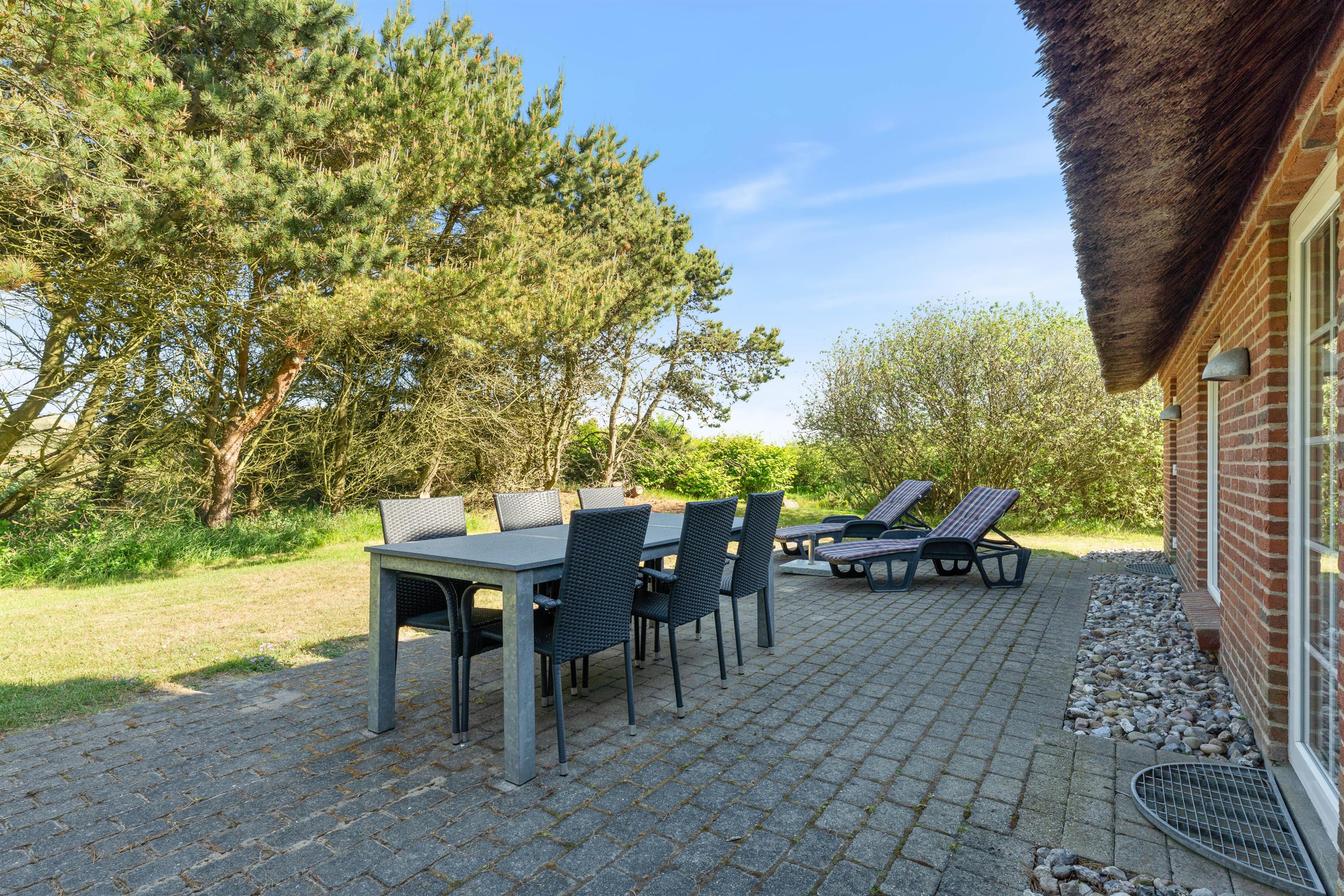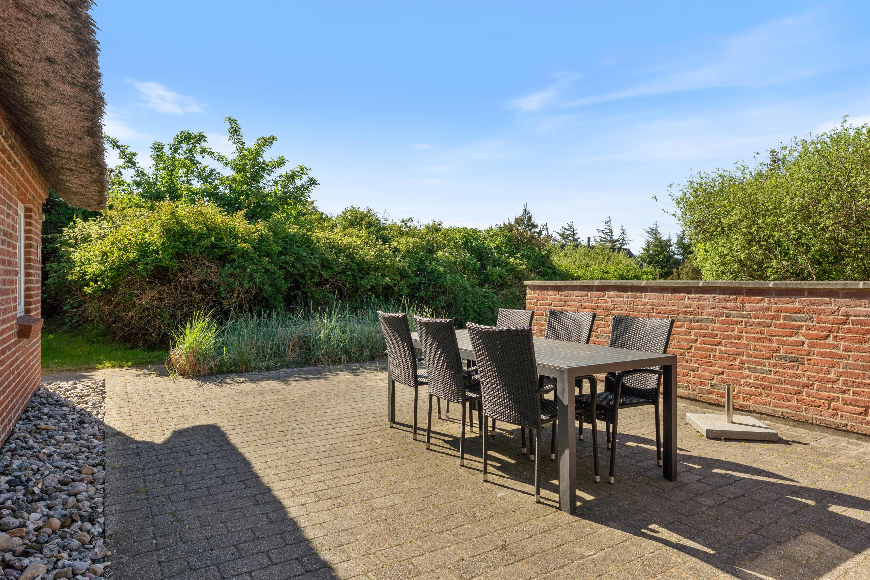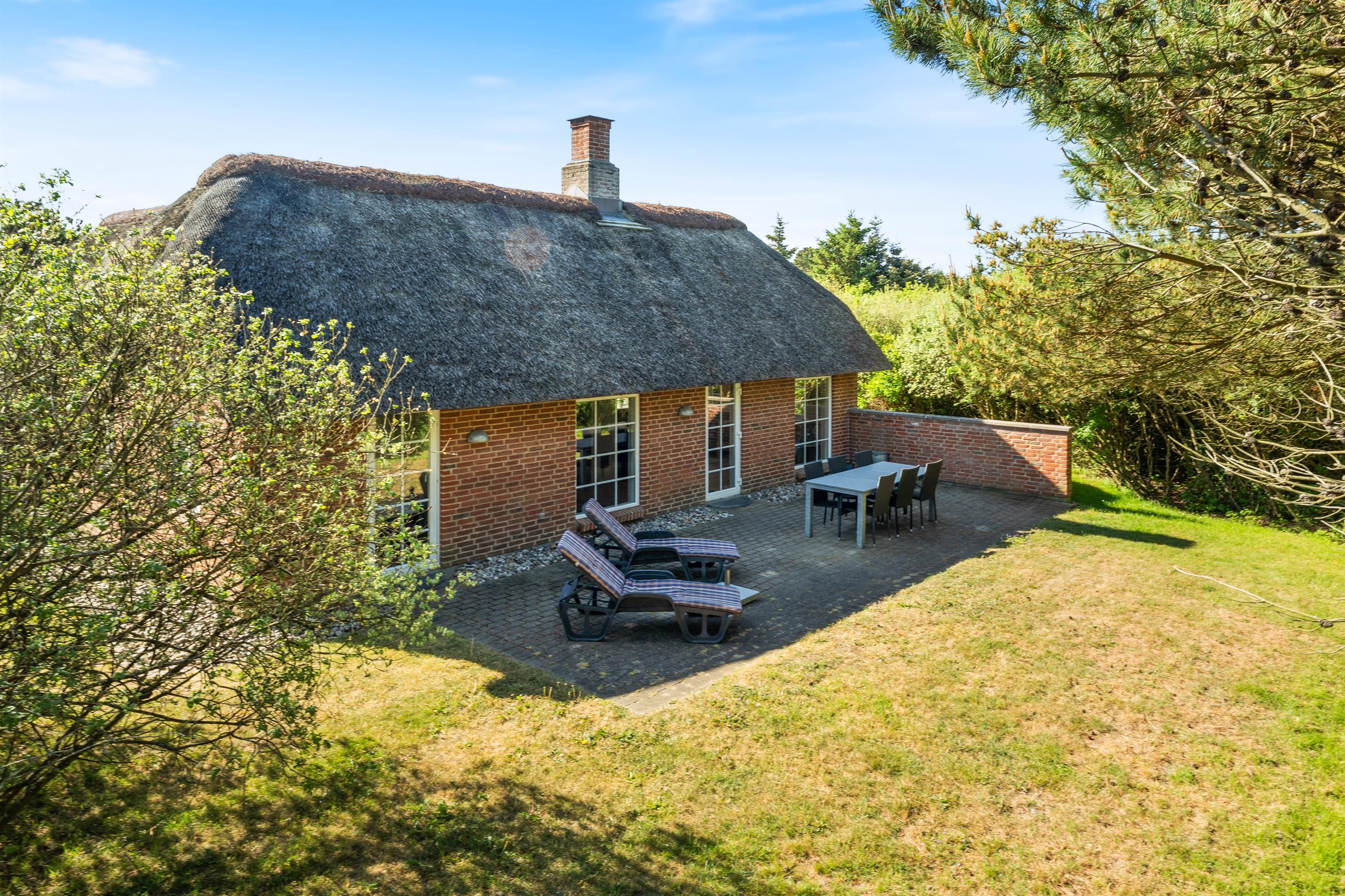 Et virkeligt dejligt sommerhus opført i stil med de gamle klitgårde i området. Det charmerende stråtag og de små vinduer giver en dejlig stemning af ferie og afslapning. Huset ligger lige op til stort fredet hedeområde, perfekt til spadsereture i den smukke natur.