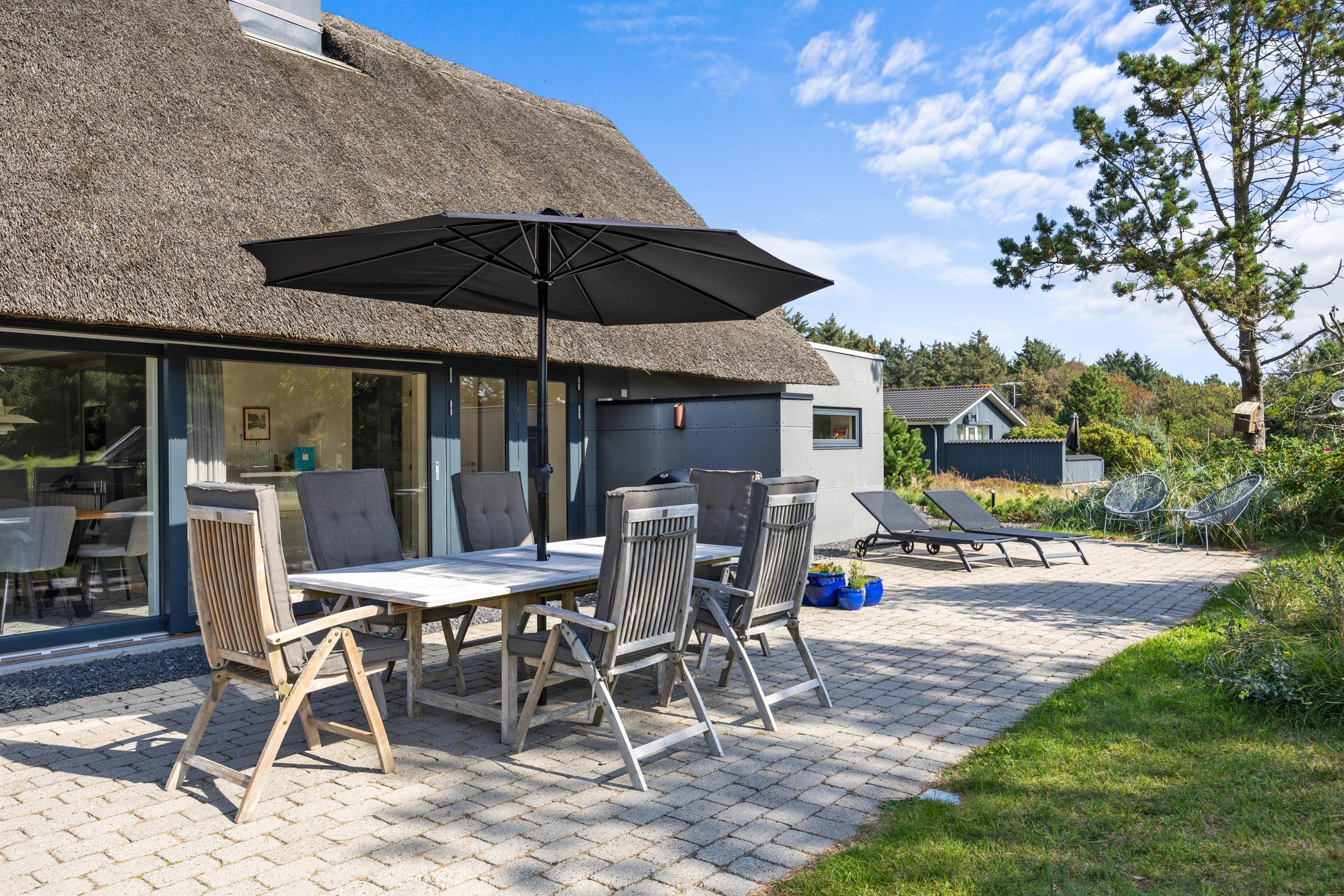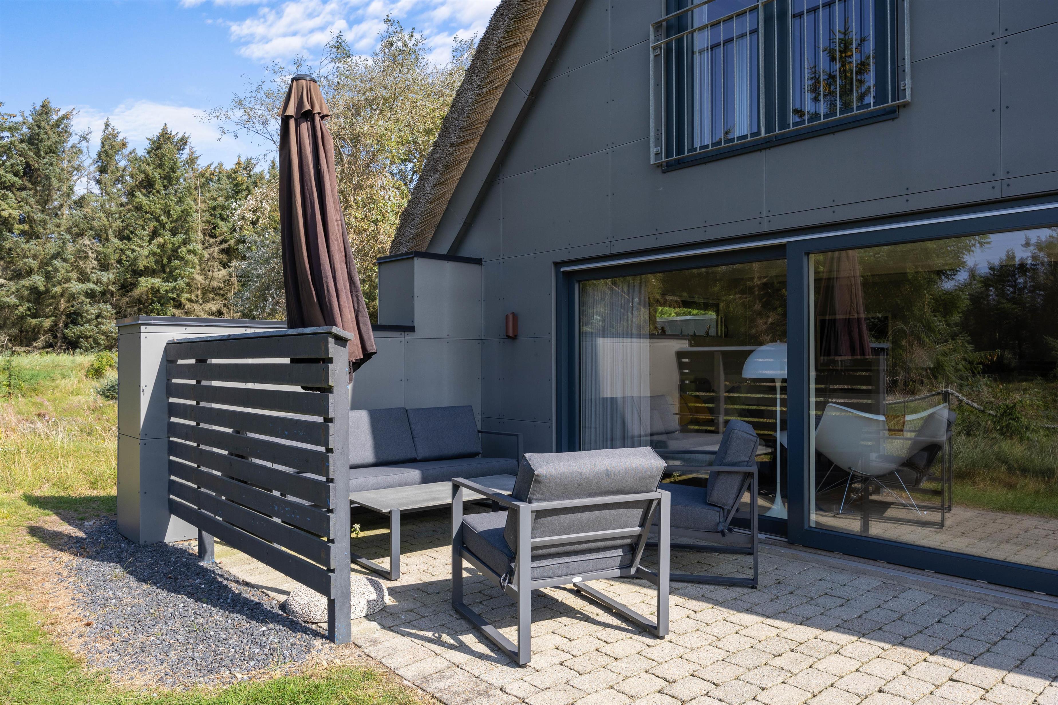 Udearealerne er lige så imponerende som de indendørs faciliteter. Den store, åbne terrasse er udstyret med havemøbler og grill, ideel til udendørs måltider og afslapning i solen. Terrassen er også delvist afskærmet, så I kan nyde roen og den friske luft.