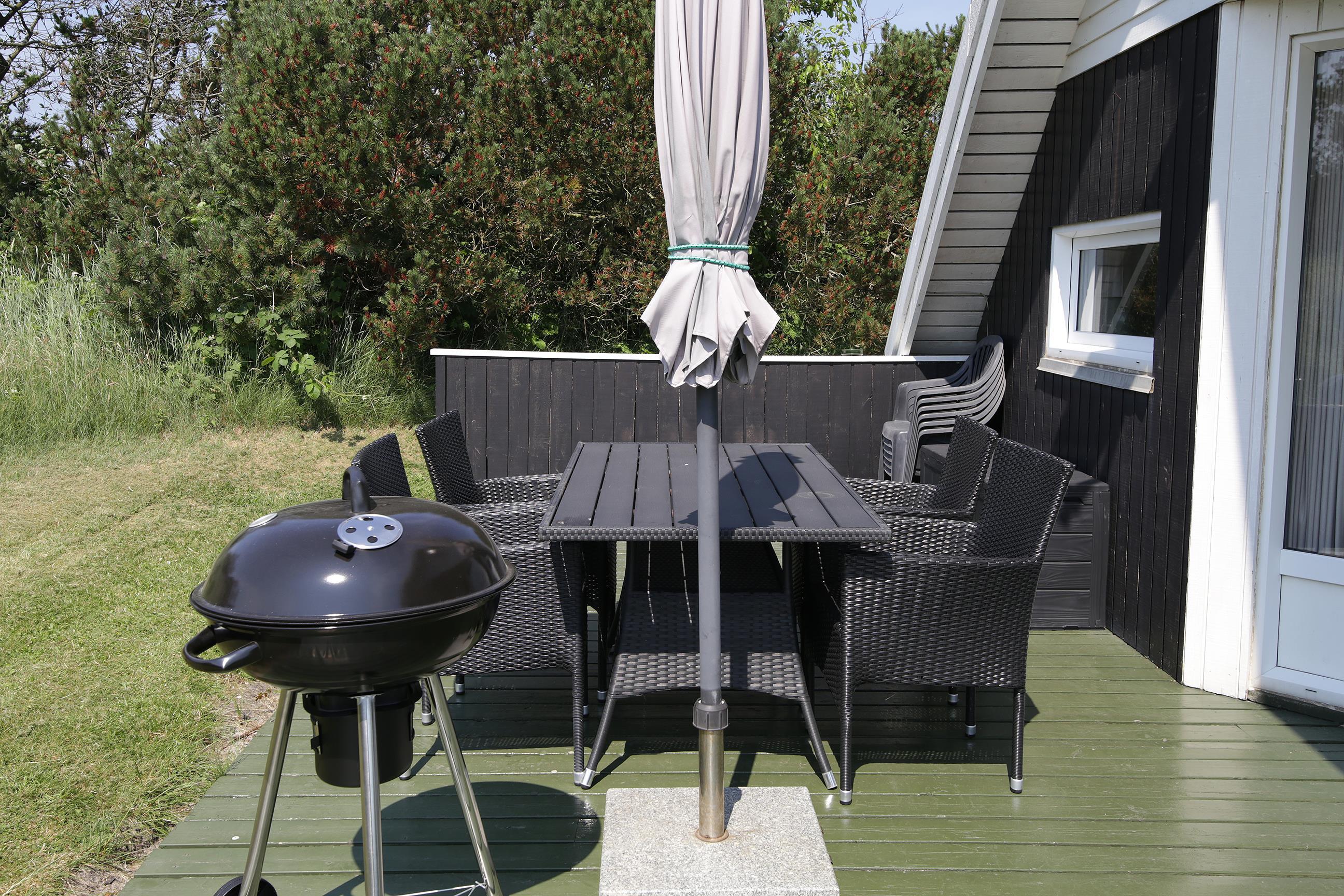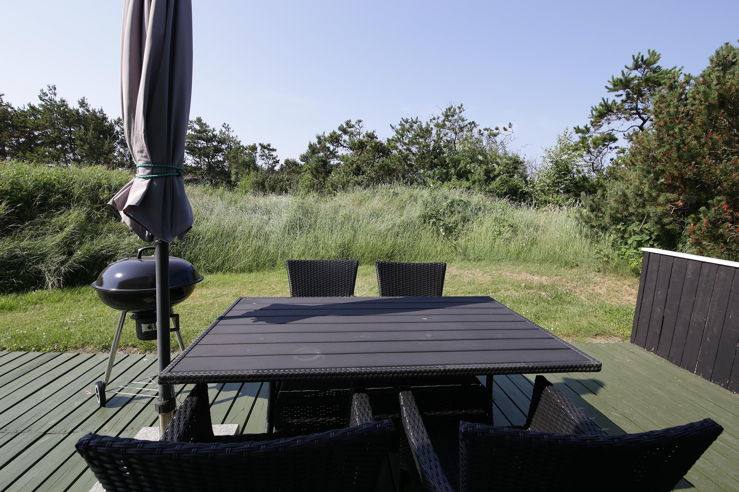 Den store naturgrund er også oplagt til afslapning og leg. Uanset om du helst vil nyde solens stråler i en liggestol på terrassen, eller om du vil give dig i kast med leg på plænen. Slut gerne jeres feriedage af med at grille på terrassen og nyde en lækker kold forfriskning.