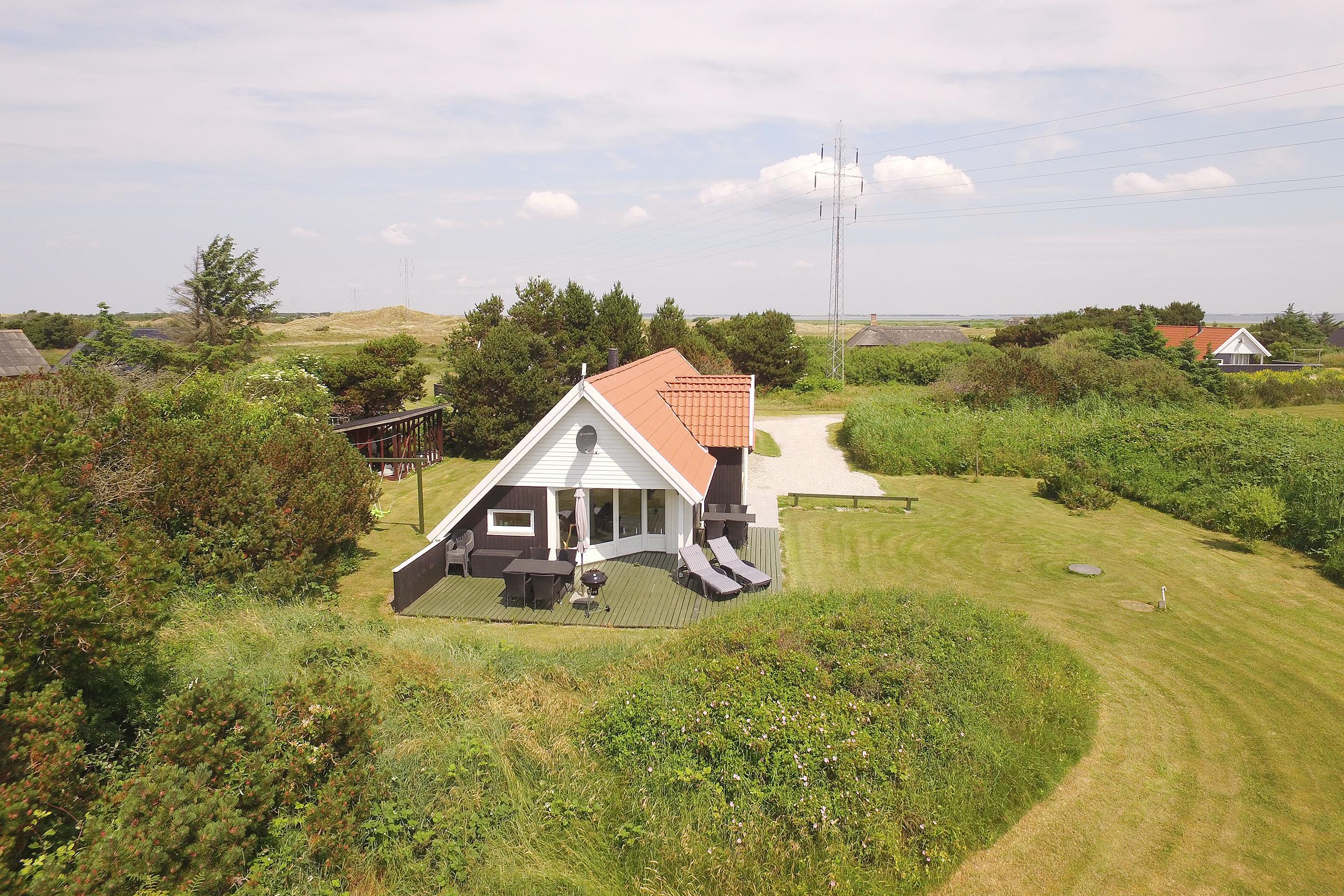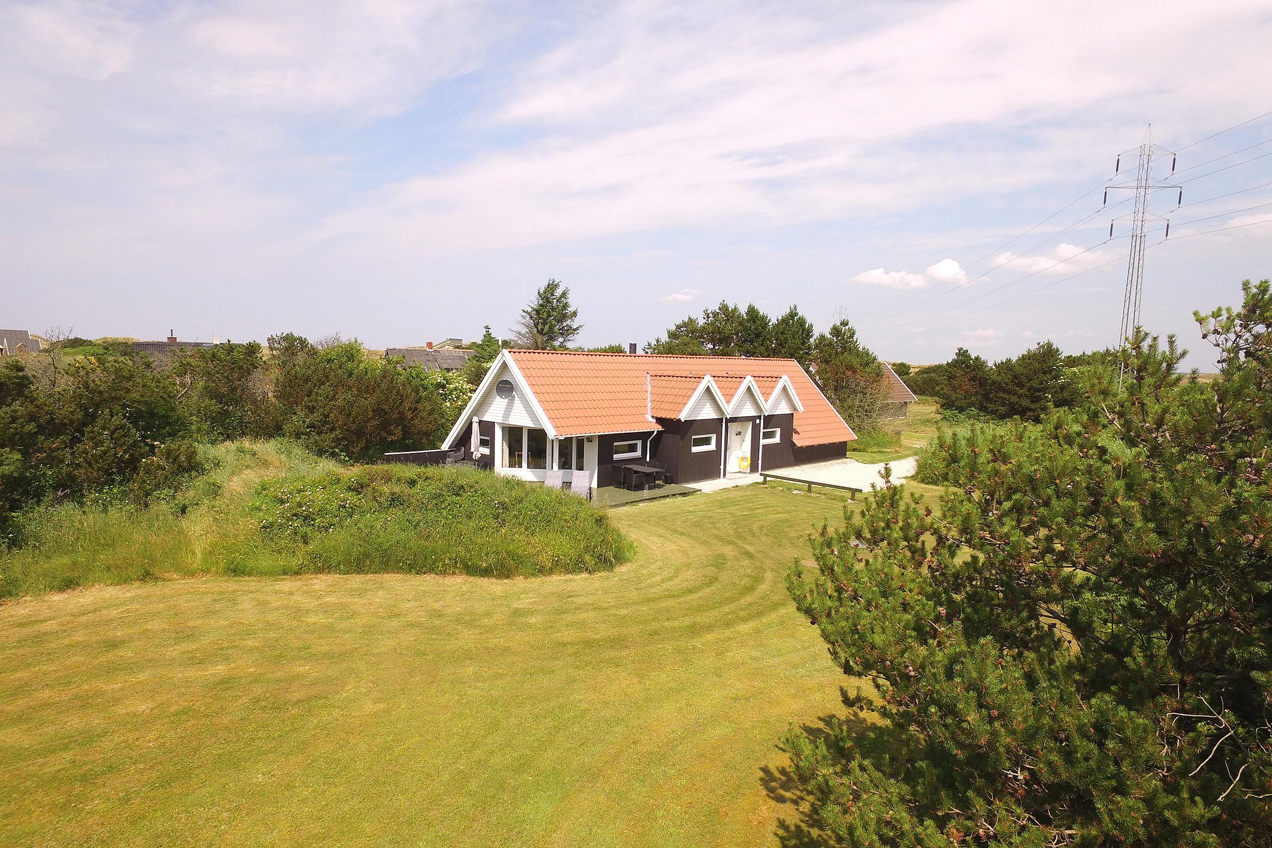 Et af sommerhusets helt store plusser er dens placering på den flotte naturgrund. Grunden består af en stor grøn plæne, der er omgivet af grønne nåletræer. Det giver følelsen af at befinde sig i sin helt egen oase, hvor man er fuldkommen ugeneret af udefrakommende. Samtidig giver de smukke høje græsser langs omgivelserne et frodigt og vildtvoksende præg, når man kan fornemme vindens leg med de florlette græsser.