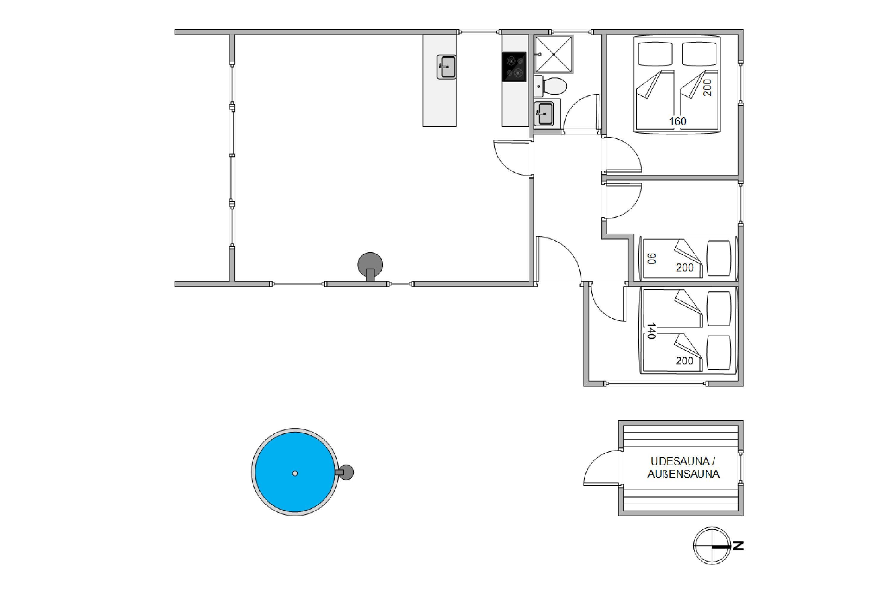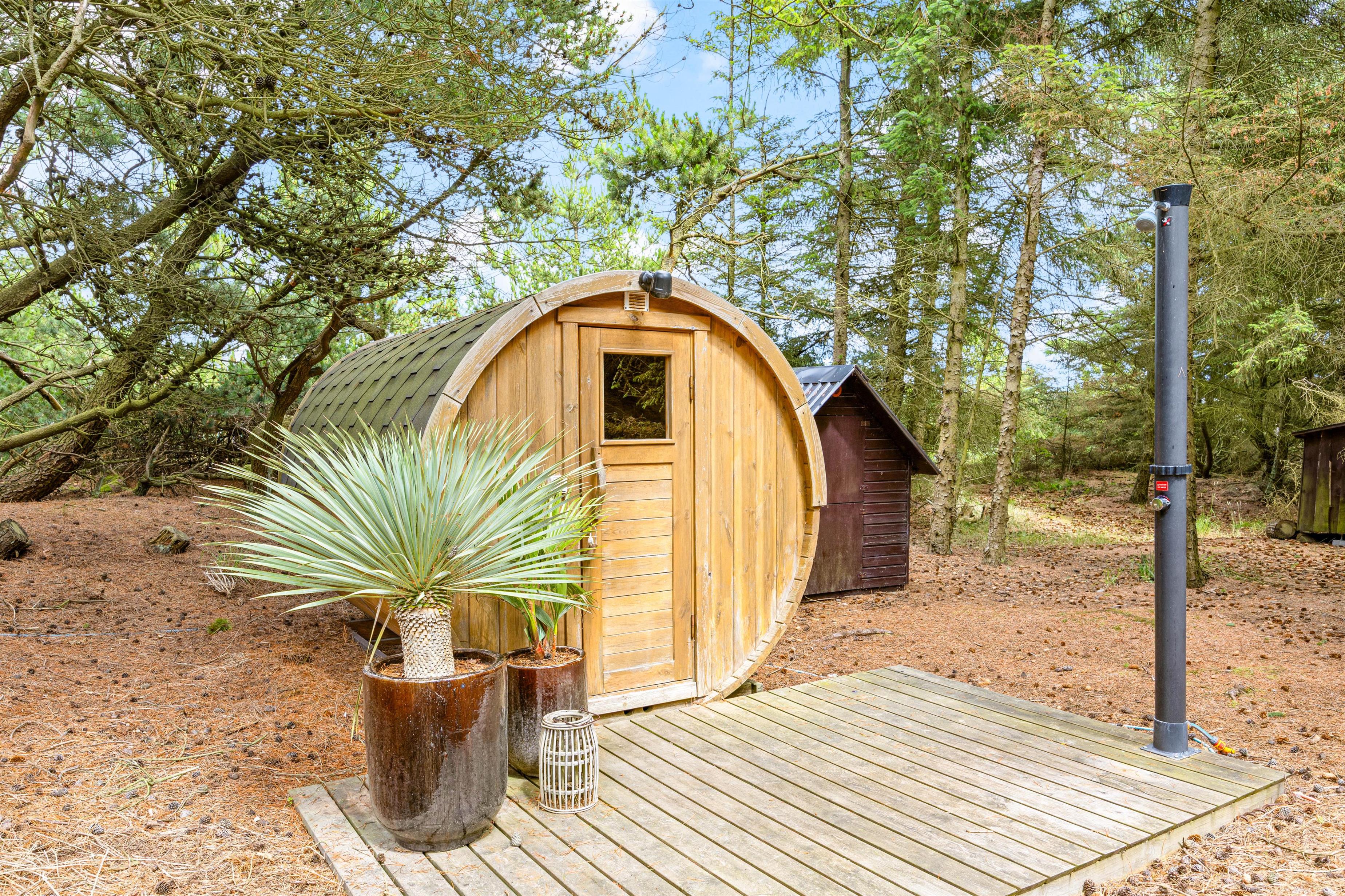Et af husets absolutte highlights er det luksuriøse vildmarksbad, der står klar til at give jer en ekstra wellnessoplevelse. Nyd et varmt bad, mens fuglene synger i trætoppene, eller som den perfekte afslutning på feriedagen med den funklende stjernehimmel over jer. Udendørs finder I også sommerhusets sauna, hvor I kan lade batterierne op.
