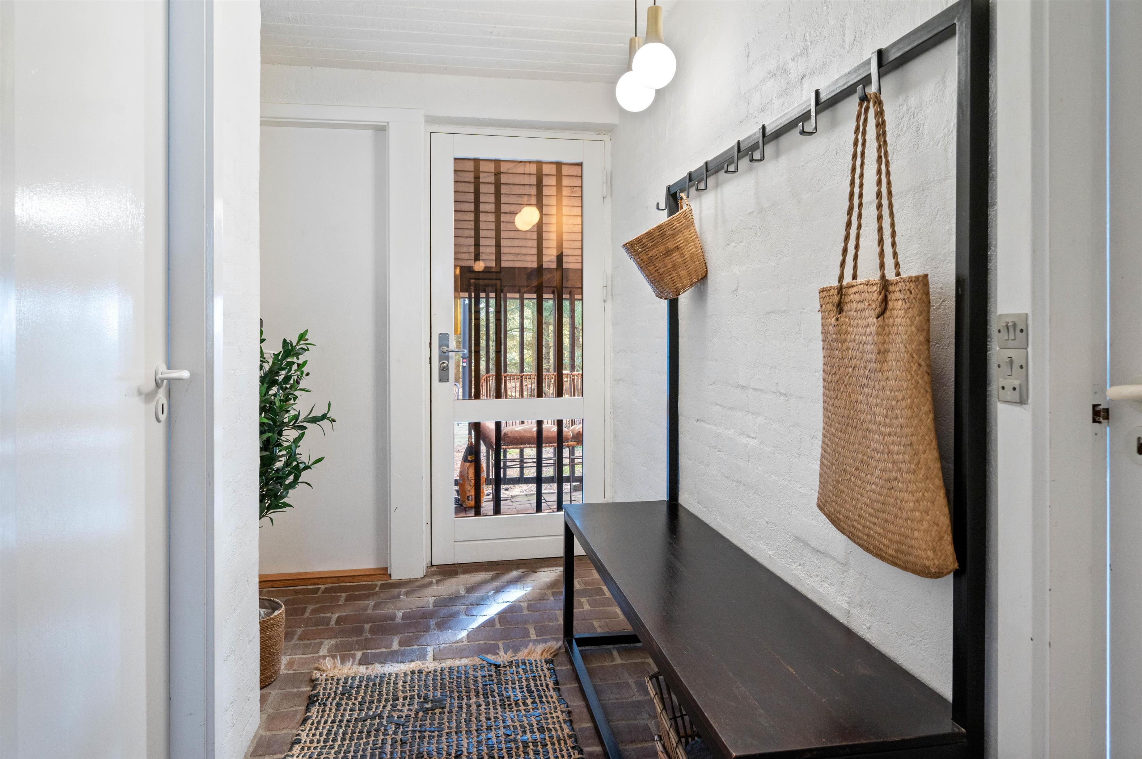 Det charmerende murstenshus på Lyngdraget 8 er en sand perle gemt blandt skovens træer. De nyrenoverede (2019) omgivelser kombinerer det stilfulde og moderne med den hyggelige og varme sommerhusstil og skaber en indbydende og afslappende atmosfære.