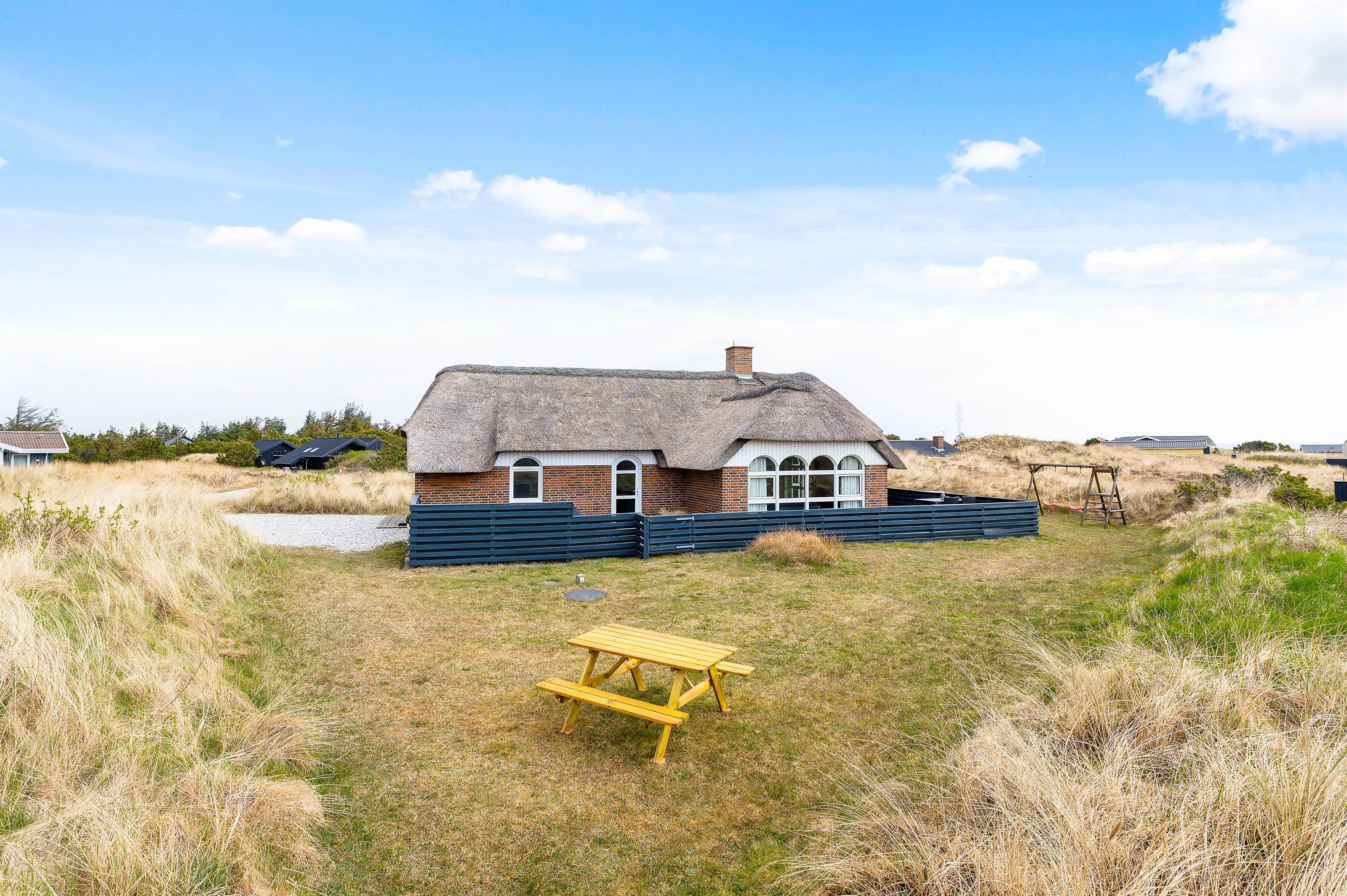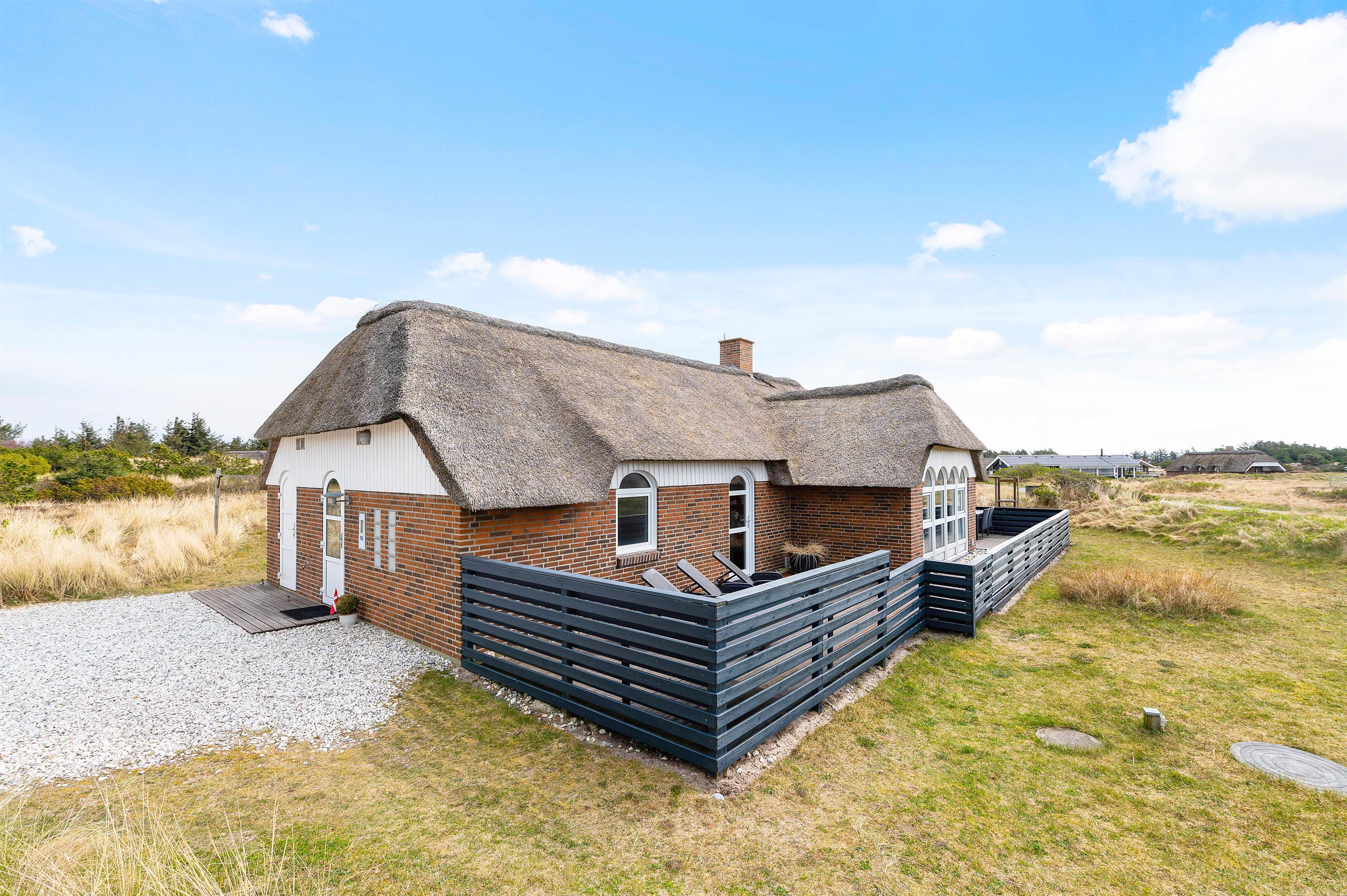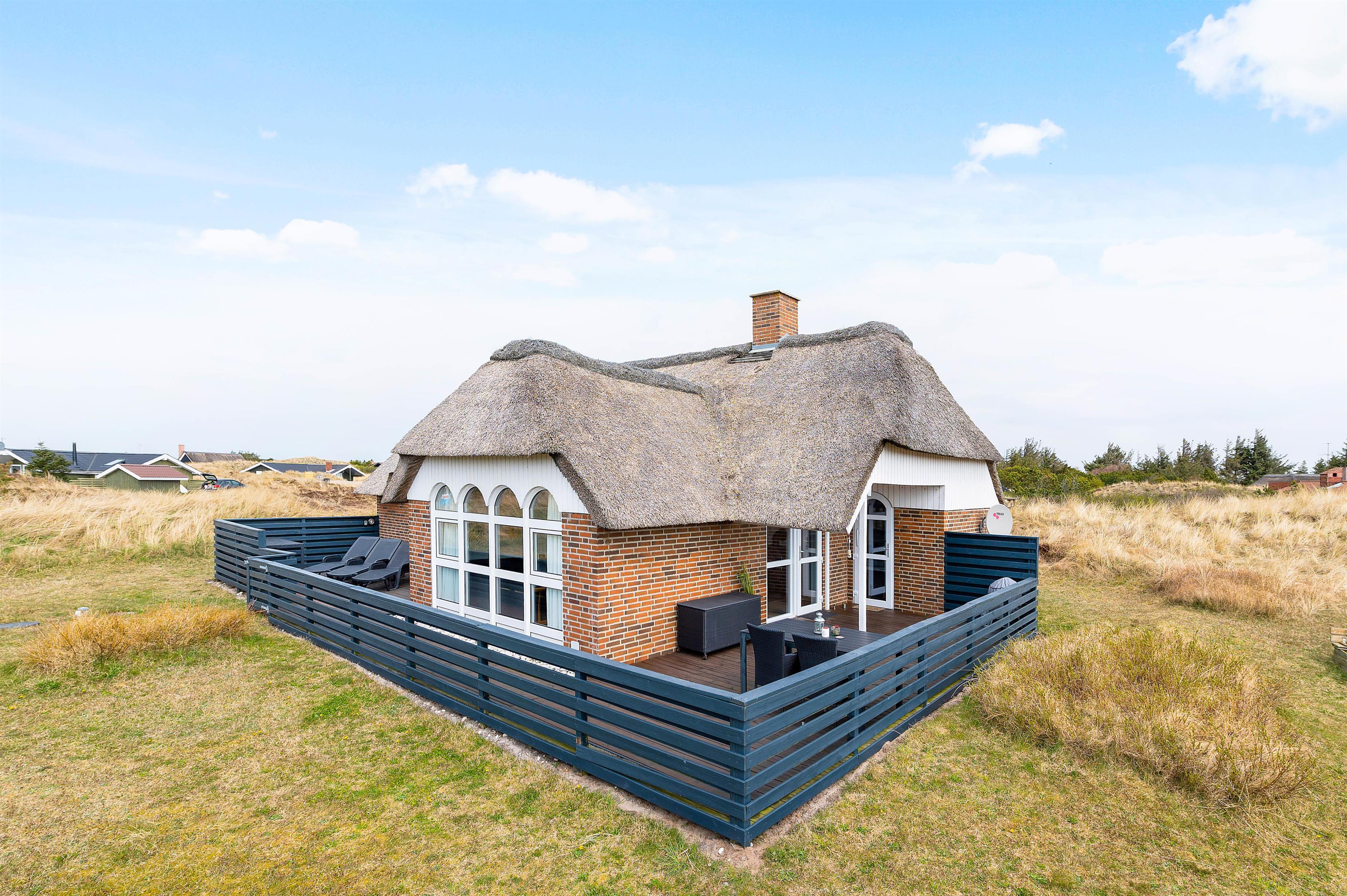 Dette dejlige sommerhus til 6 personer er det perfekte udgangspunkt for en ferie på vestkysten. Her får I en stor lukket terrasse, hvor klitlandskabet og den friske luft kommer helt tæt på. I kan læne jer tilbage i feriehusets hyggelige spa og sauna, eller blot slappe af foran den gode brændeovn. Hunden er naturligvis også velkommen