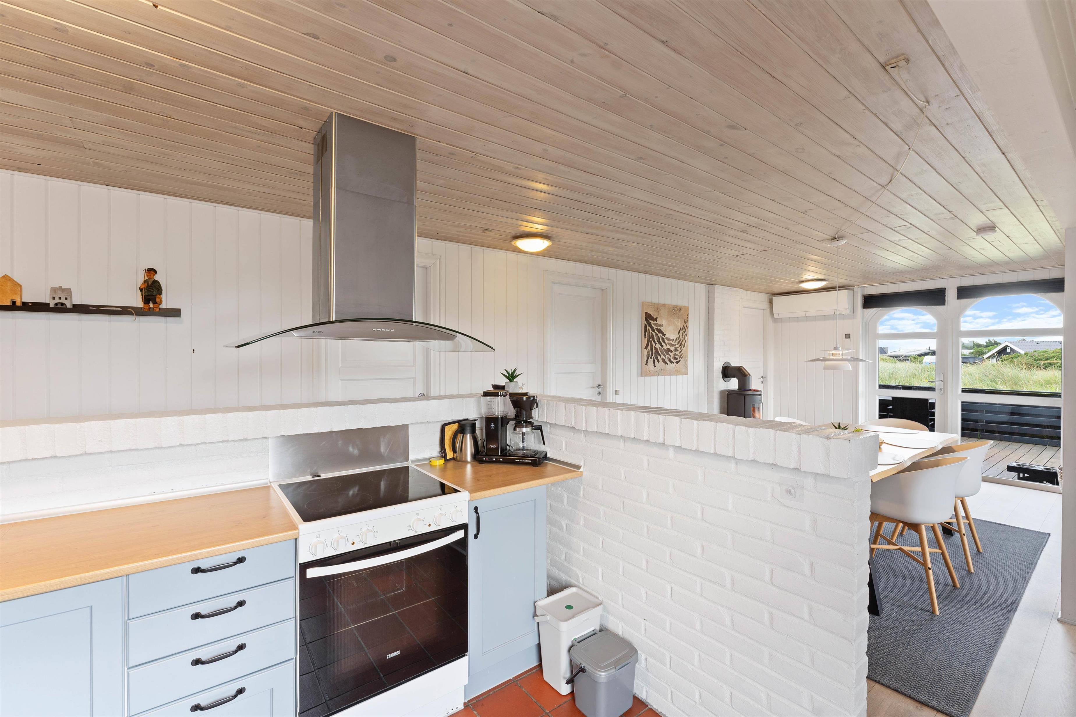 I dette skønne sommerhus i Klegod vil I blive mødt af en hyggelig og indbydende indretning, som er de perfekte rammer for afslapning og hygge. Feriehusets kombinerede stue, køkken – og spiseafdeling bliver utvivlsomt feriens samlingspunkt, hvor I kan nyde varmen fra brændeovnen over et brætspil eller en kop kaffe.