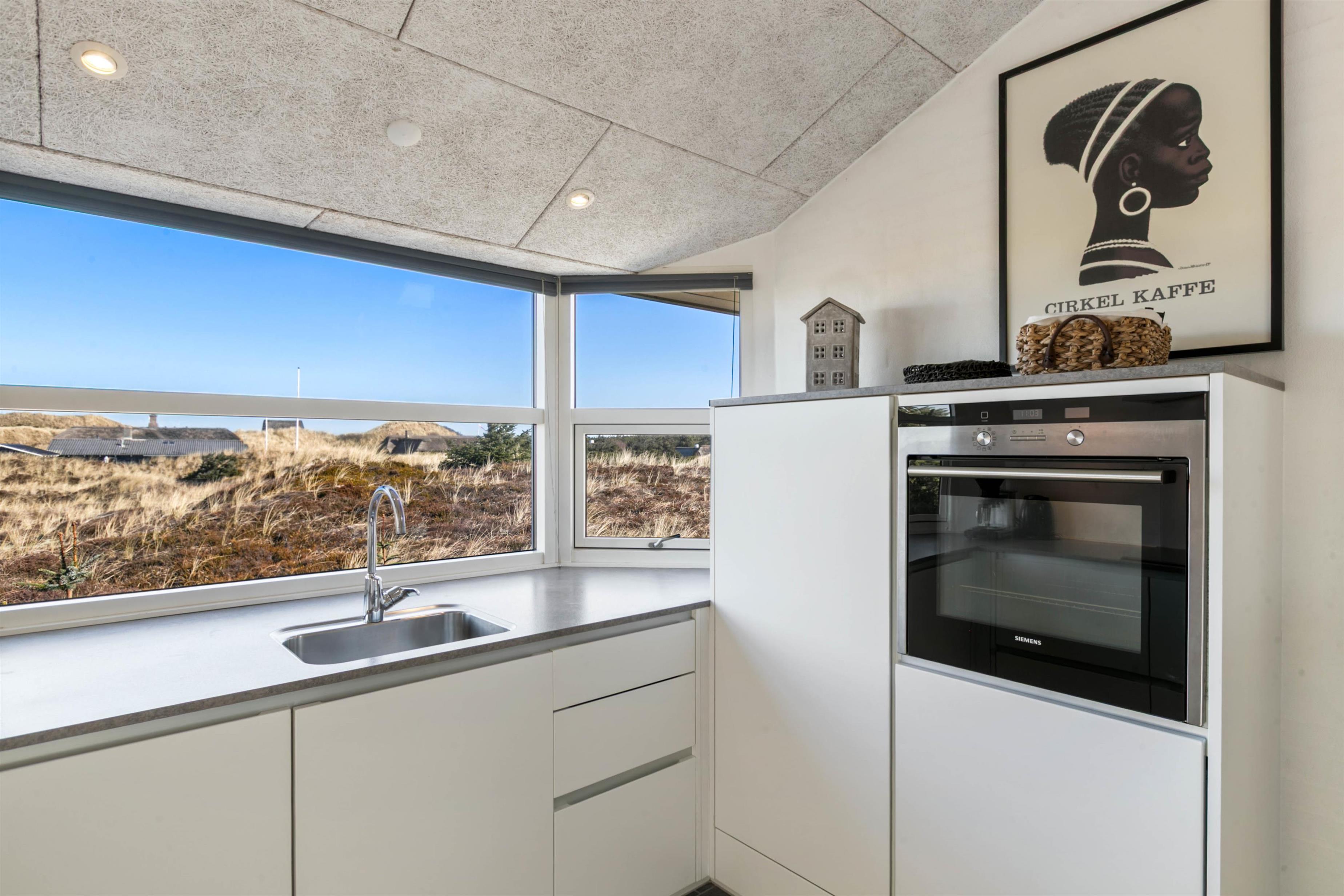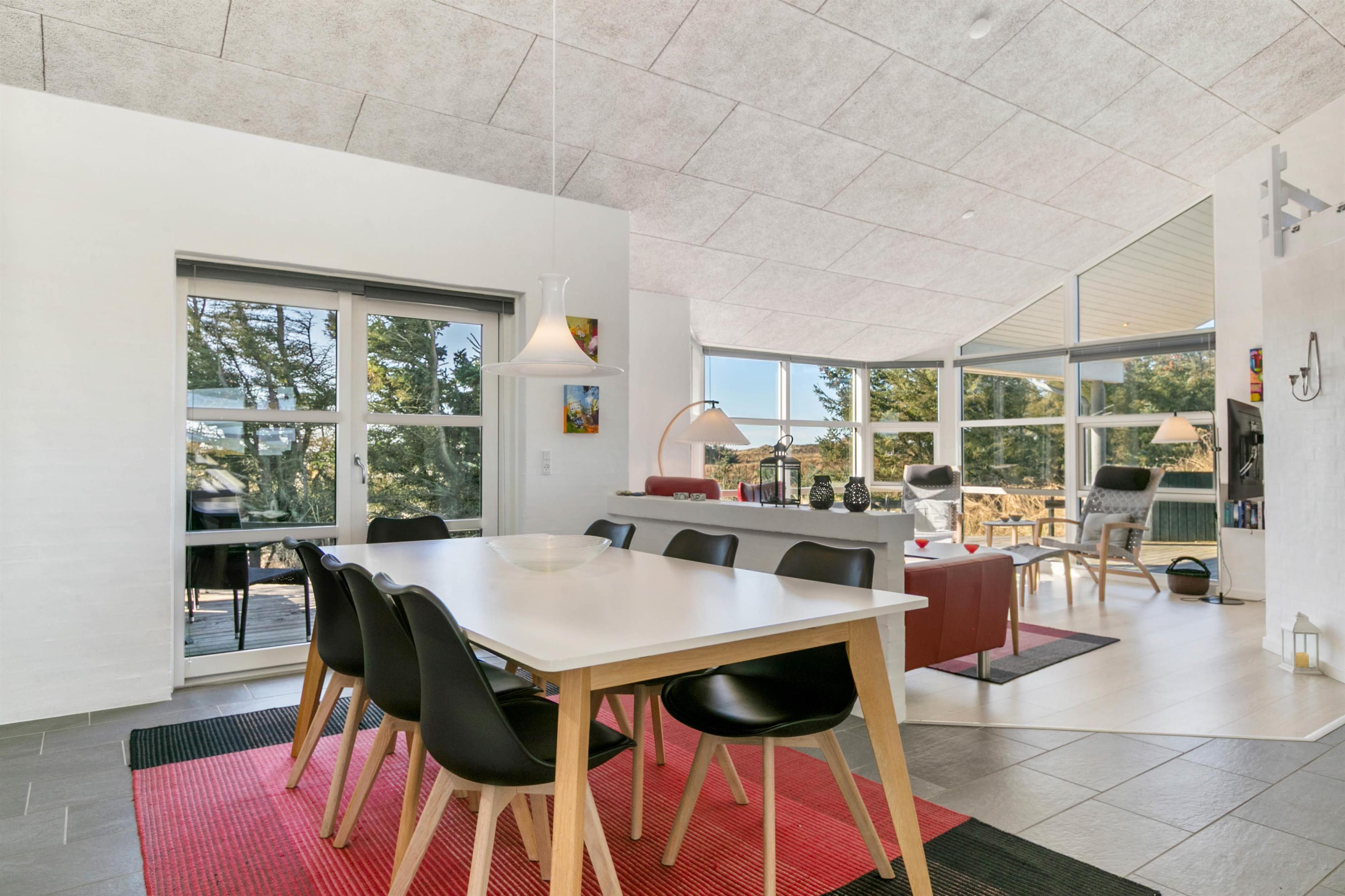 Husets flotte terrasse er virkelig noget for sig. Herfra har du mulighed for at nyde en unik udsigt over de bølgende klitter, der ligger som en dyne over det ellers flade landskab. Huset er bygget med omtanke. Rundt om hele huset er der skabt små kroge, hvor du kan nyde solens stråler. Du har også mulighed for at sidde under den overdækkede terrasse. Her kan de lange sommeraftener forlænges og nydes i selskab med gode venner eller med hele familien.
