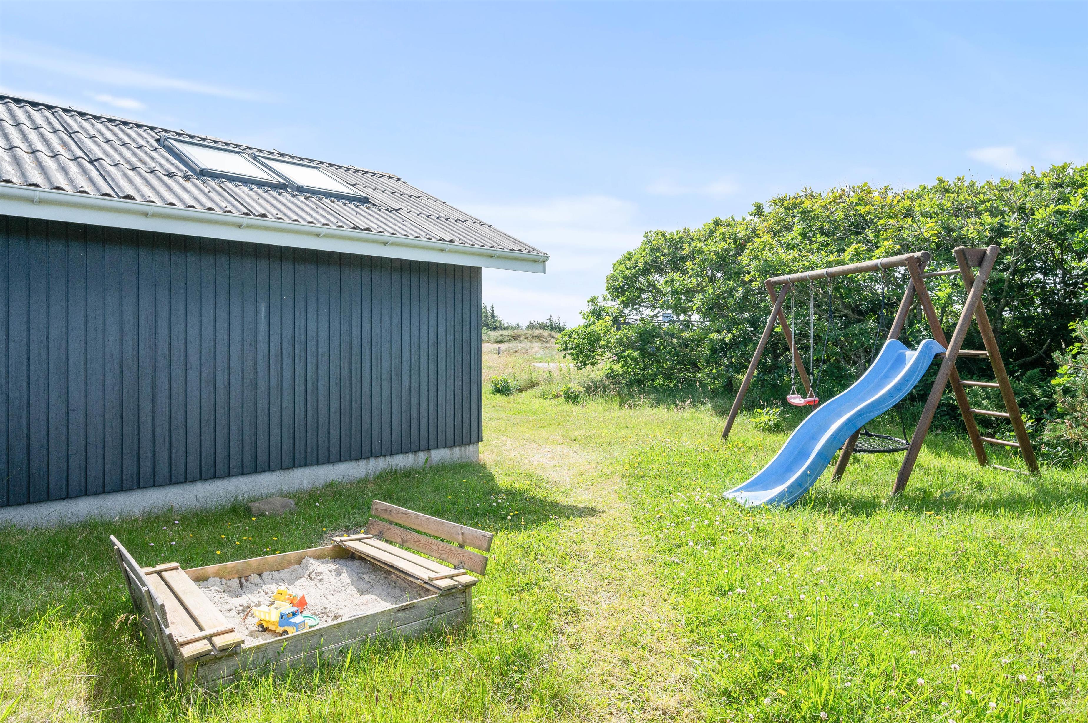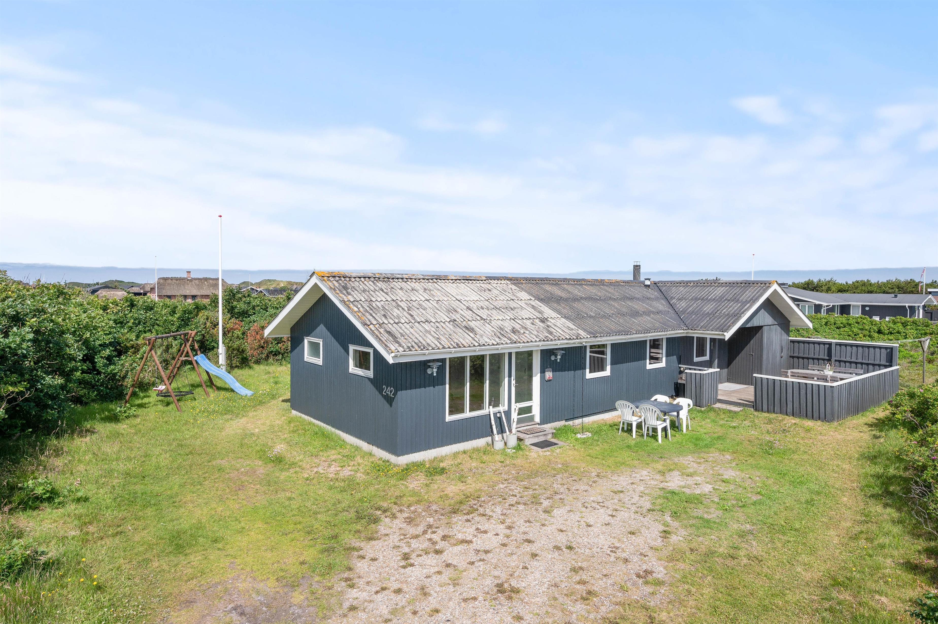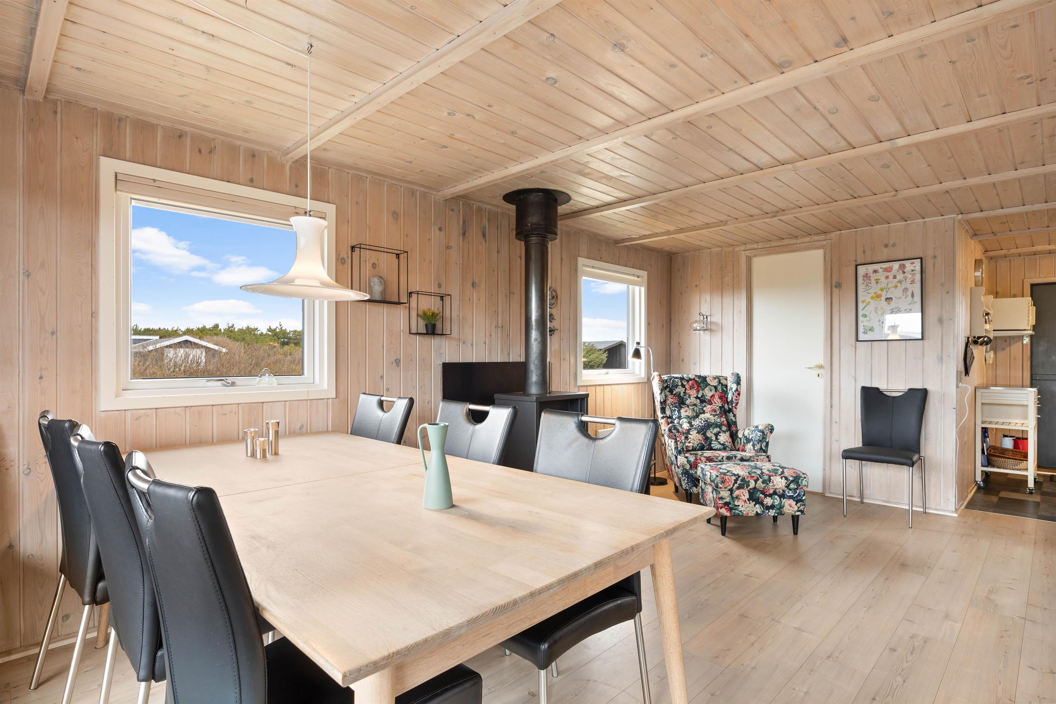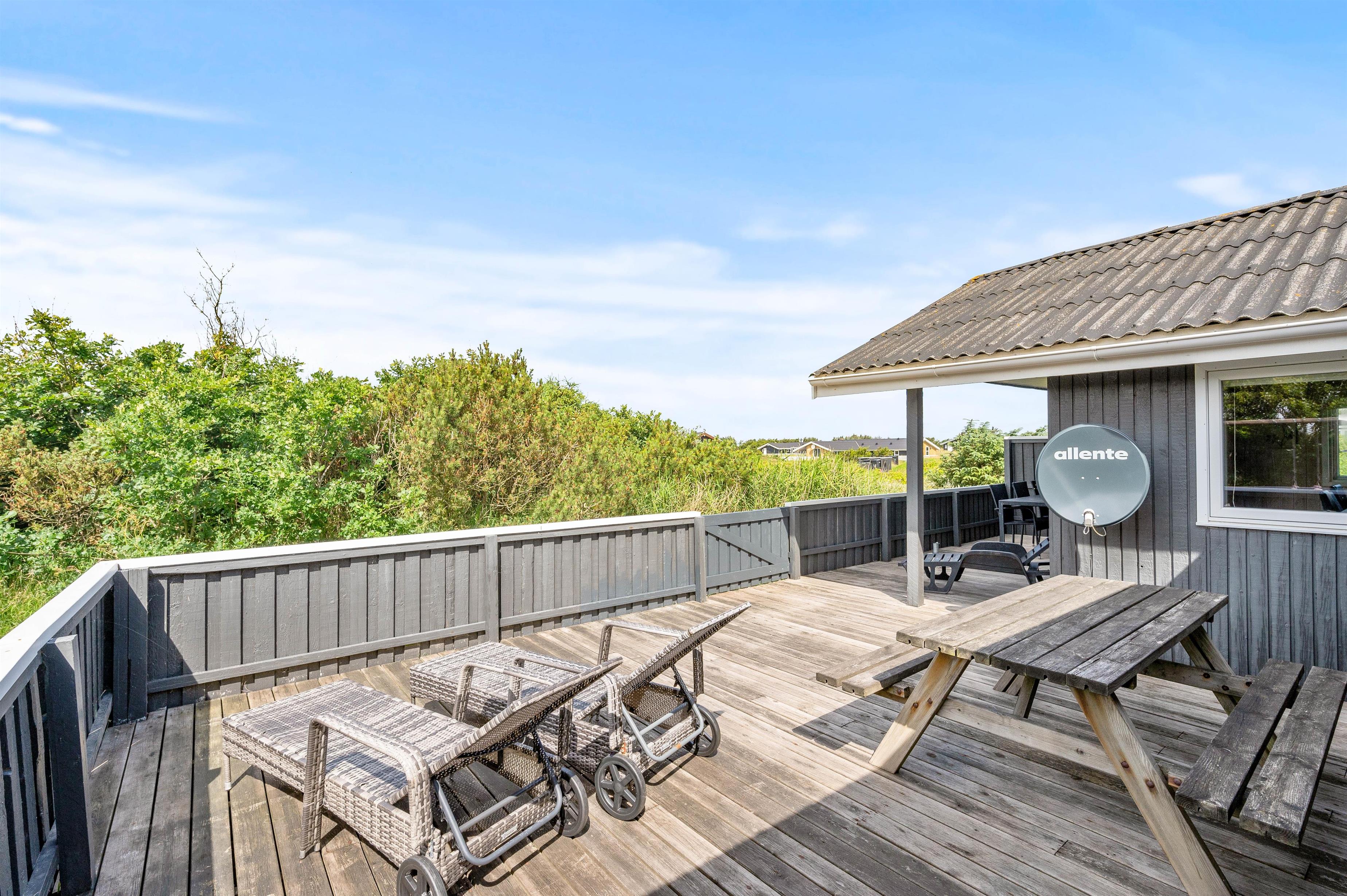 Alle familier med hund og mindre børn sætter stor pris på den ro det giver at holde ferie i et hus som dette, når der er en god lukket terrasse. Terrassen er også delvis afskærmet, så selv på dage med vind kan man sidde i nogenlunde læ. Der er et godt stisystem i området, hvilket er ideelt til trave- og cykelture. Turist og badebyen Søndervig ligger 5 km. mod nord. Her er atmosfæren rigtig ferieagtig, og der er gode restauranter og butikker.