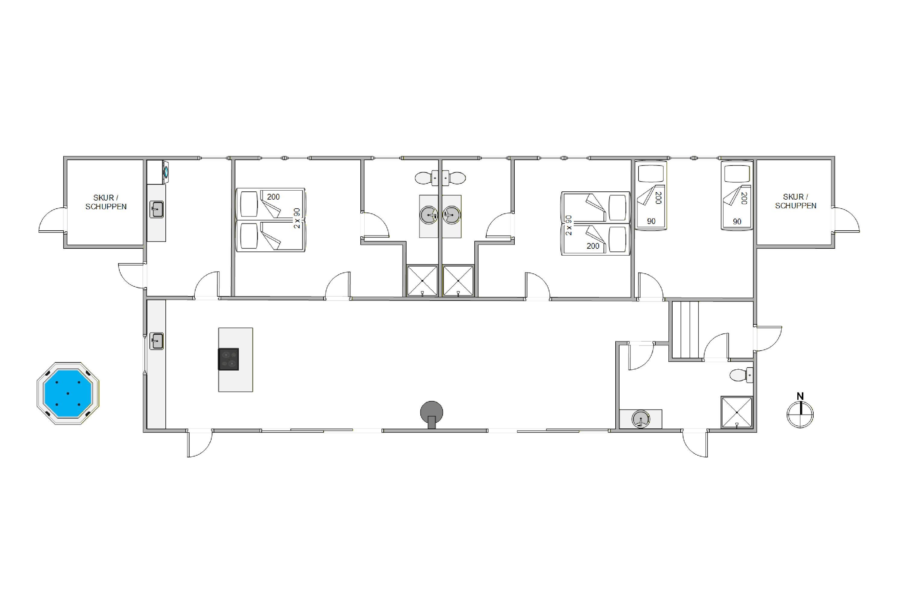 Sommerhuset er blevet bygget i 2025 og har 3 skønne soverum, perfekt til en afslappende nats søvn efter en dejlig dag. Det rummelige køkken-alrum er udstyret med dejlige faciliteter, herunder opvaskemaskine, så I ikke skal tænke på opvasken efter aftensmaden. Derudover er der også en vaskemaskine og tørretumbler i sommerhuset, så I har mulighed for at friske jeres håndklæder op i løbet af ferien.