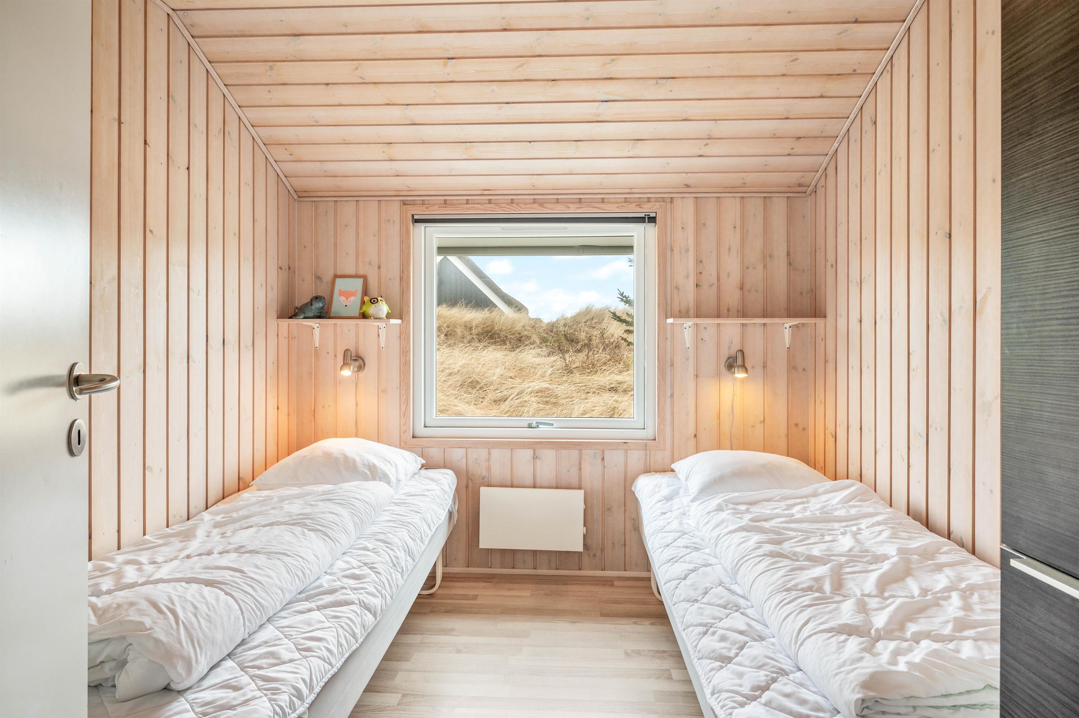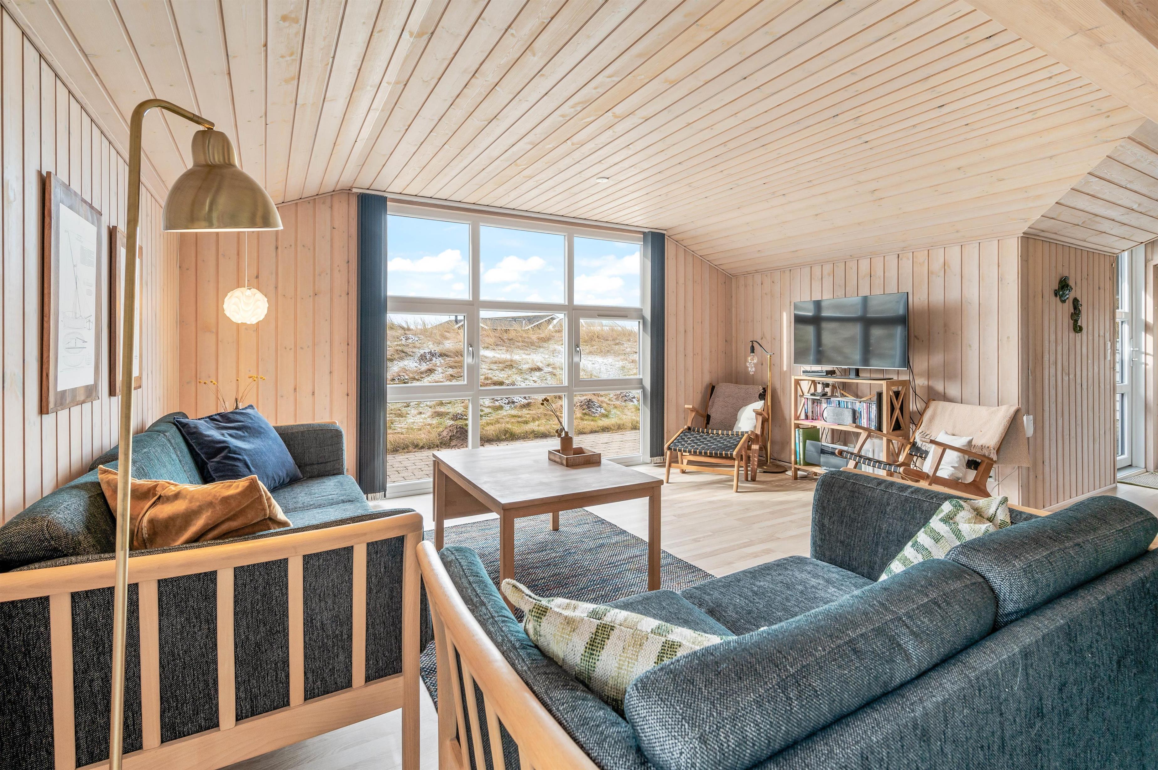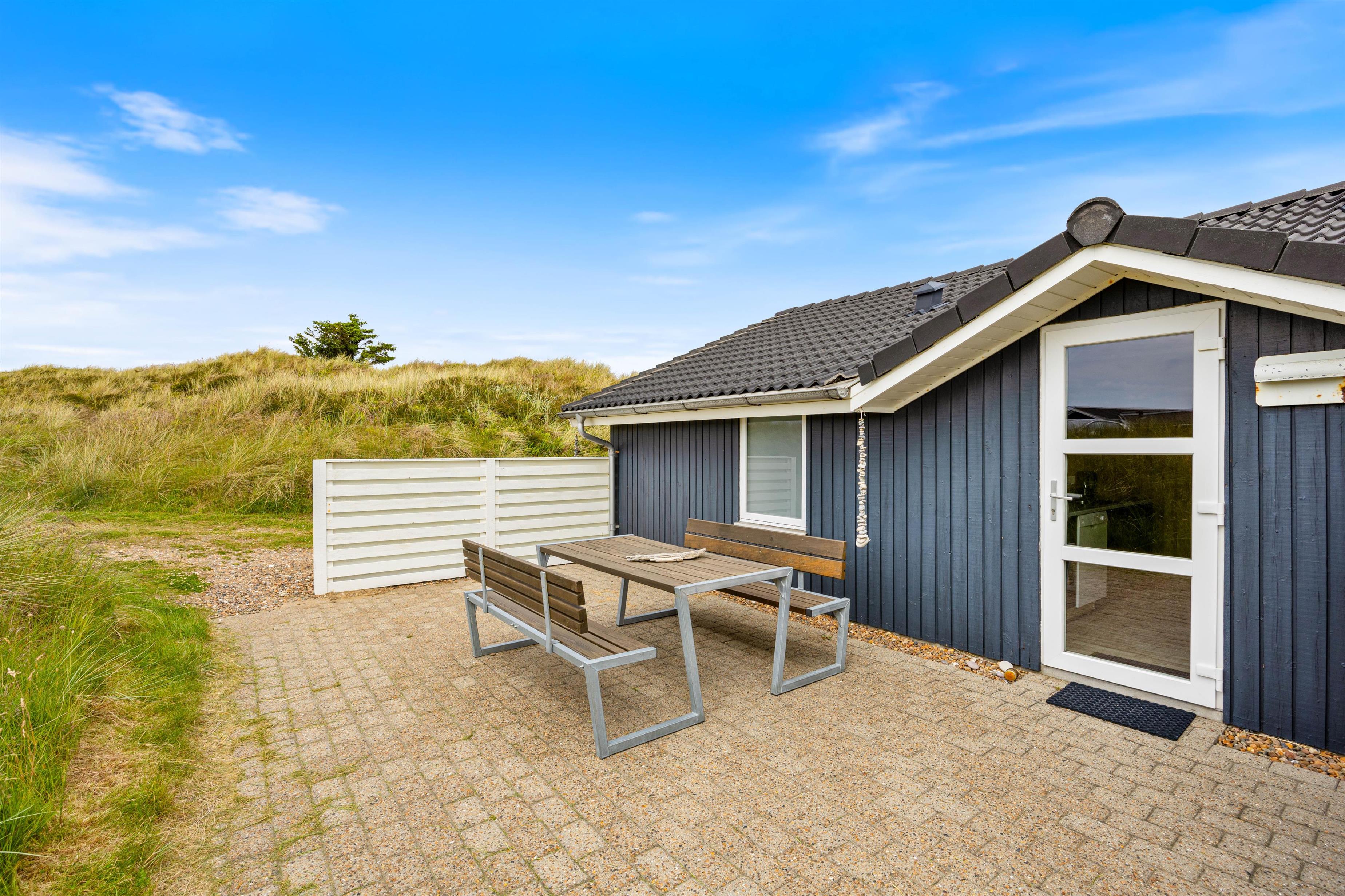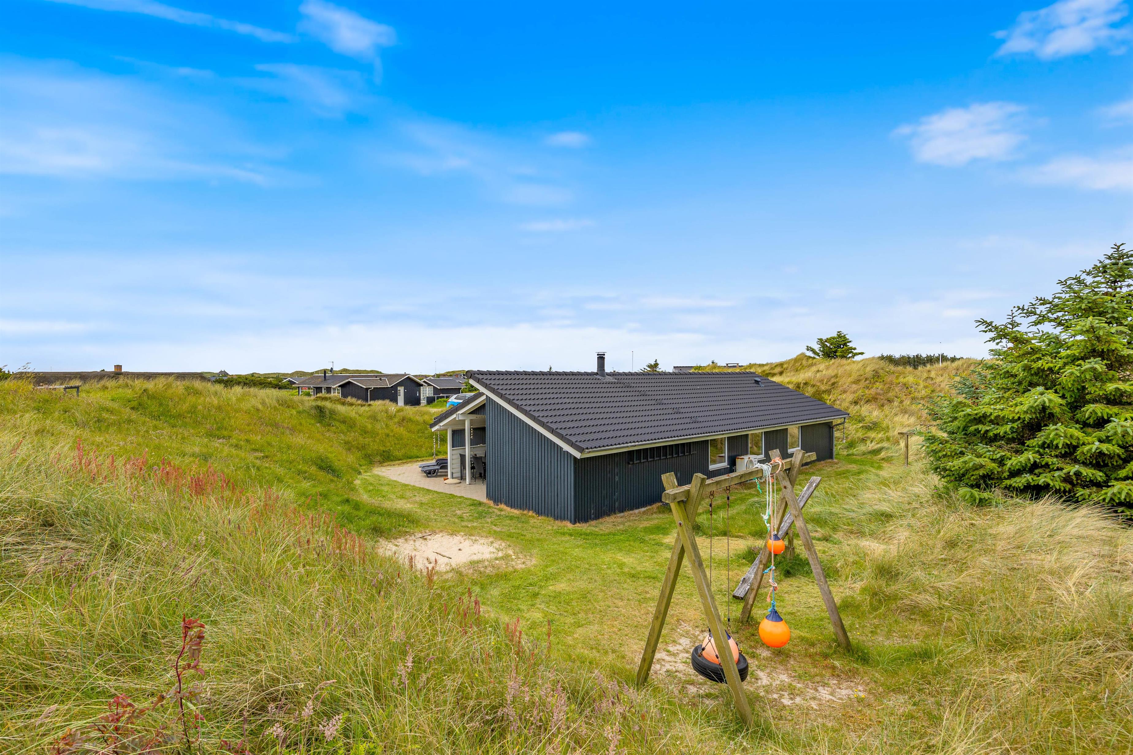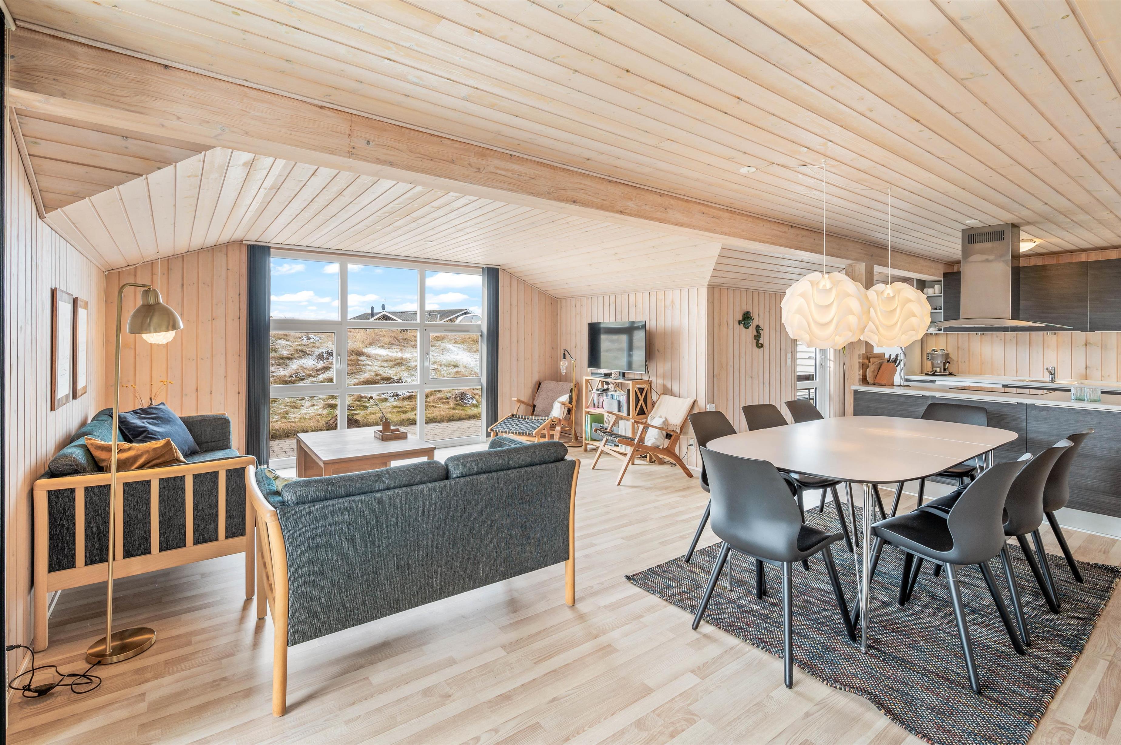 Lidt skjult i en klitdal ligger dette dejlige og velholdte sommerhus med udsigt over fjorden mod Øst og klitterne mod Vest. Feriehuset er det helt rigtigt valg til en afslappende ferie med 8 personer og op til 2 hunde.