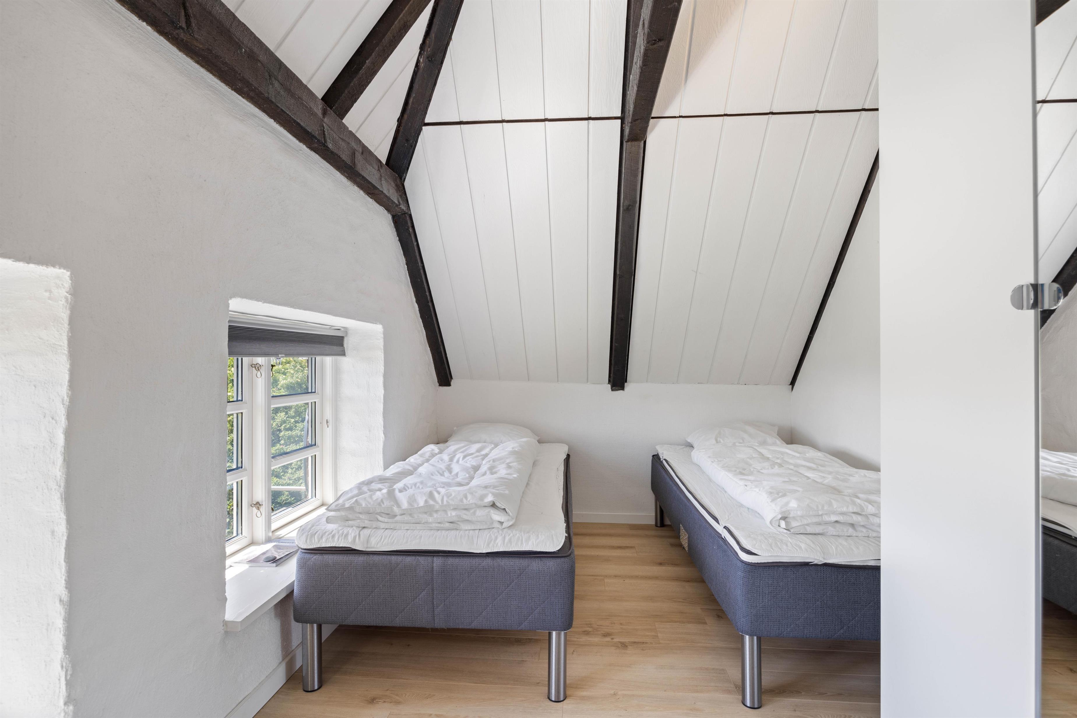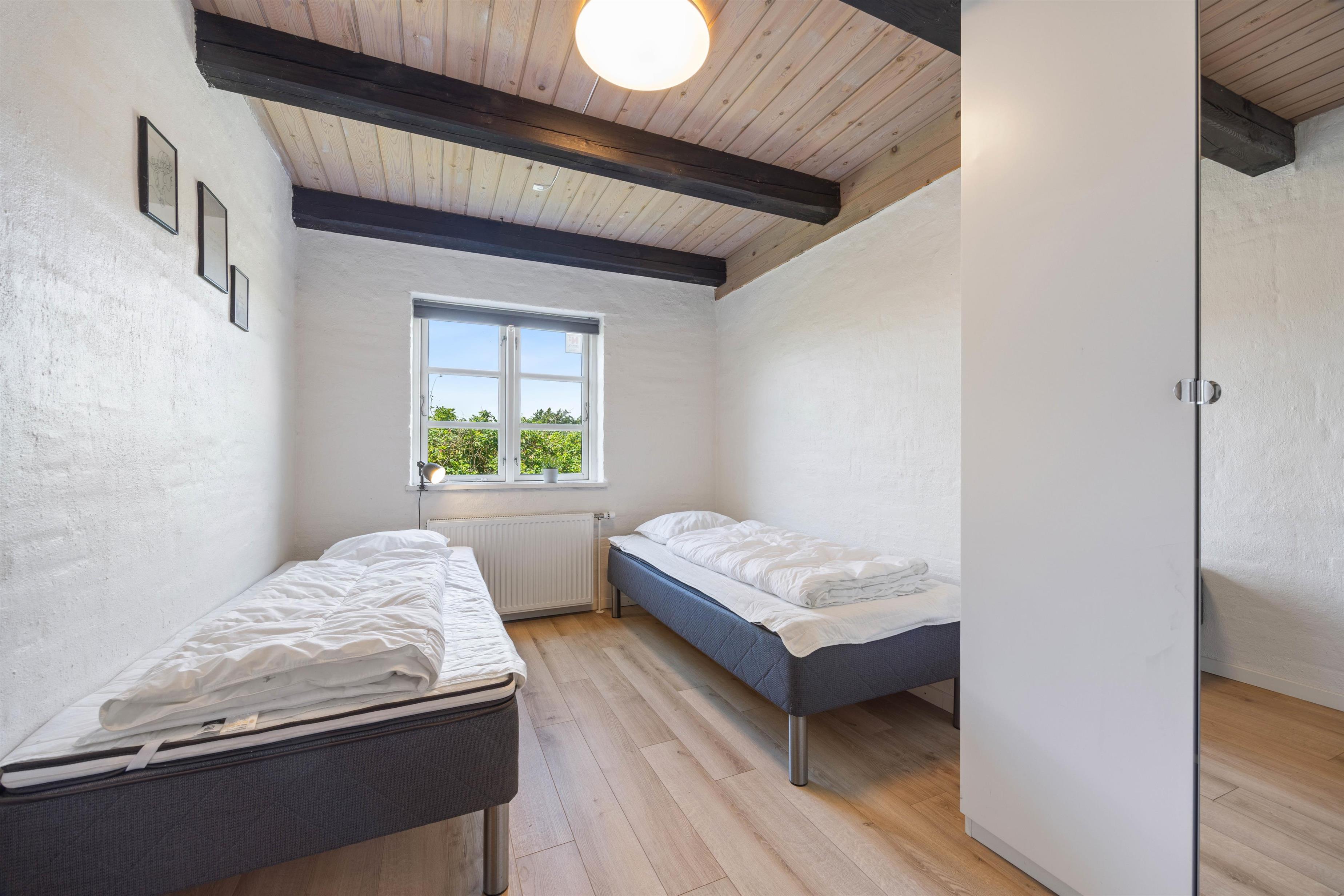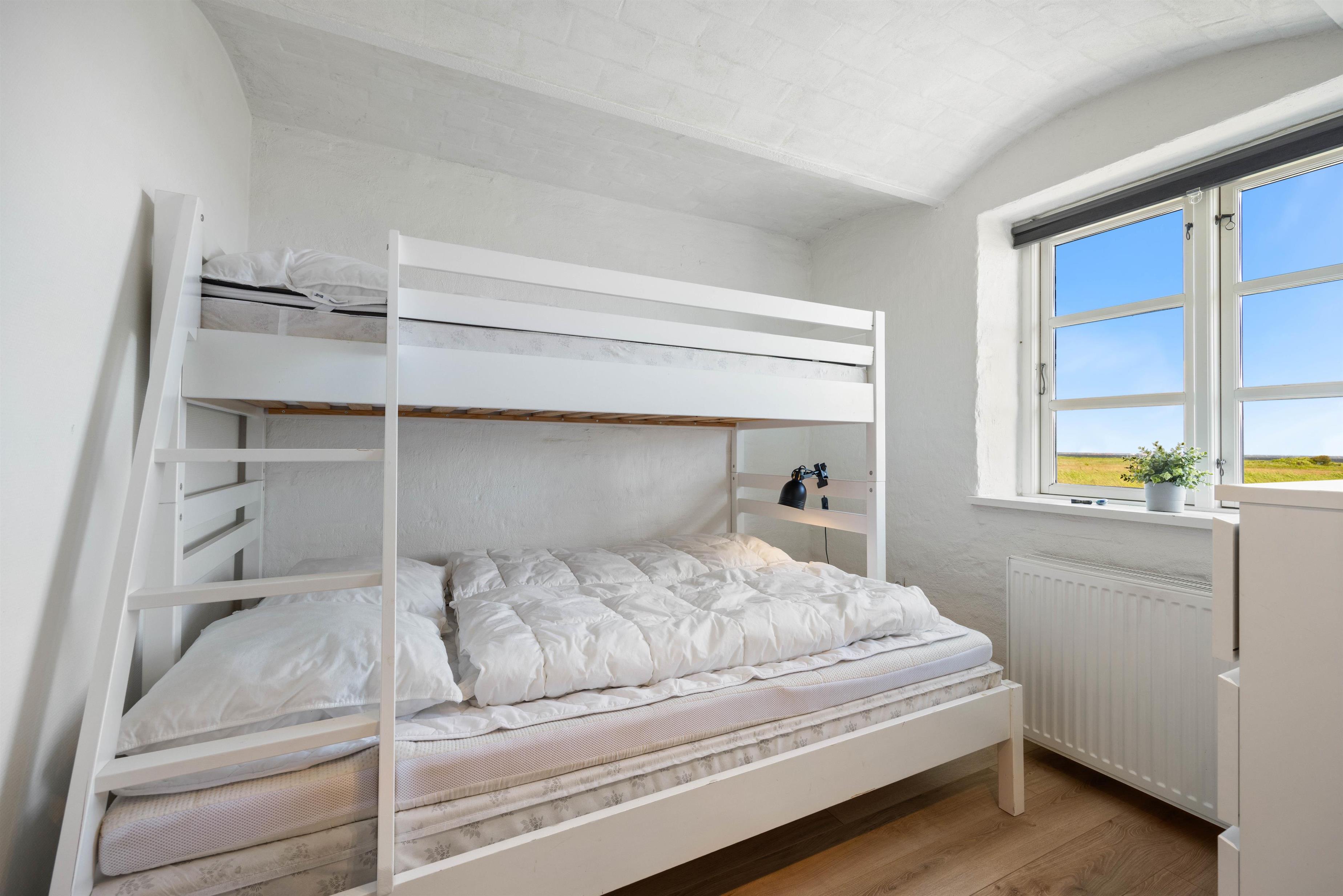 Efter en god dag kan I finde til ro i et af sommerhusets soveværelser. Der er i alt 28 sovepladser, som er fordelt på 12 soverum, så der er god plads til både store og små. Derudover finder I 5 badeværelser i sommerhuset, som alle har gulvvarme.