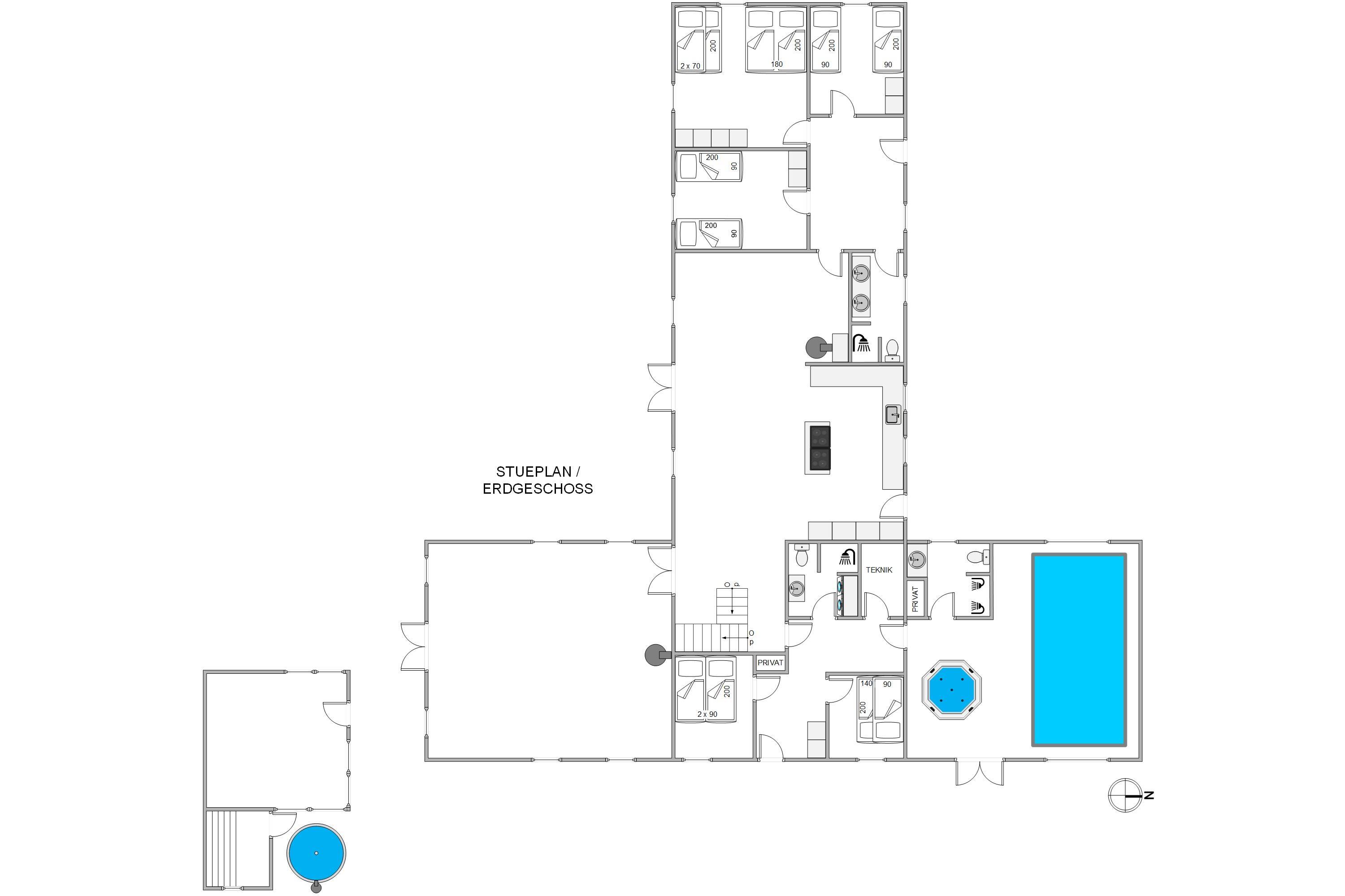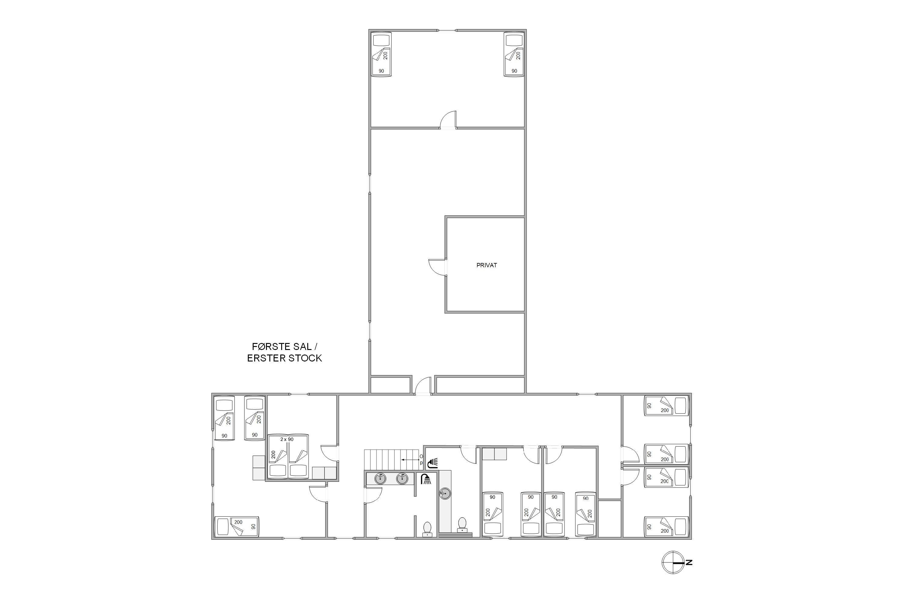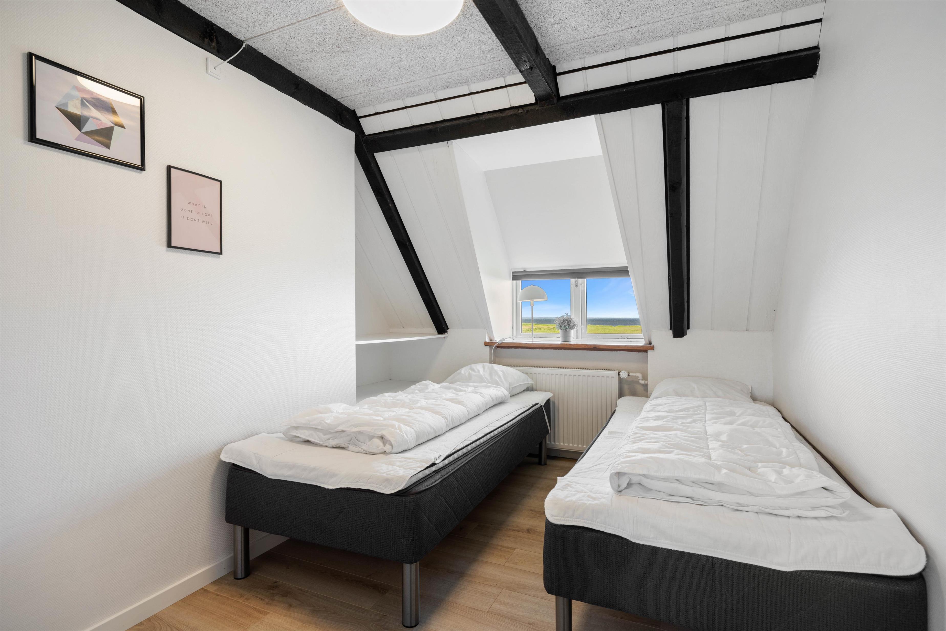 Efter en god dag kan I finde til ro i et af sommerhusets soveværelser. Der er i alt 28 sovepladser, som er fordelt på 12 soverum, så der er god plads til både store og små. Derudover finder I 5 badeværelser i sommerhuset, som alle har gulvvarme.
