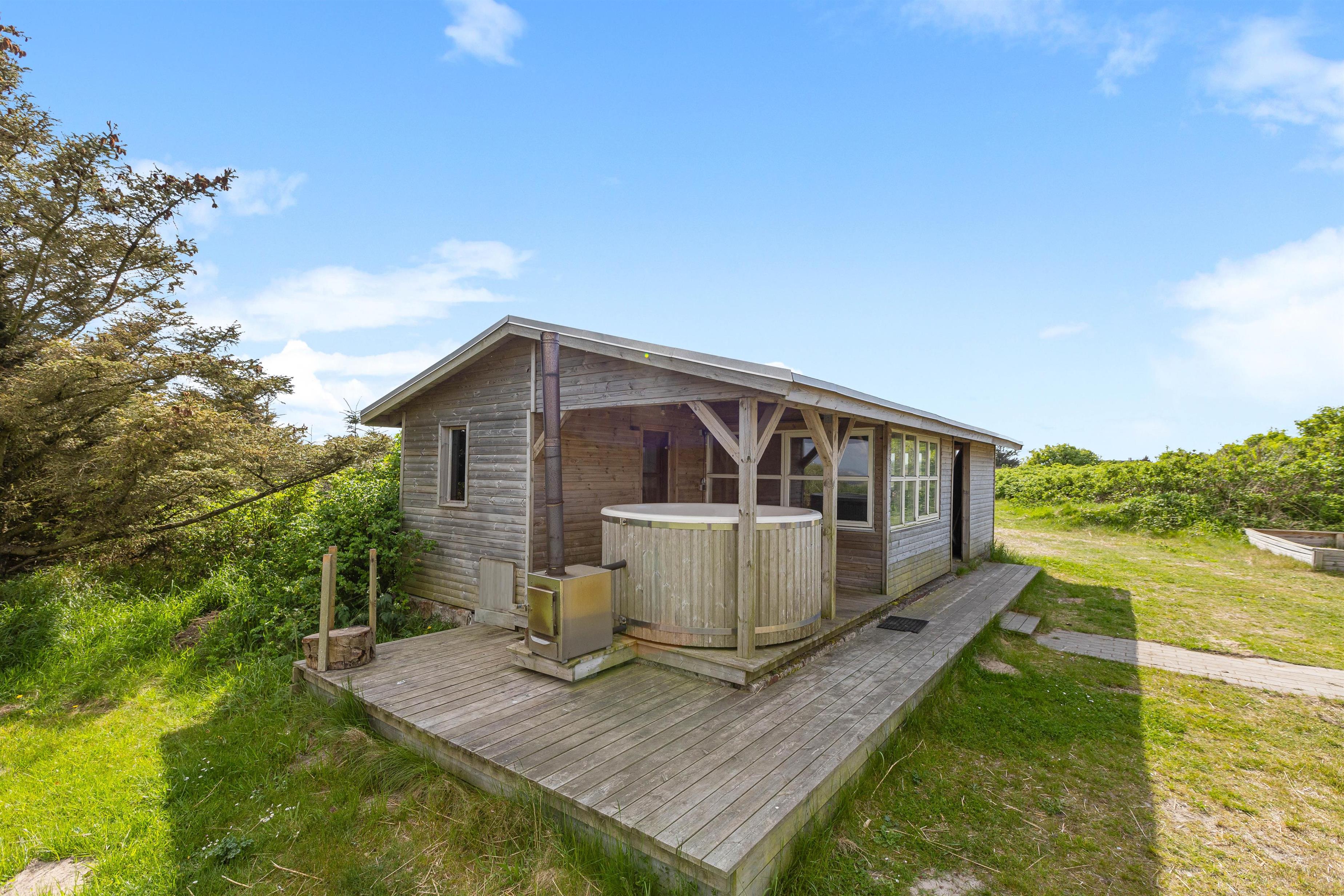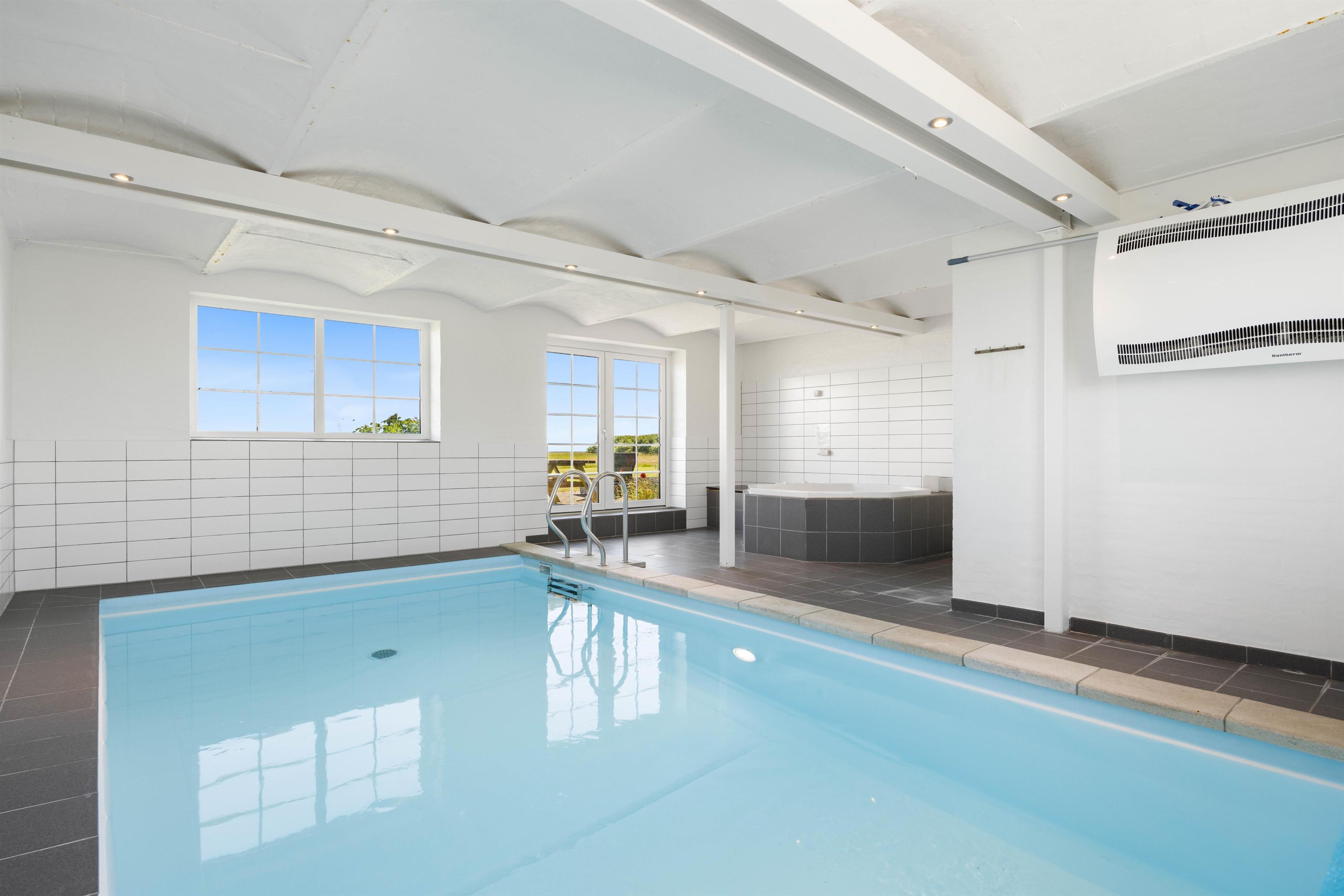En af de helt store fordele ved dette sommerhus er de mange wellness-faciliteter. Her kan I nyde en opvarmet indendørs pool på 21m2, som er perfekt til både leg og afslapning. Efter en svømmetur kan I slappe af i tømmespaen, som tilbyder en skøn mulighed for at koble af og nyde ferien. Udesaunaen og vildmarksbadet er også et hit, især på de køligere dage.