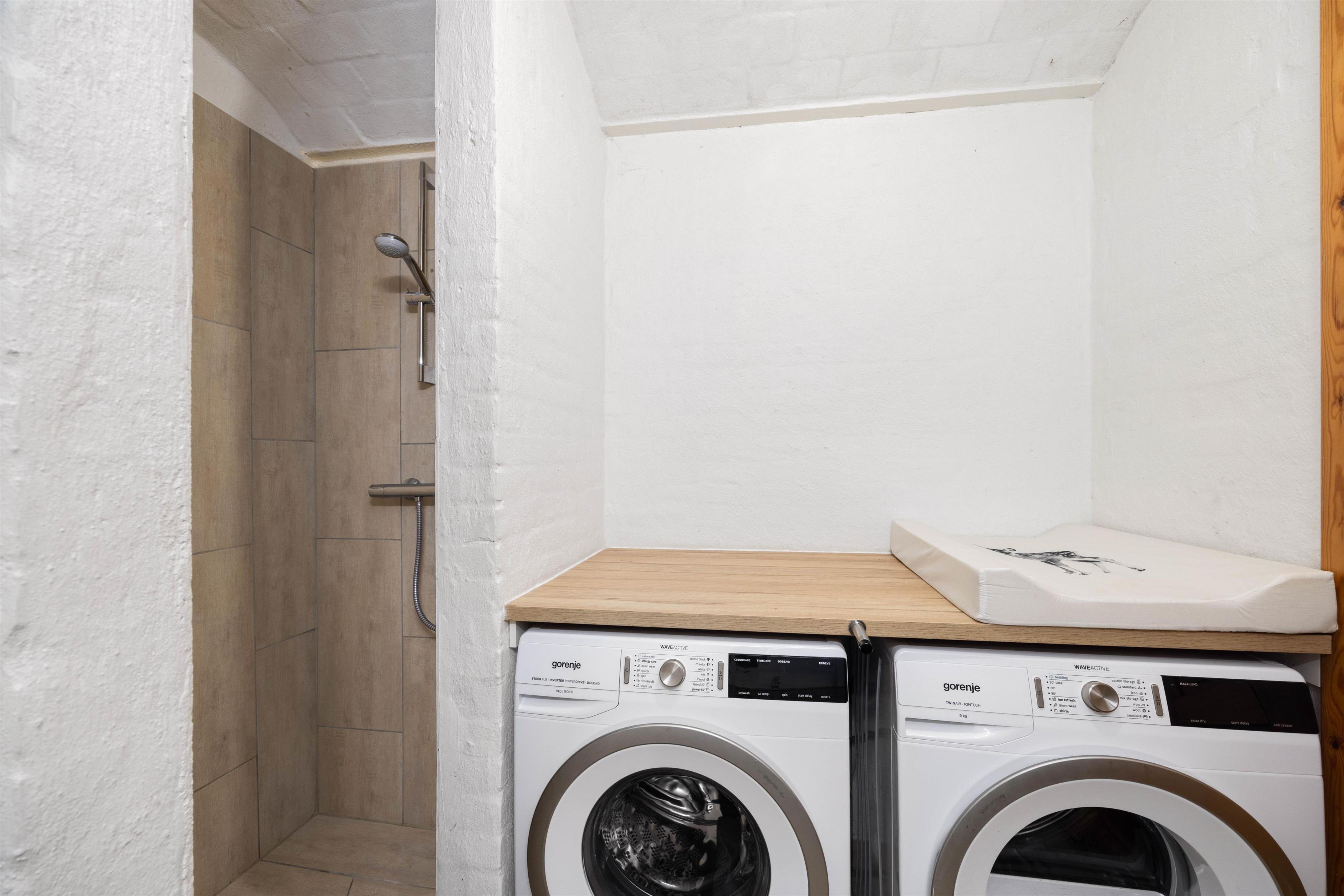 Det moderne køkken er fuldt udstyret med opvaskemaskine, så I nemt kan tilberede måltider til hele familien. Udover opvaskemaskine er der også både vaskemaskine og tørretumbler til rådighed, så I ikke skal bekymre jer om, at tøjet bliver beskidt.