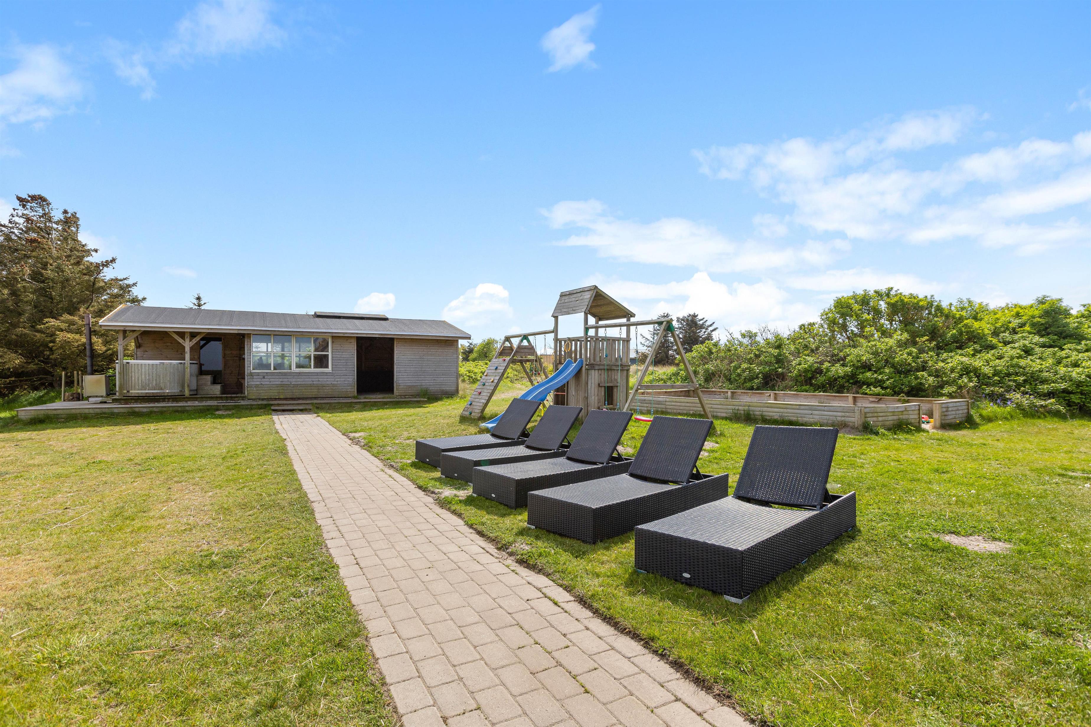 Om aften kan I tænde op i grillen og nyde maden ved de mange havemøbler, der står klar på den store terrasse. Der er også en overdækket terrasse, som er ideel til de danske sommeraftener, hvor vejret kan være lidt ustadigt.