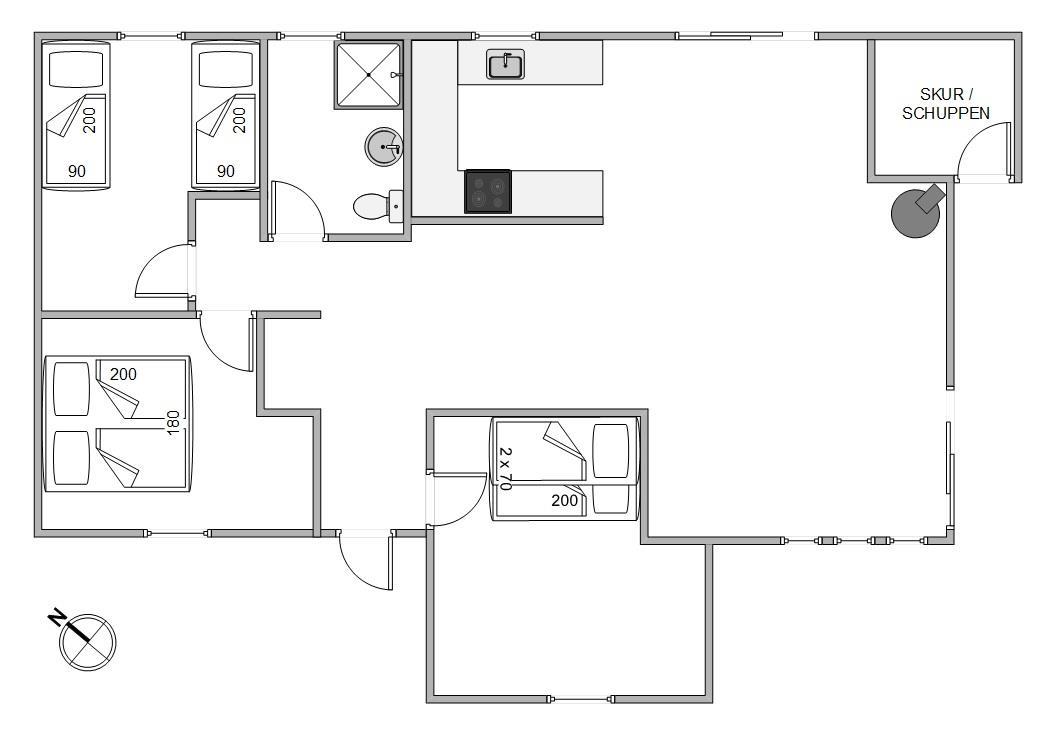 Når aftenen nærmer sig, og det er tid til at sove, er der 3 soveværelser, som kan sikre jer en god nats søvn. Herunder er der et værelse med dobbeltseng, et værelse med to enkeltsenge og et værelse med en køjeseng, som jo tit er et hit blandt sommerhusets yngre beboere. Derudover er der et godt badeværelse med gulvvarme i sommerhuset.
