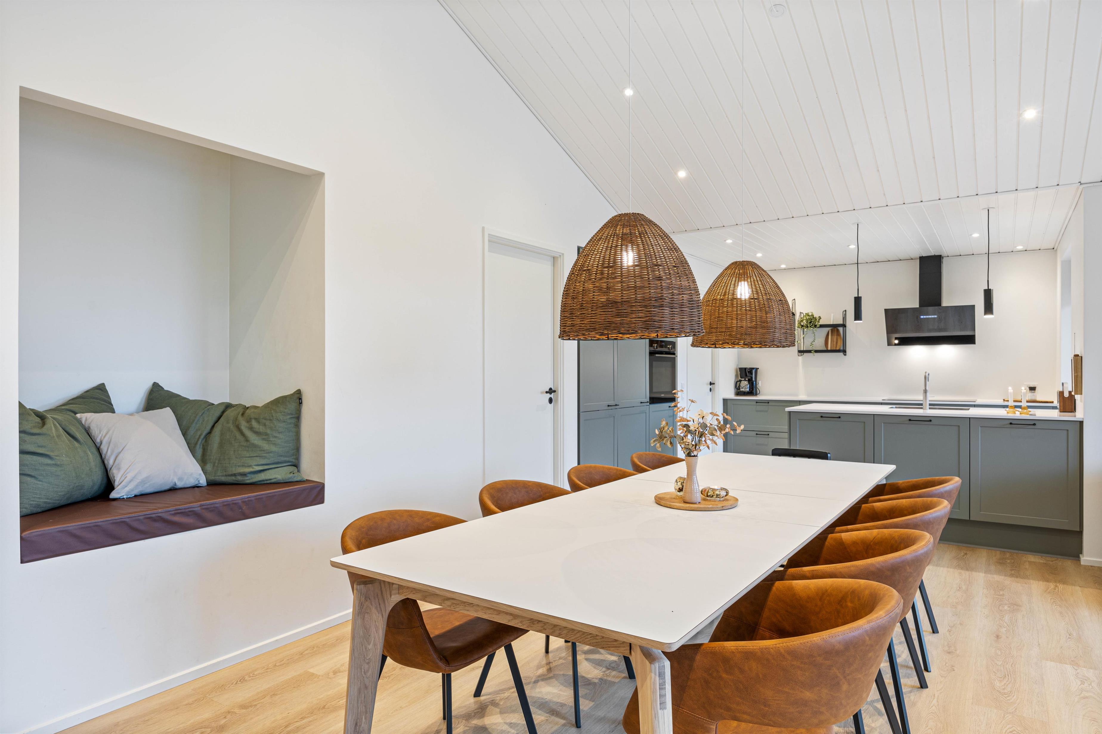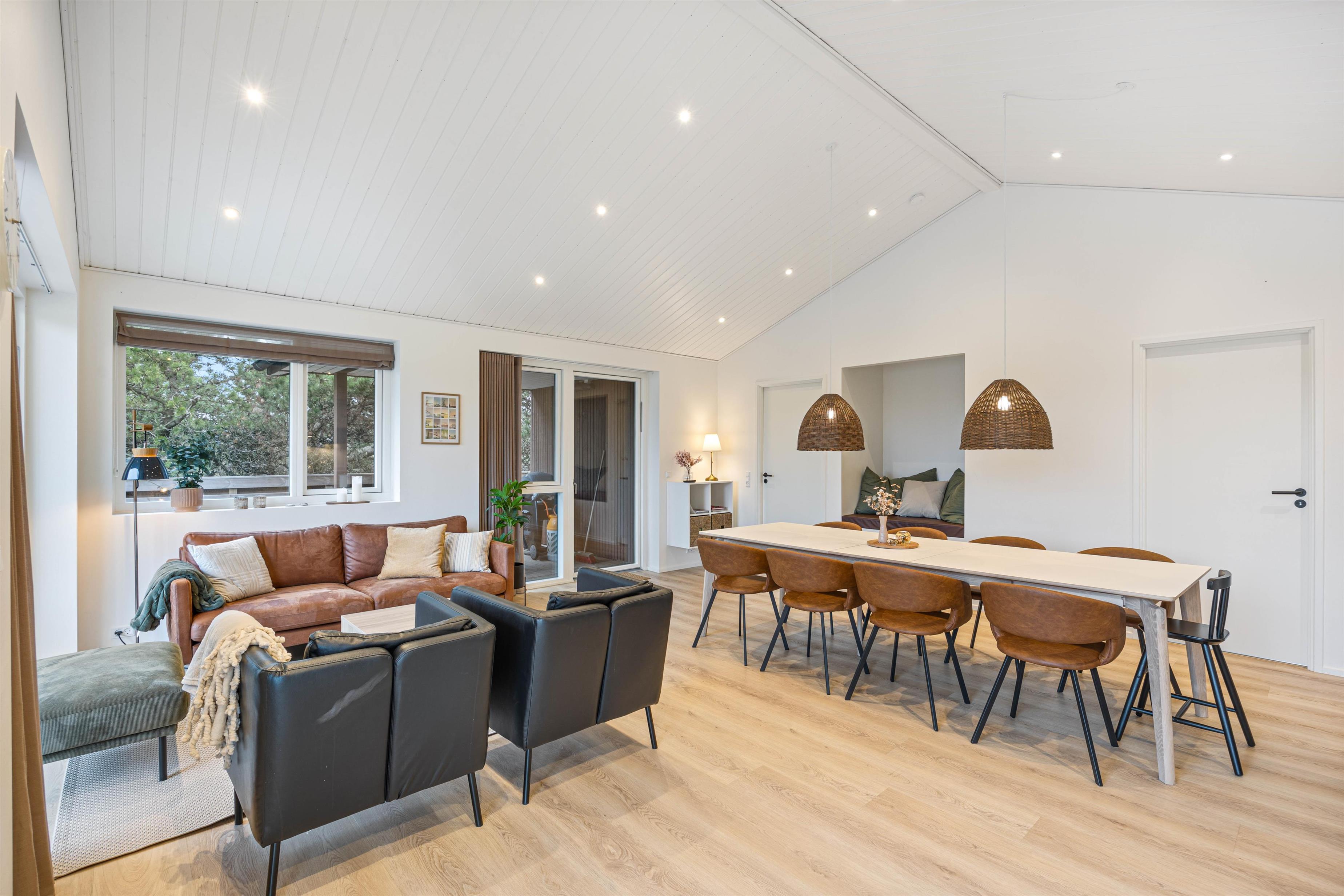 Køkkenet og stuen er forenet i et åbent opholdsrum, hvor der er rig mulighed for at samles til hyggelige stunder. I kan tilberede mad sammen, spille brætspil eller slappe af med en god film i sofaområdet.
