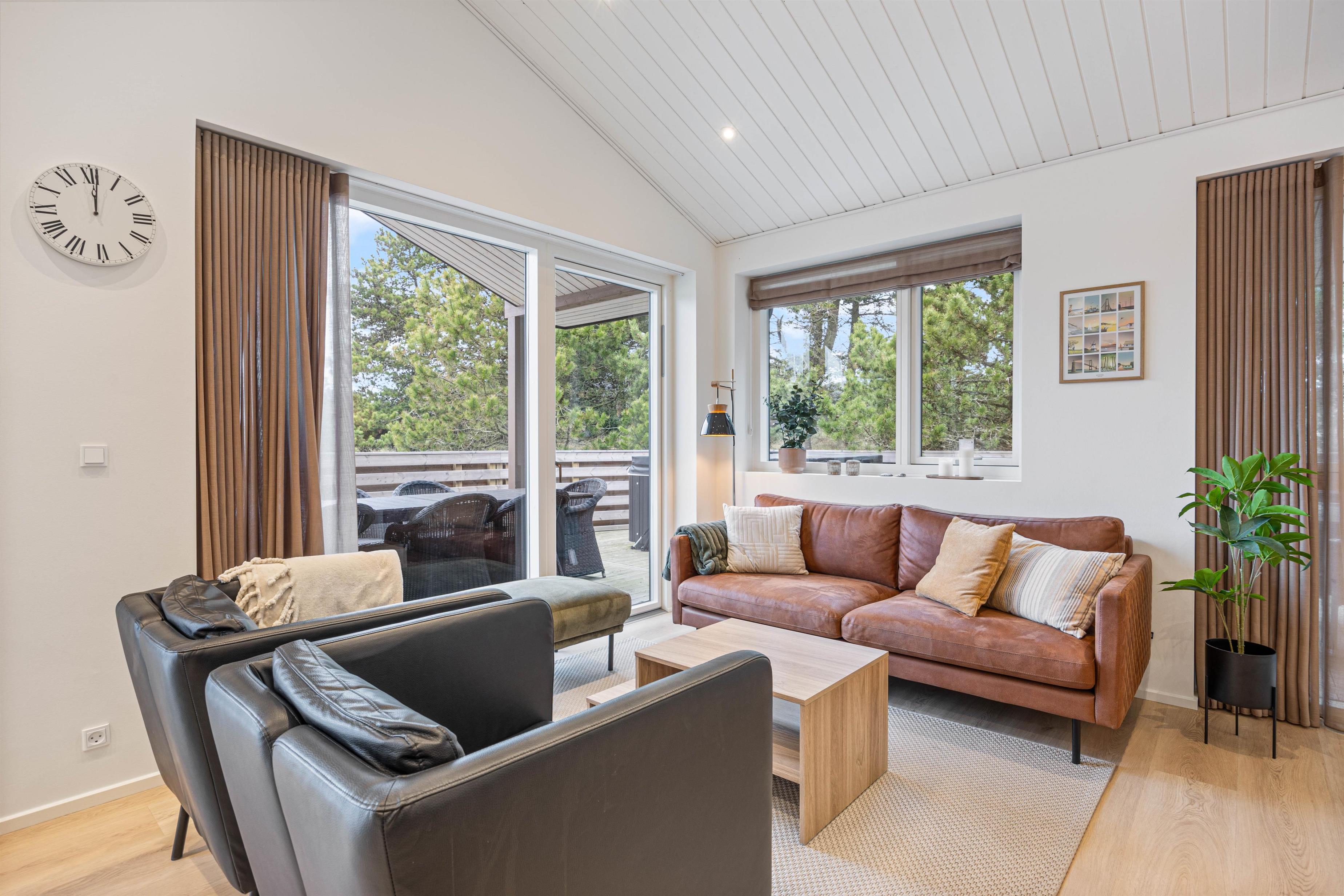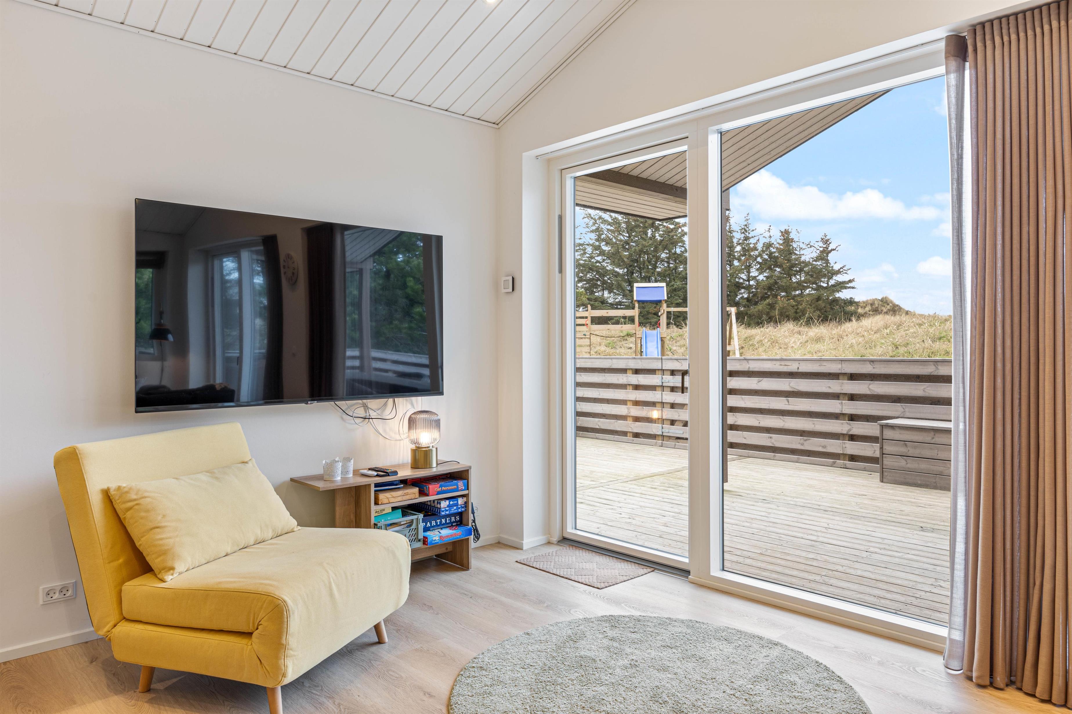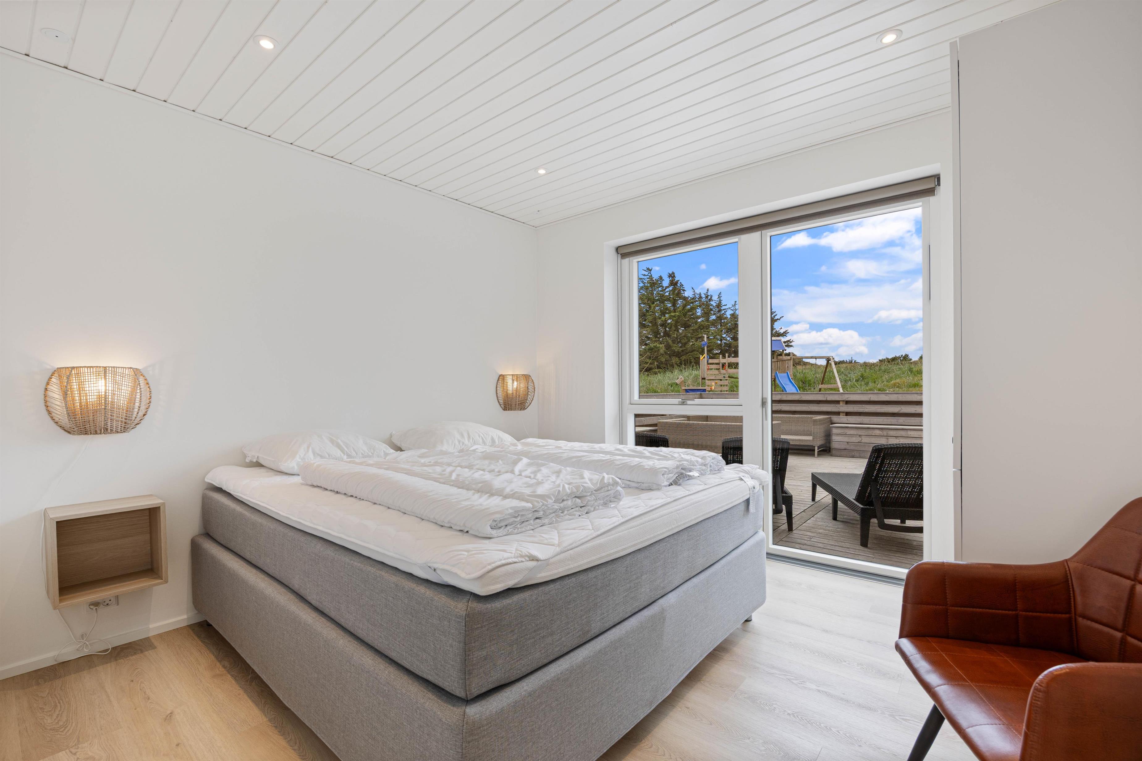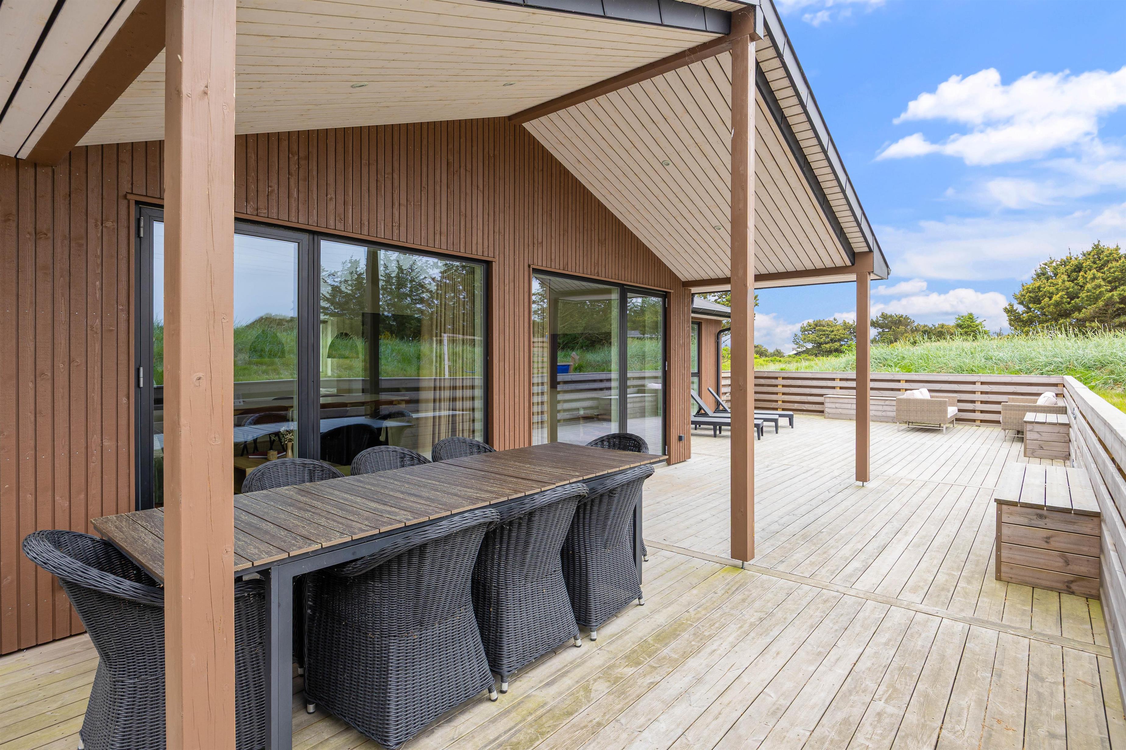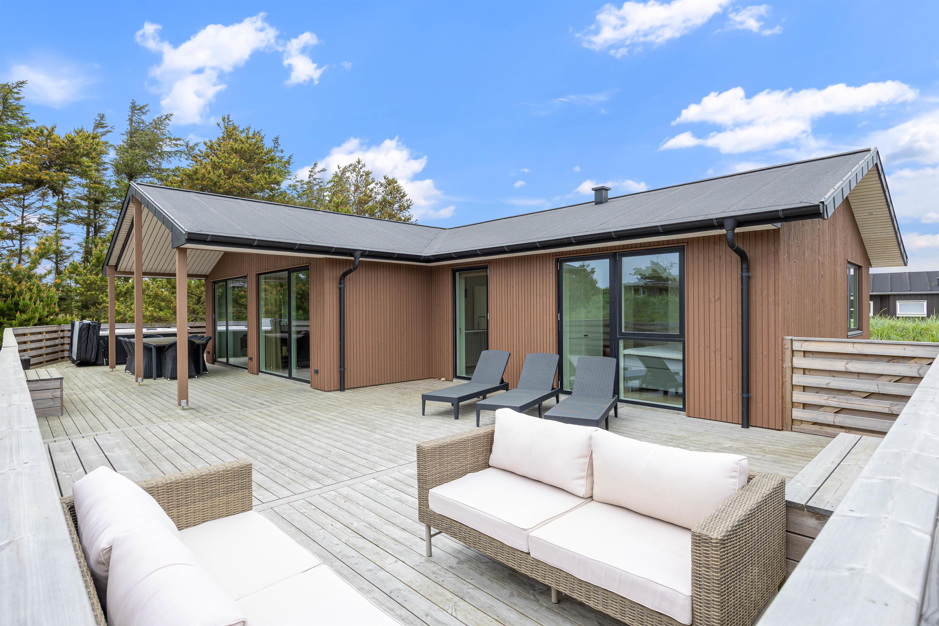 Sommerhuset er beliggende på en natur- og klitgrund. Her finder I et dejligt udendørs spabad på den lukkede terrasse, hvor I kan slappe af og nyde den friske luft sammen med et glas vin – det perfekte feriemiljø. På terrassen er der også en gasgrill, hvor aftensmaden kan tilberedes, mens I nyder den afslappede stemning i havemøblerne. For børnene er der en sandkasse og et gyngestativ til underholdning, mens aftensmaden bliver klar.