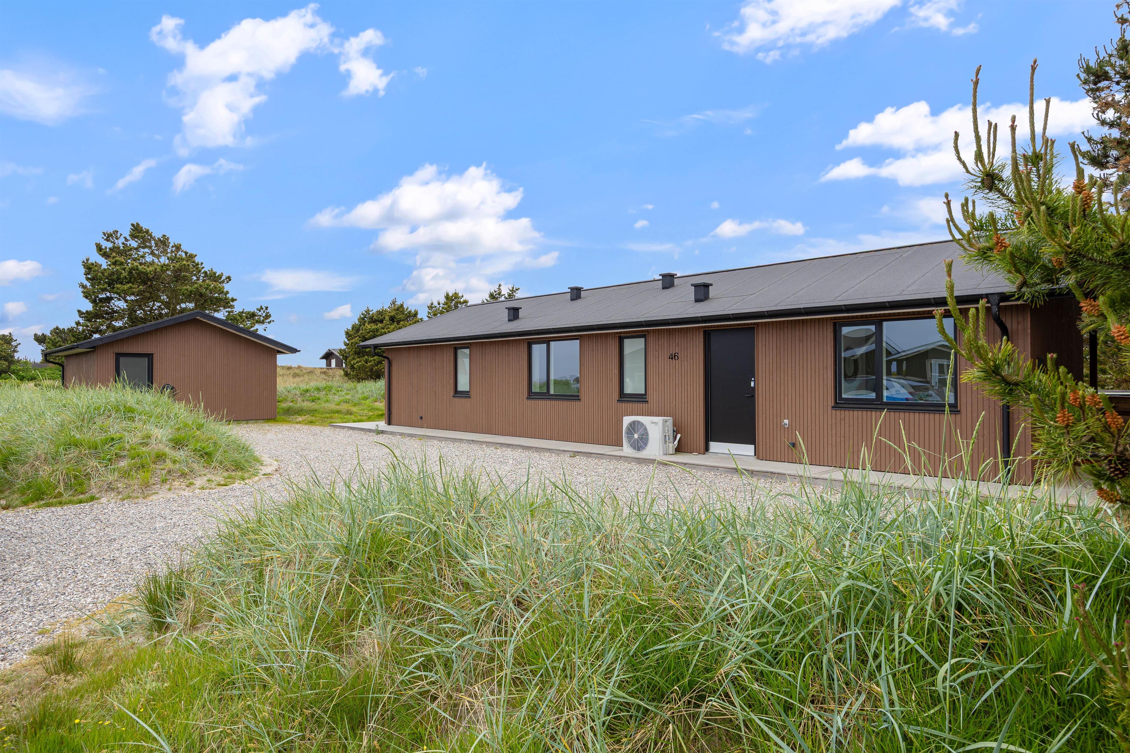 Dette 5-stjernede sommerhus, der er bygget i 2023, er beliggende på Klitsvinget 46 i Klegod. Med sin fantastiske beliggenhed ved Vestkysten og et skønt udendørsområde med spabad, er det den ideelle ramme for en uforglemmelig ferie ved Vesterhavet. Sommerhuset har plads til 8 personer og tilbyder den perfekte kombination af afslapning og nærvær i smukke omgivelser.