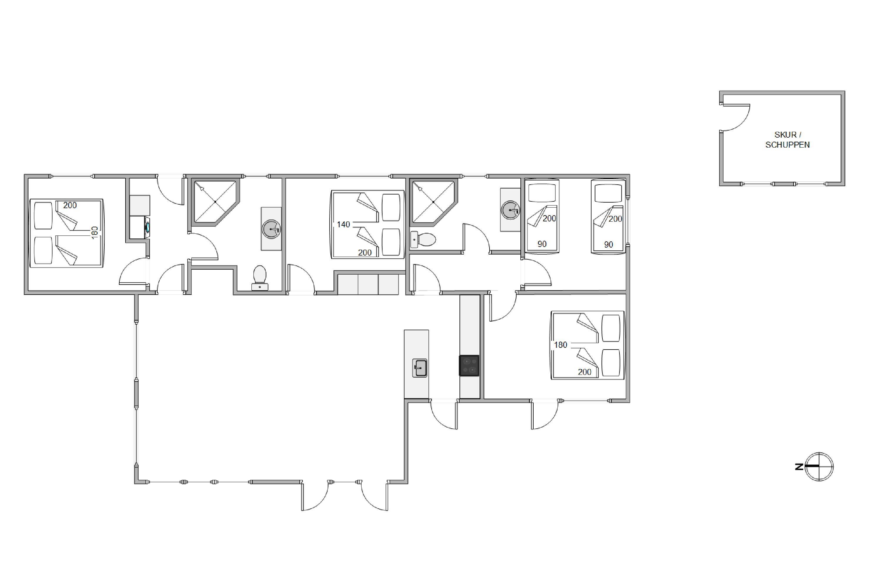 Sommerhuset har 4 soveværelser med plads til op til 8 personer. Værelserne er indrettet med 3 dobbeltsenge og 2 enkeltsenge, hvilket giver mulighed for en god og afslappende nats søvn, så I er klar til at udforske området næste dag.