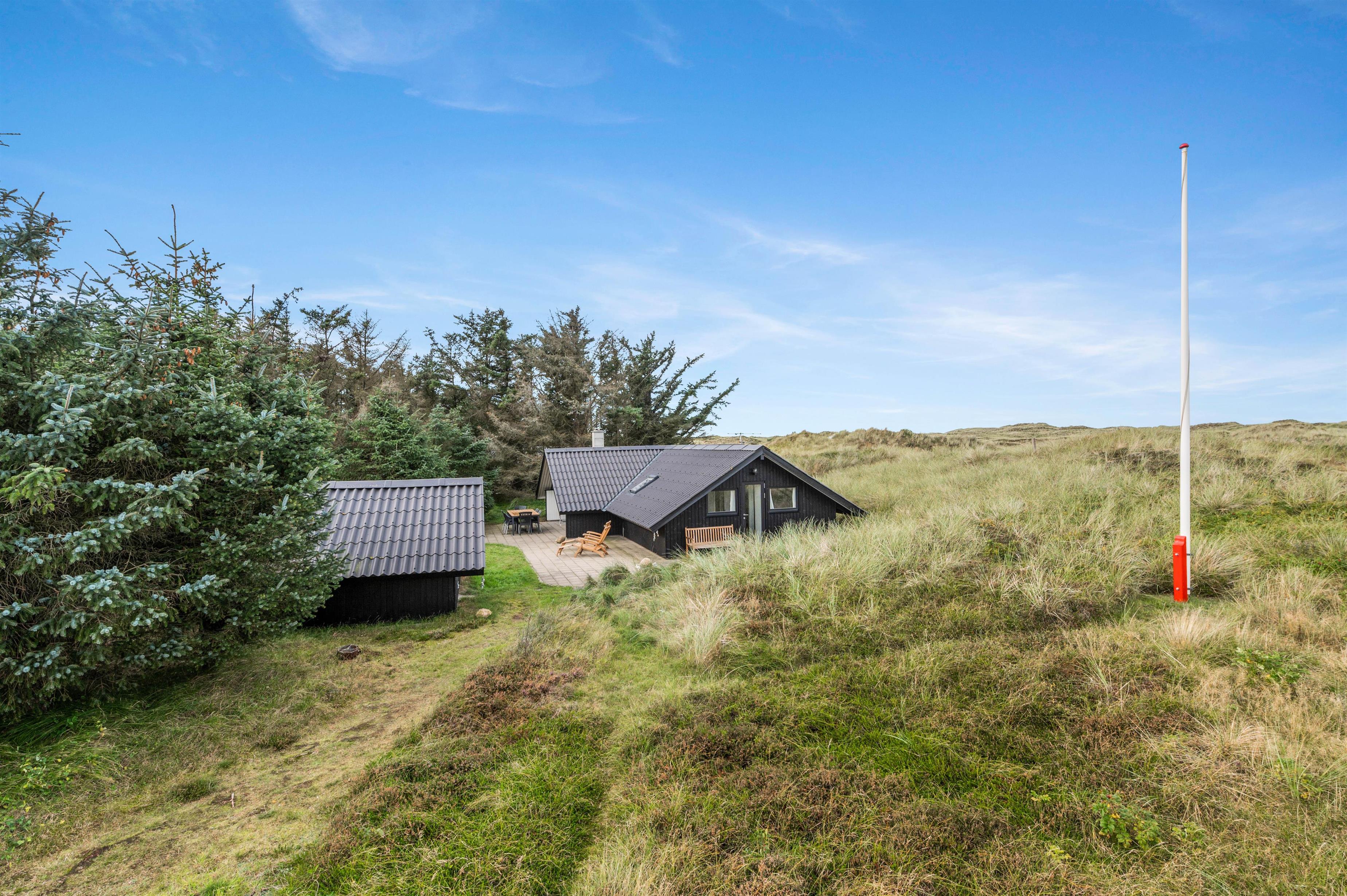 Sommerhuset på Fladsbjergvej 30 er et lille, men ikke desto mindre superhyggeligt feriehus, der oser af ægte sommerhusstemning. Sommerhuset er sort og hvidmalet og ligger ugeneret bag grantræer. Trods størrelsen rummer sommerhuset plads til 6 personer, og der er kun 450 meter ned til det brusende Vesterhav igennem klitlandskabet.