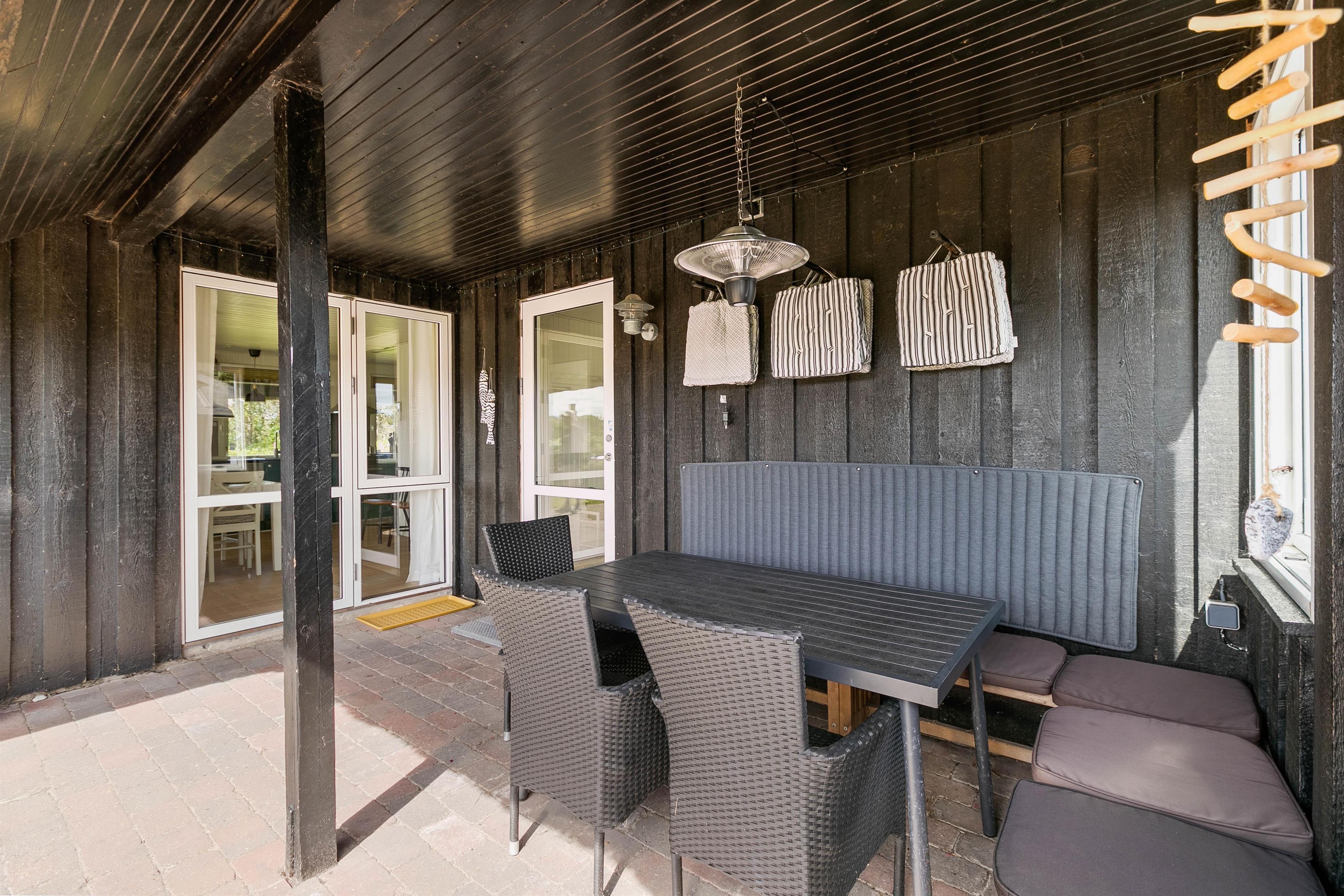 Sommerhuset på Lyngvejen 150 ligger på en godt 2400 m2 stor naturgrund og har en ugeneret have med en dejlig overdækket terrasse og en terrasse, der er vestvendt. Her kan I sidde og nyde solens stråler, mens I daser i liggestolene og eller samles rundt om havebordet til en lækker frokost i solen. Der er selvfølgelig også en grill til rådighed. På de kølige aftener kan I tænde for varmelampen på terrassen, så I kan forlænge de udendørs aftener. Sommerhuset har også en tilhørende carport og skur.