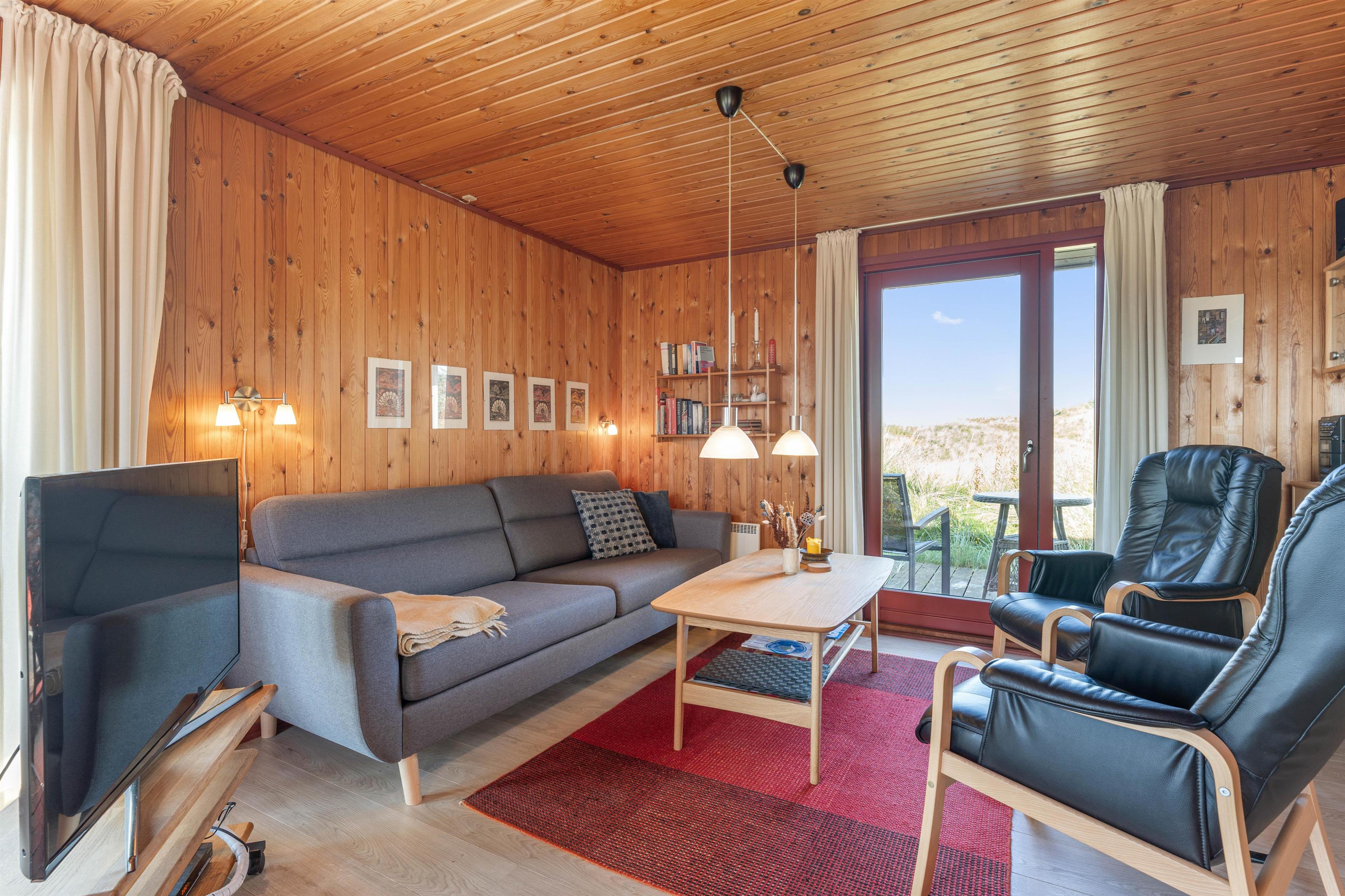 Den sydvendte udestue er det perfekte sted at nyde sin morgenkaffe, da man her har panoramaudsigt ud over den smukke klitplantage.