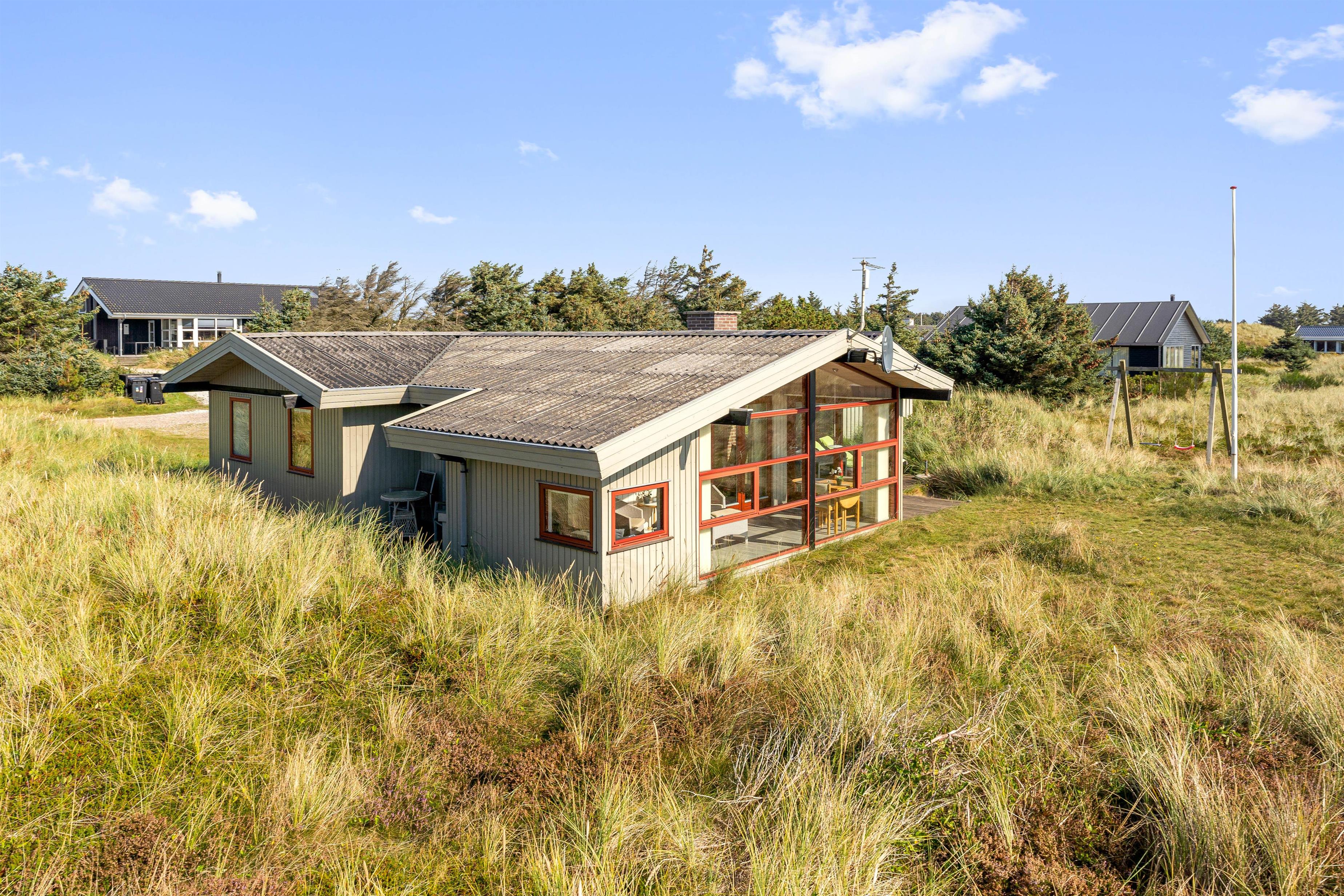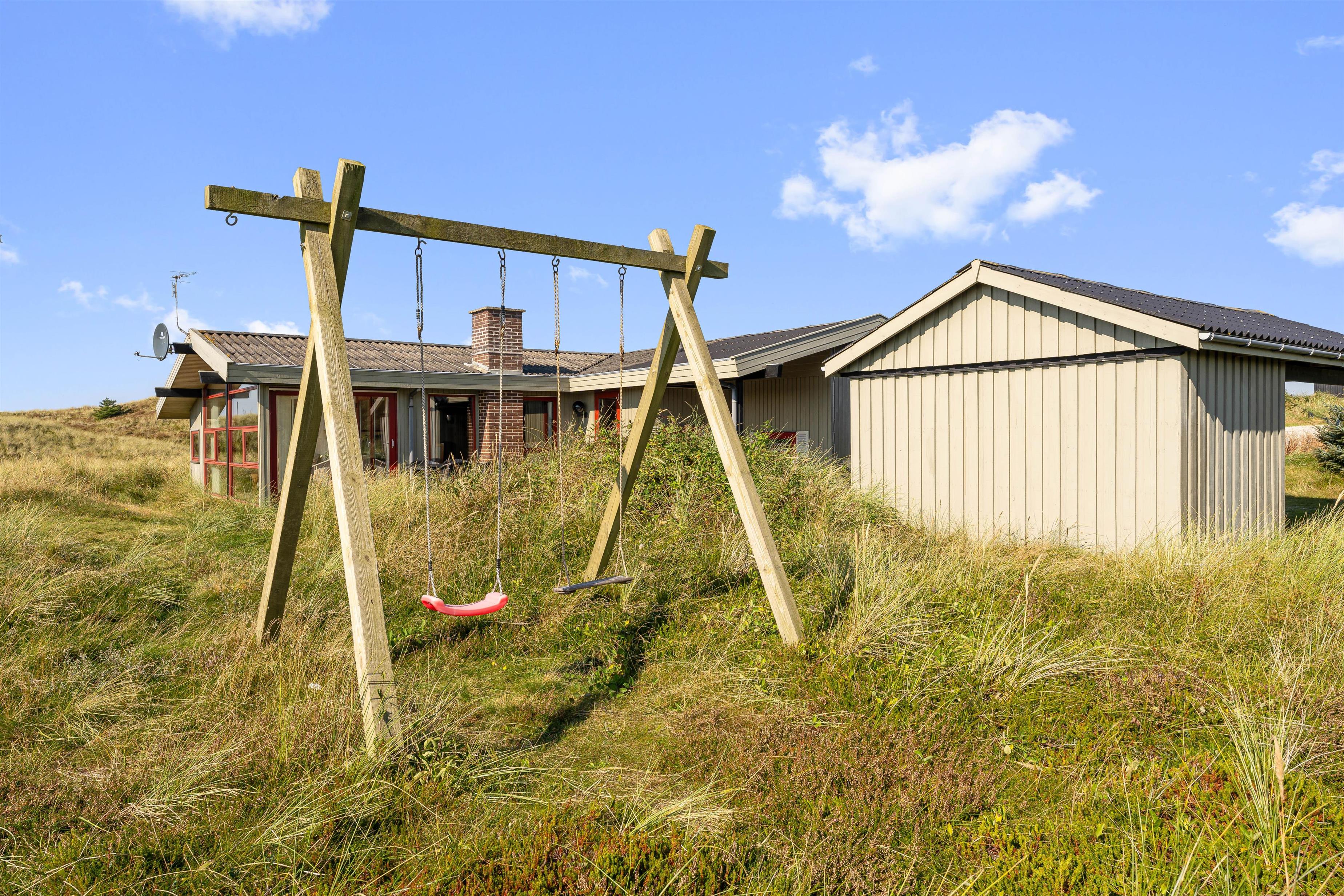 Feriehuset er velholdt og er placeret i næsten helt uforstyrrede omgivelser for enden af en blind vej. Her er der mulighed for at nyde ferien i fred og ro. På den dejlige naturgrund er der mange muligheder og plads til leg og spil for både børn og voksne. Her finder du både sandkasse og gynger, hvilket passer perfekt til familiens mindste.