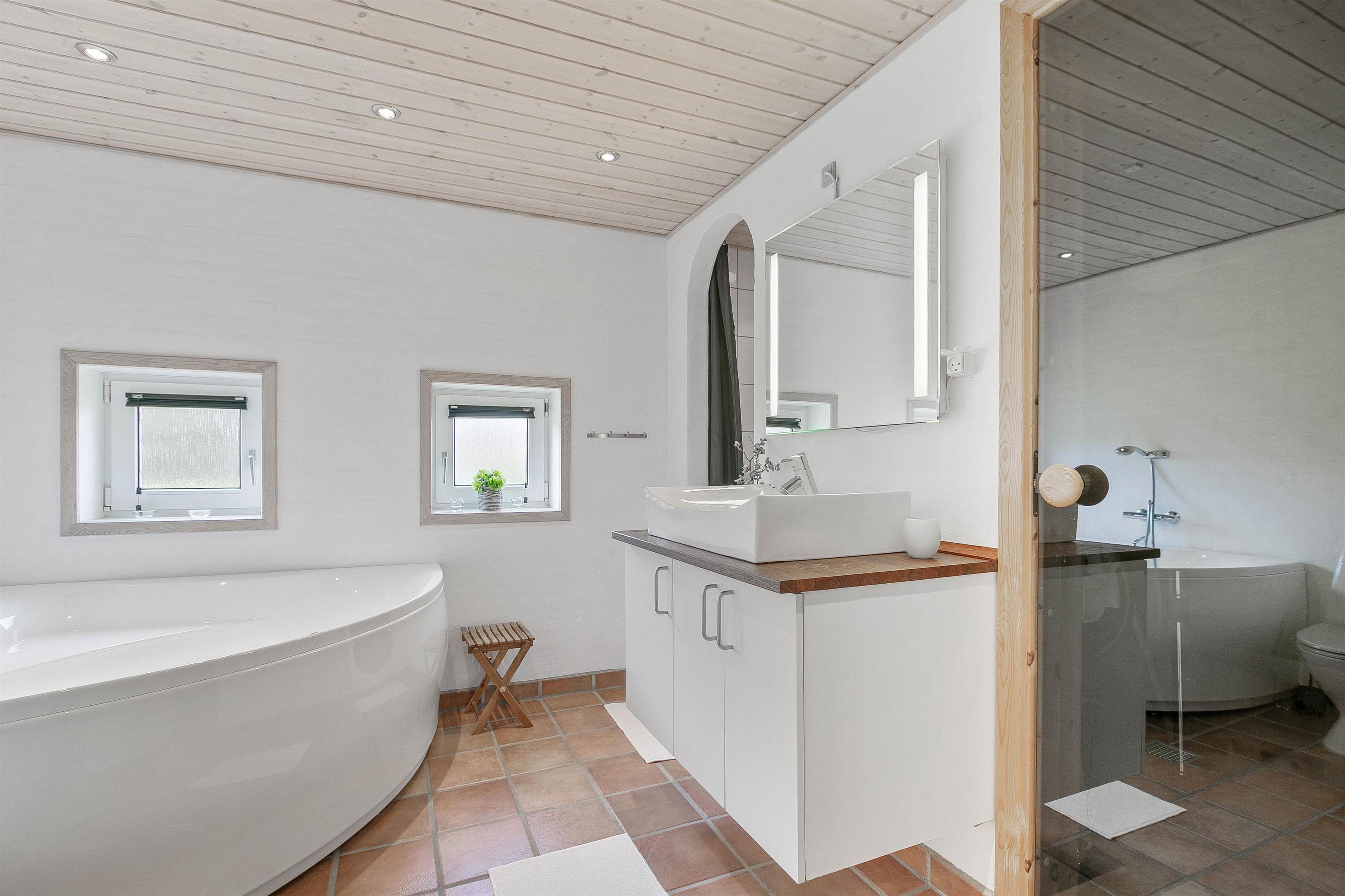 Sommerhuset har både spabad og sauna, så du kan lade krop og sjæl op efter en aktiv dag i det fri. Lad det varme vand massere dine muskler, og mærk hvordan du får fornyet energi til kroppen.