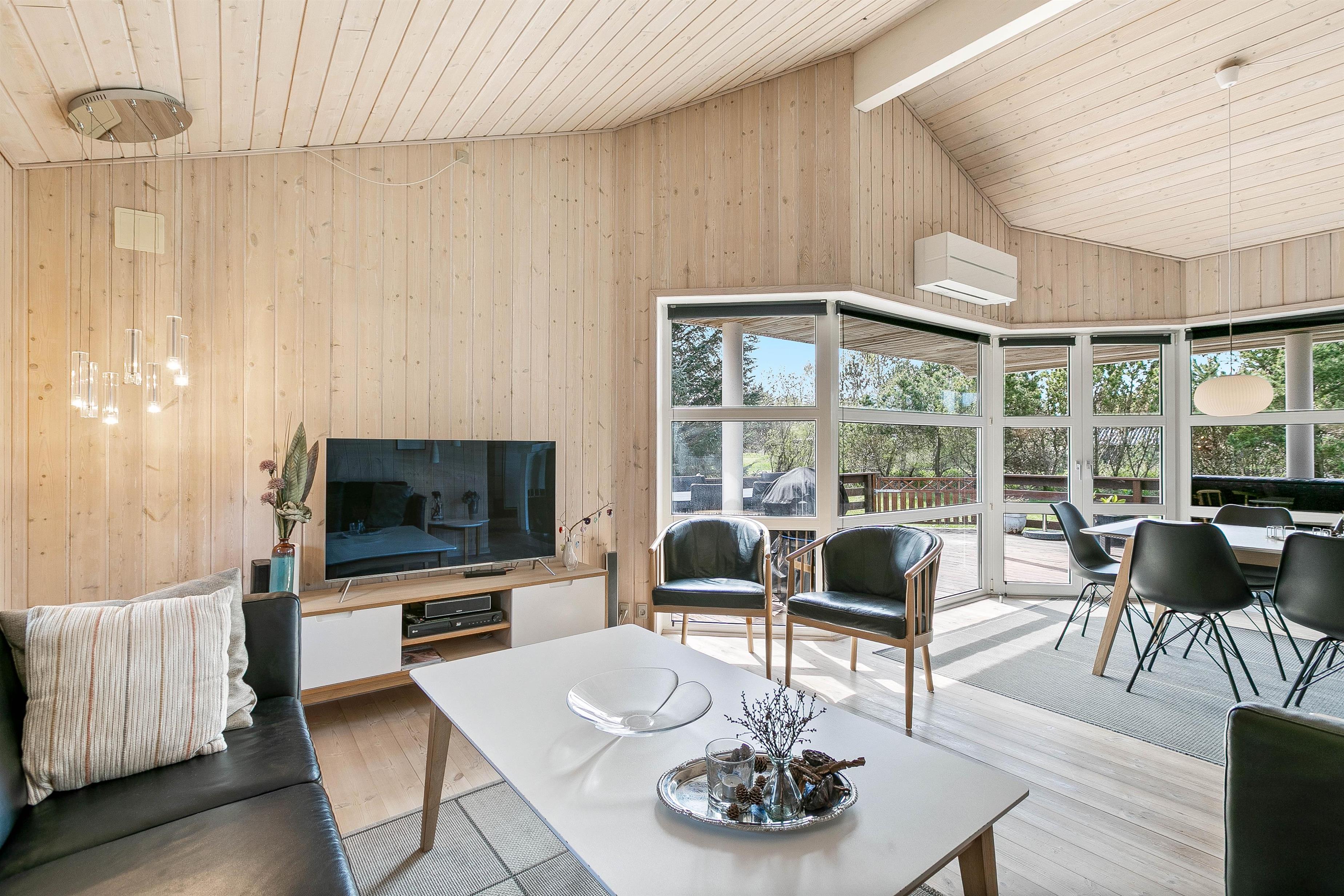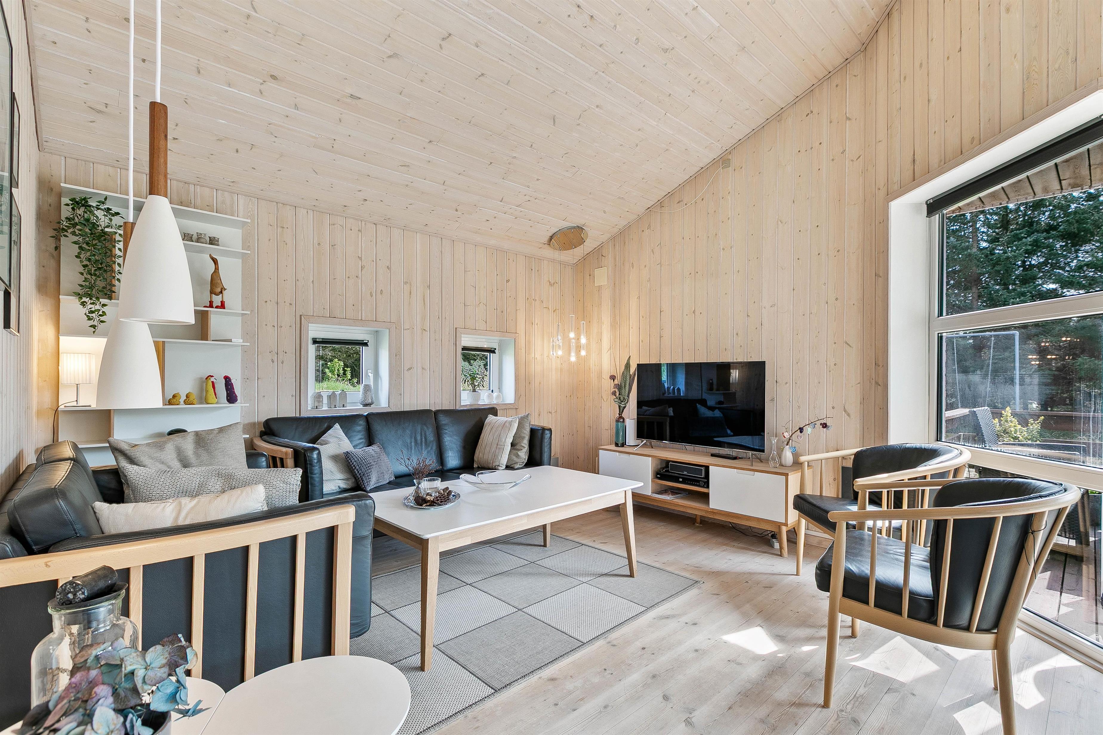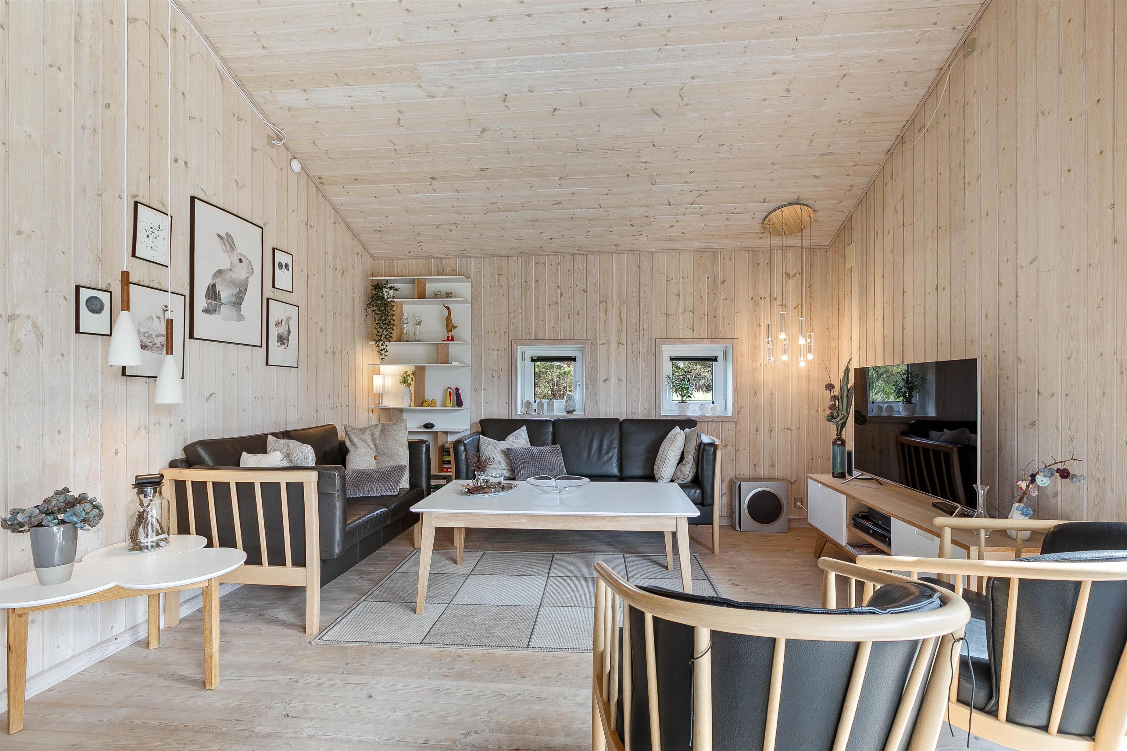 Overalt fremstår indretningen i feriehuset lys og indbydende. Vægge, lofter og gulve er holdt i lyse, varme nuancer, der søger for at lukke en masse lys ind i indretningen. Møblerne er valgt med omhu og med fokus på komfort. Sommerhuset er derfor et godt valg for dig, som gerne vil bo i et godt feriehus med fokus på godt udstyr.