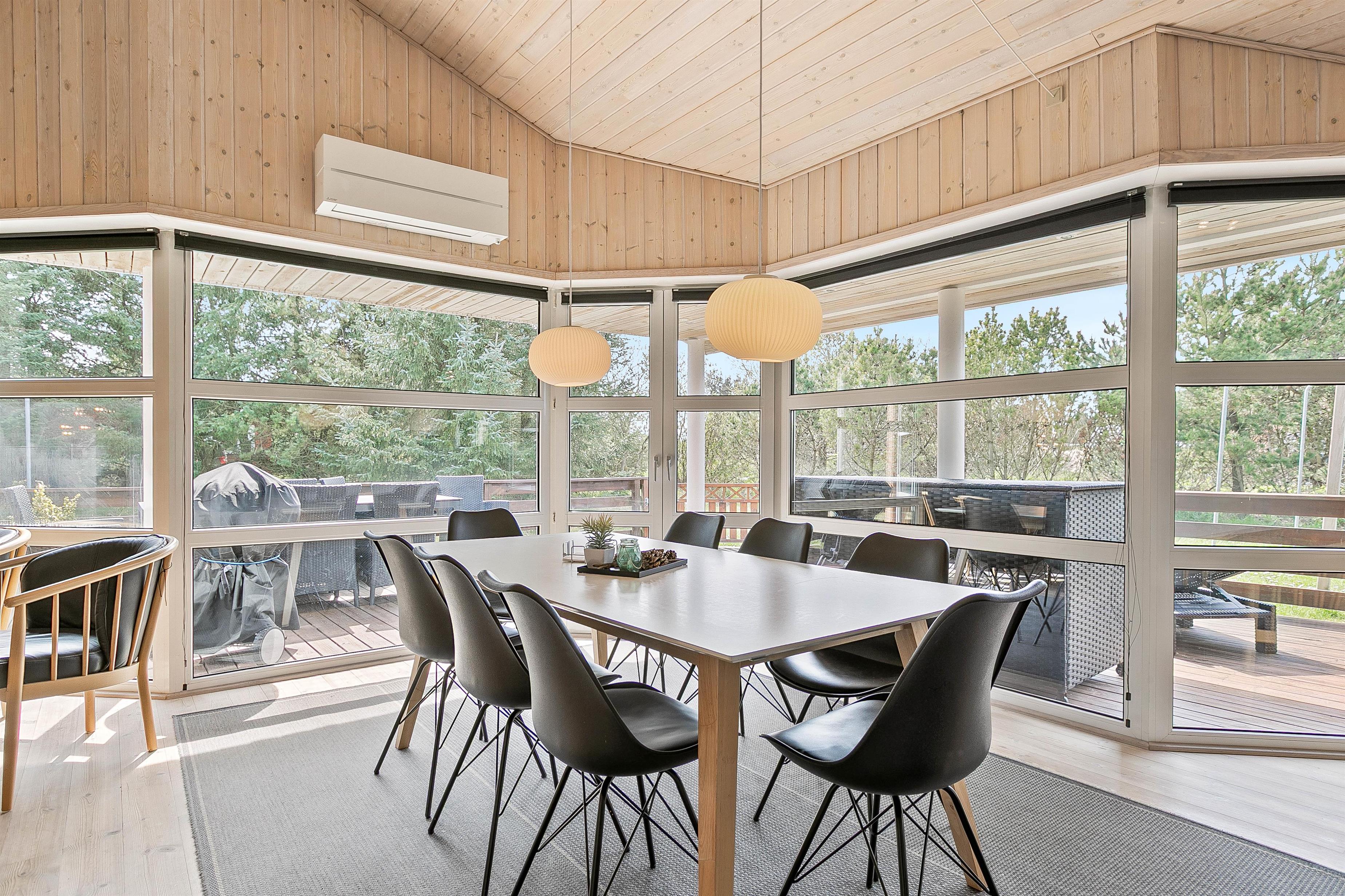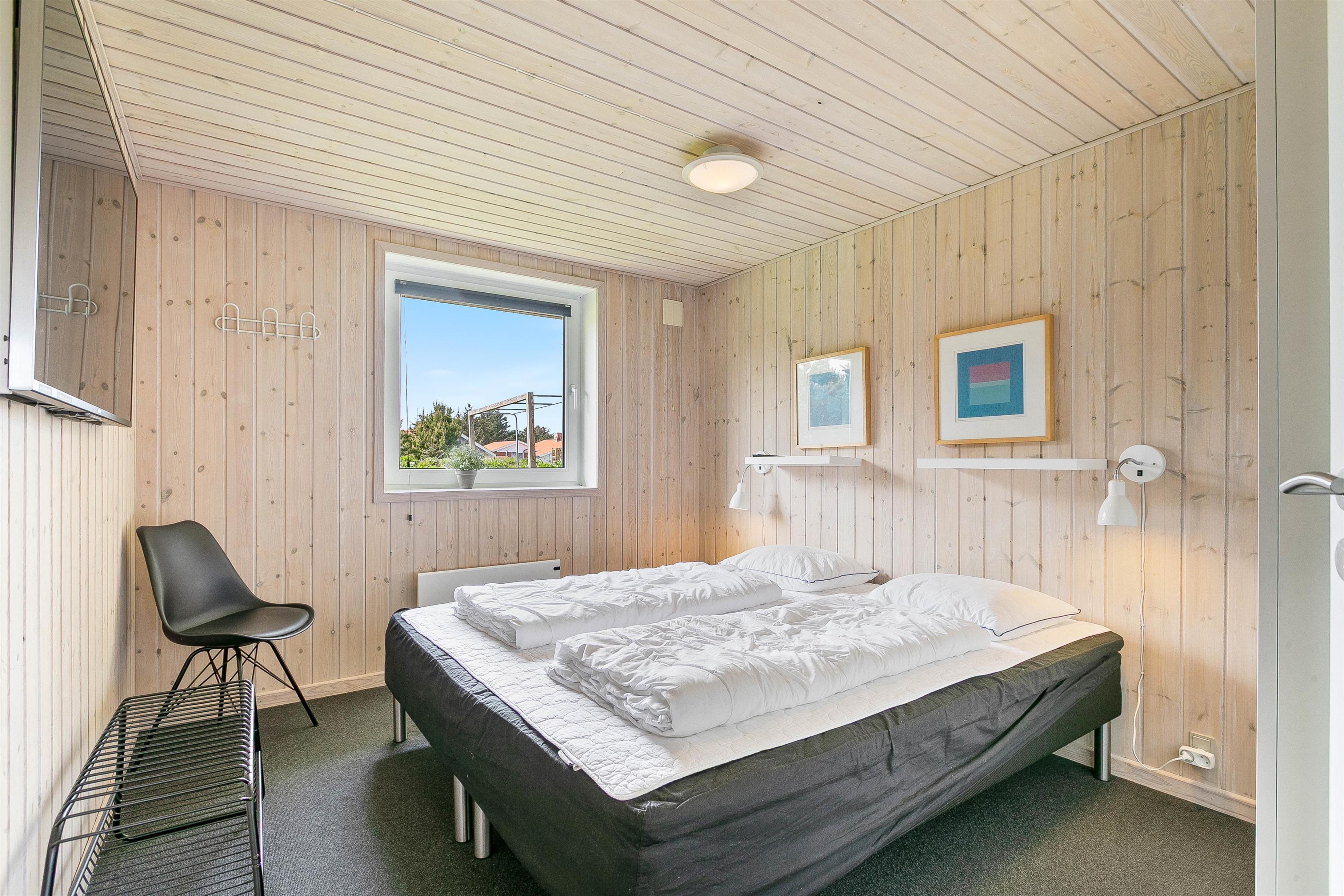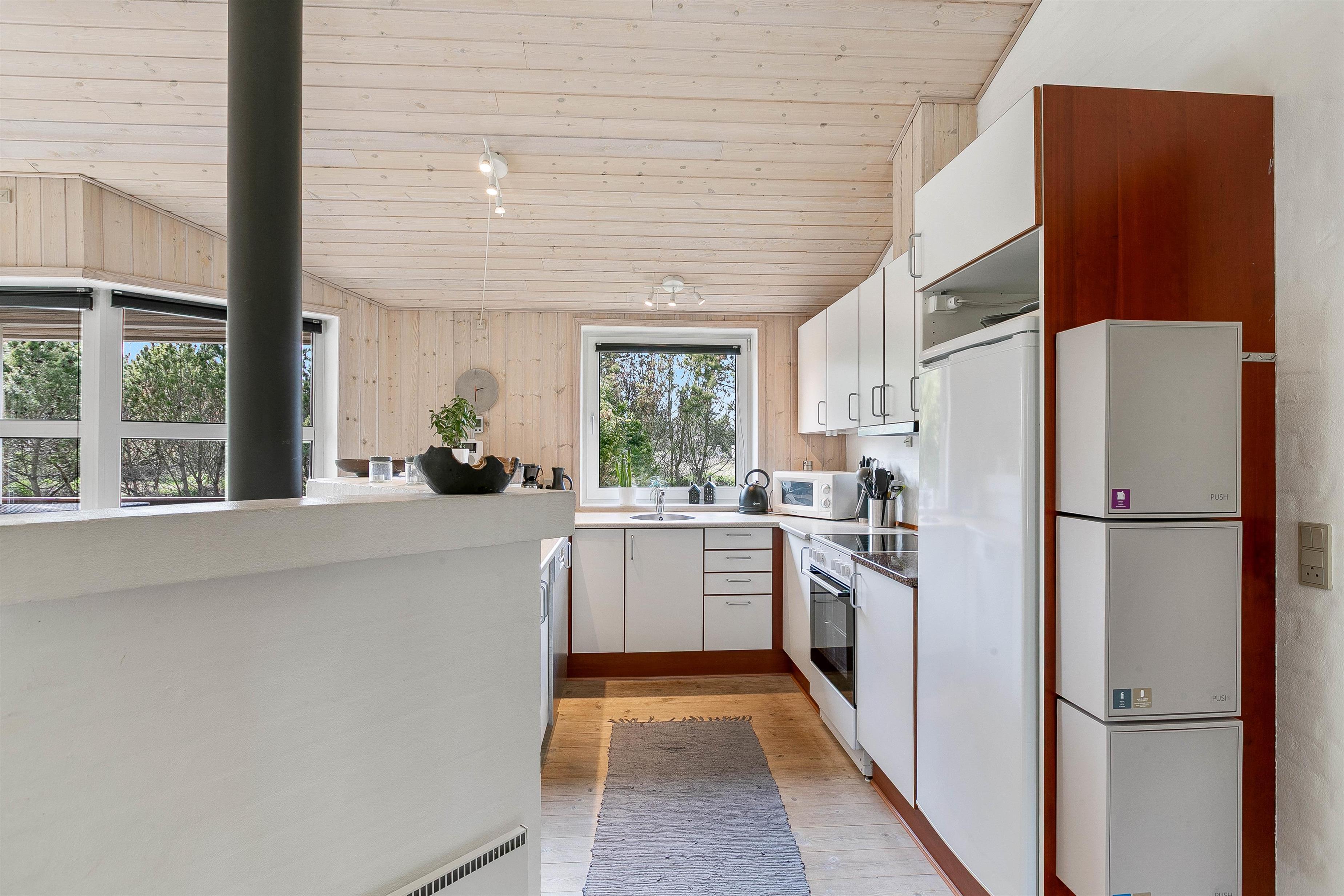 Overalt fremstår indretningen i feriehuset lys og indbydende. Vægge, lofter og gulve er holdt i lyse, varme nuancer, der søger for at lukke en masse lys ind i indretningen. Møblerne er valgt med omhu og med fokus på komfort. Sommerhuset er derfor et godt valg for dig, som gerne vil bo i et godt feriehus med fokus på godt udstyr.