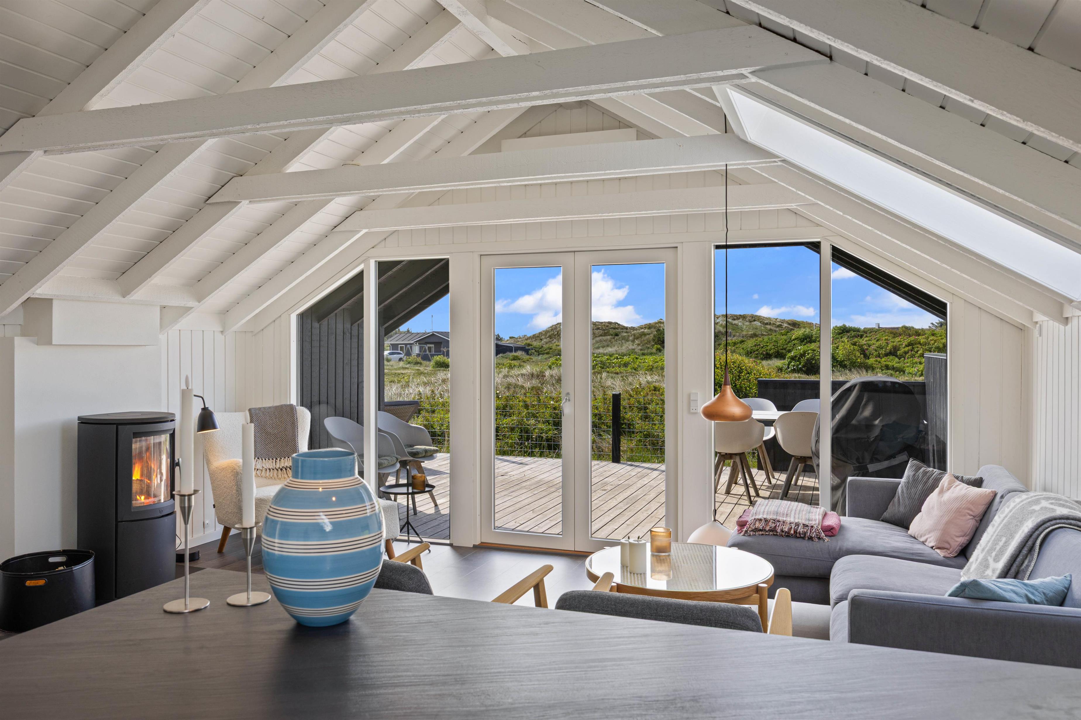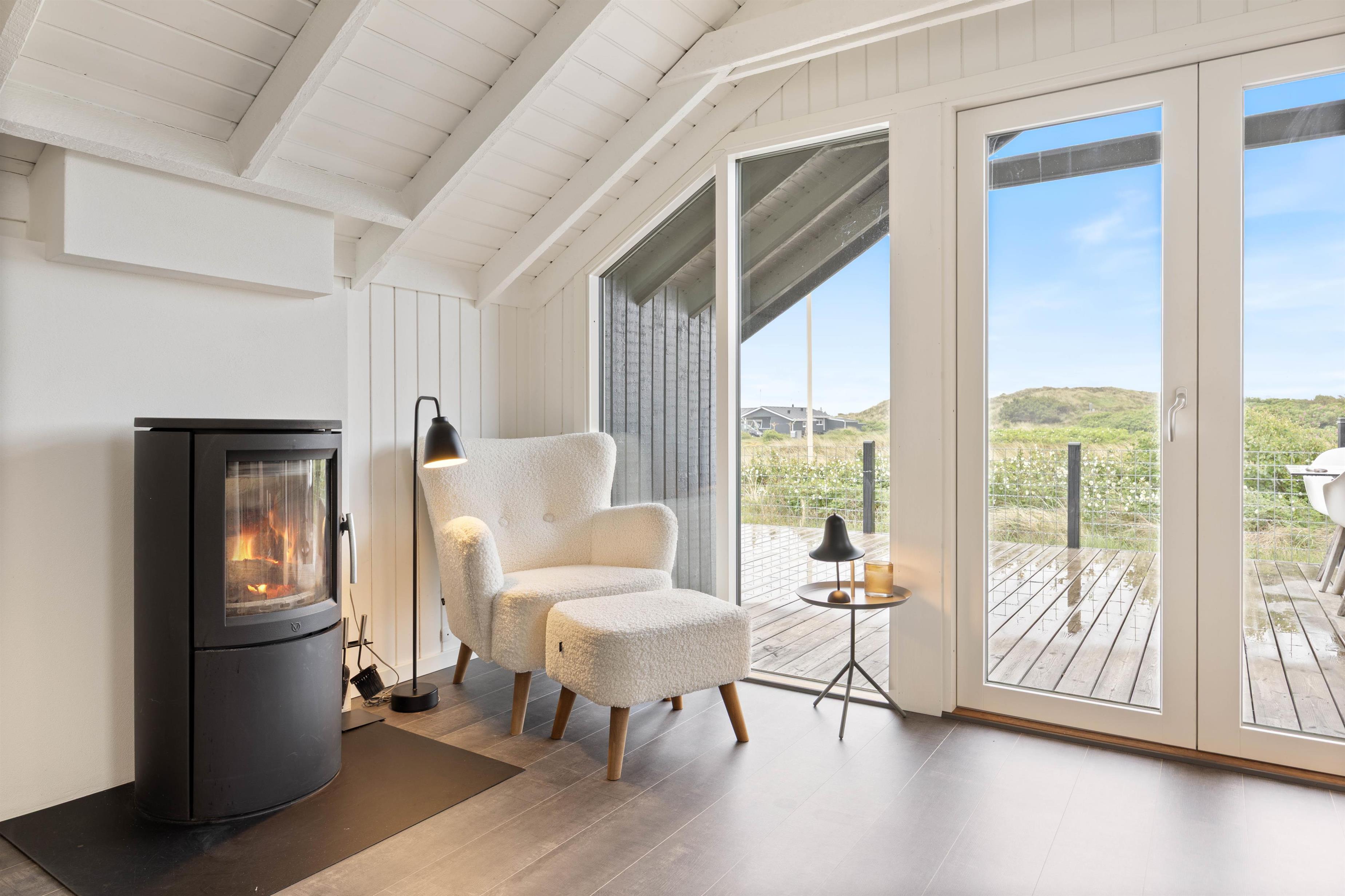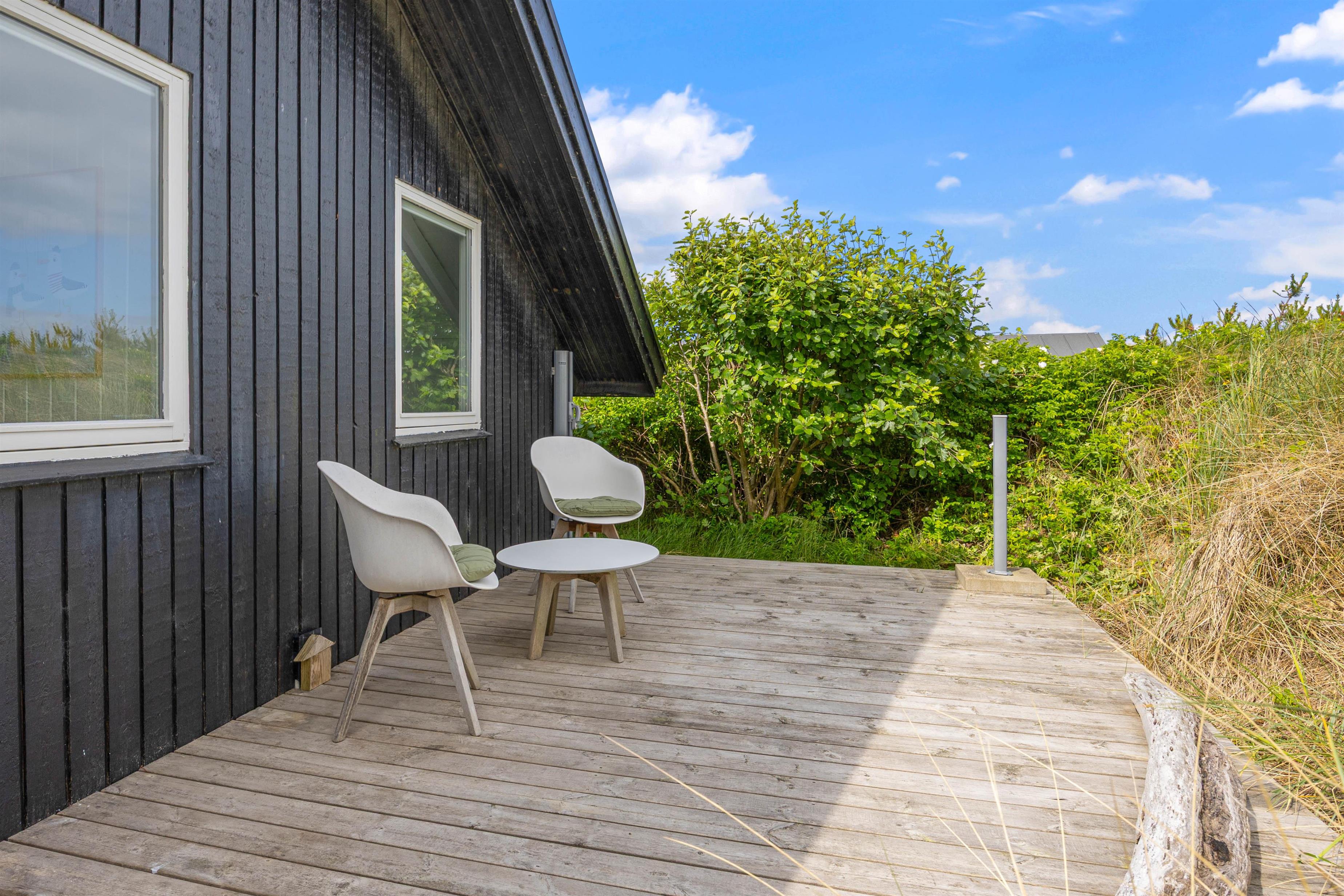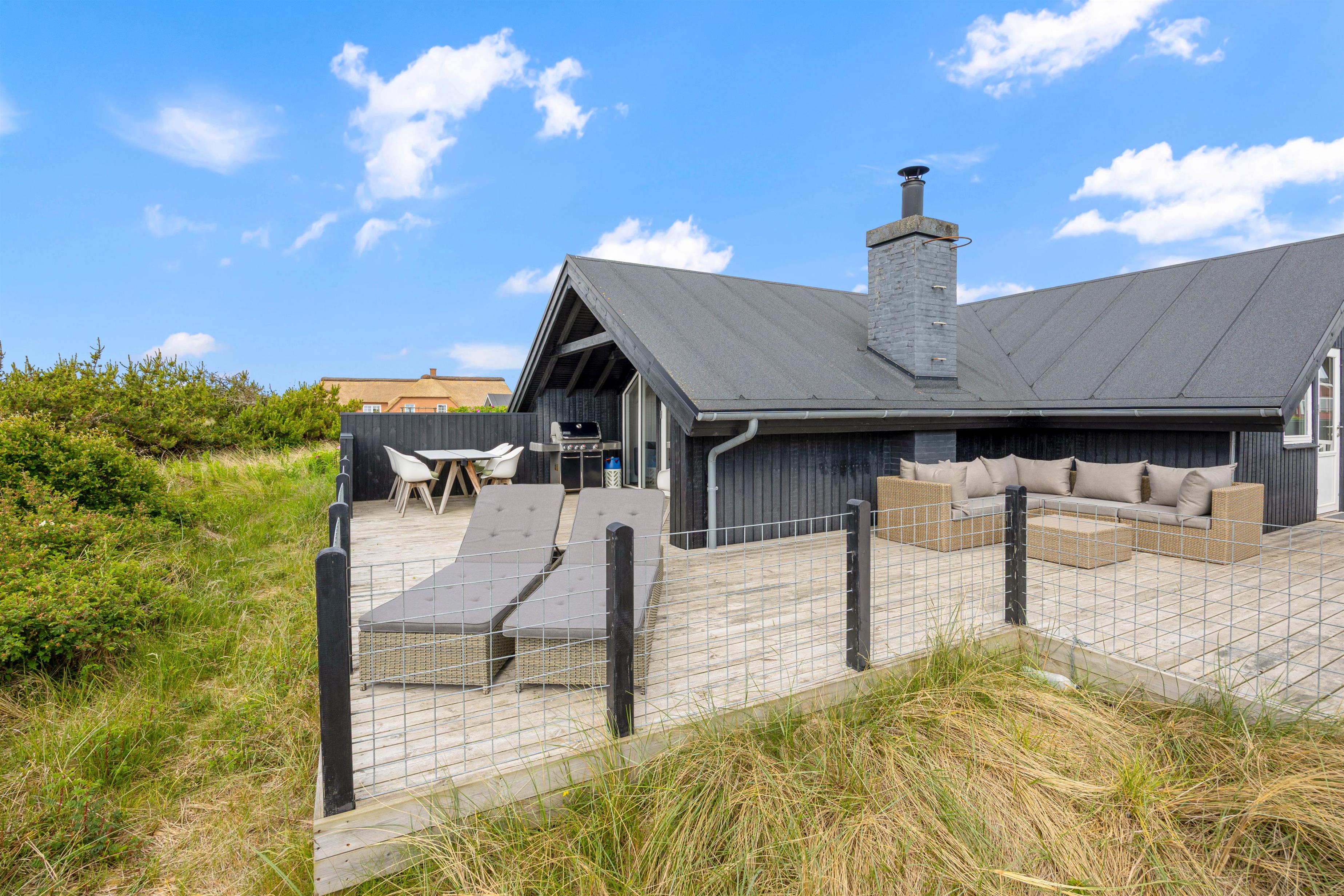 Udendørsområdet ligger op til både afslapning og hygge. Terrassen er et perfekt sted at nyde solen, en god bog eller et lækkert grillmåltid. Havemøblerne indbyder til lange, afslappede sommeraftener, hvor I kan nyde udsigten til den omkringliggende natur- og klitgrund.
