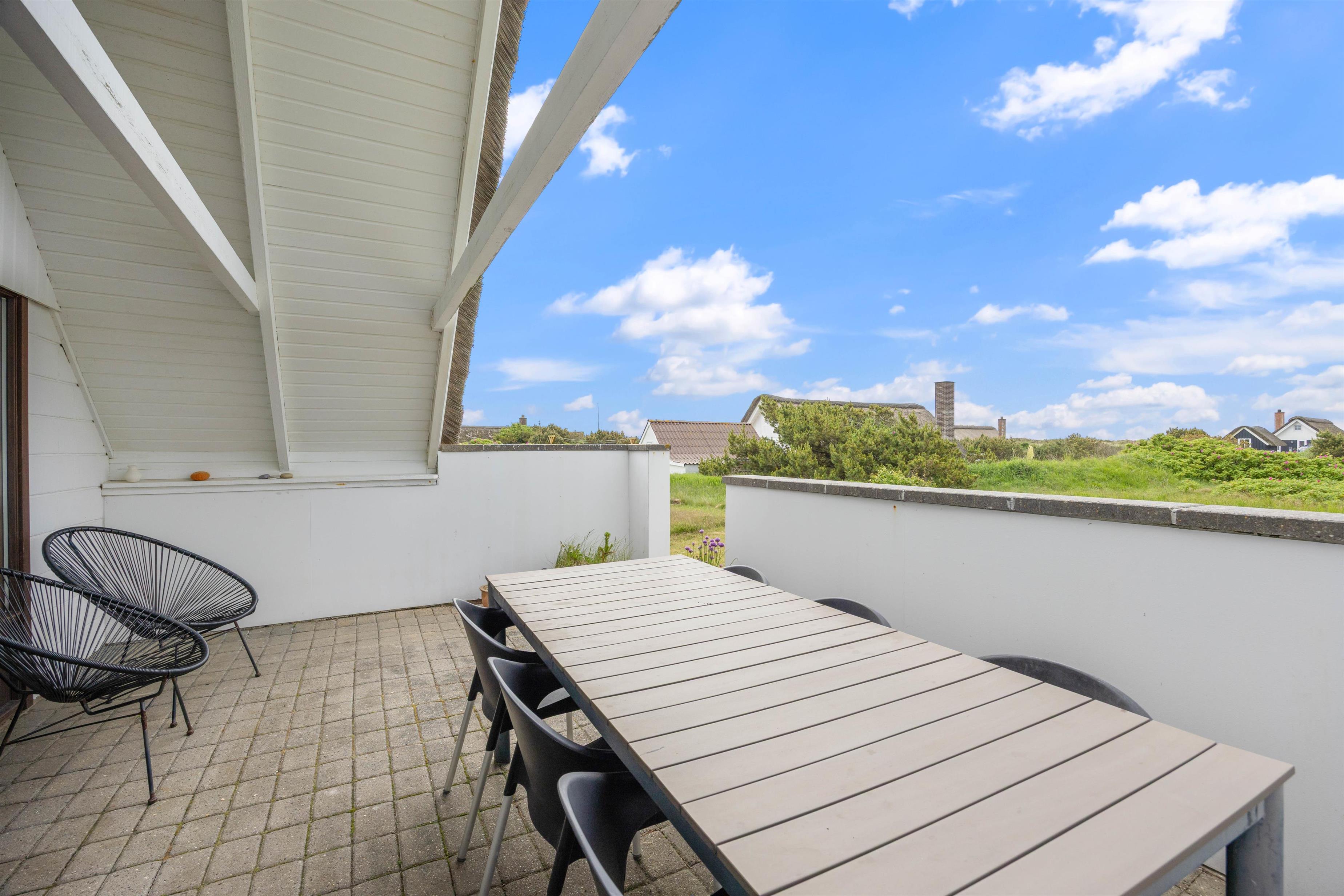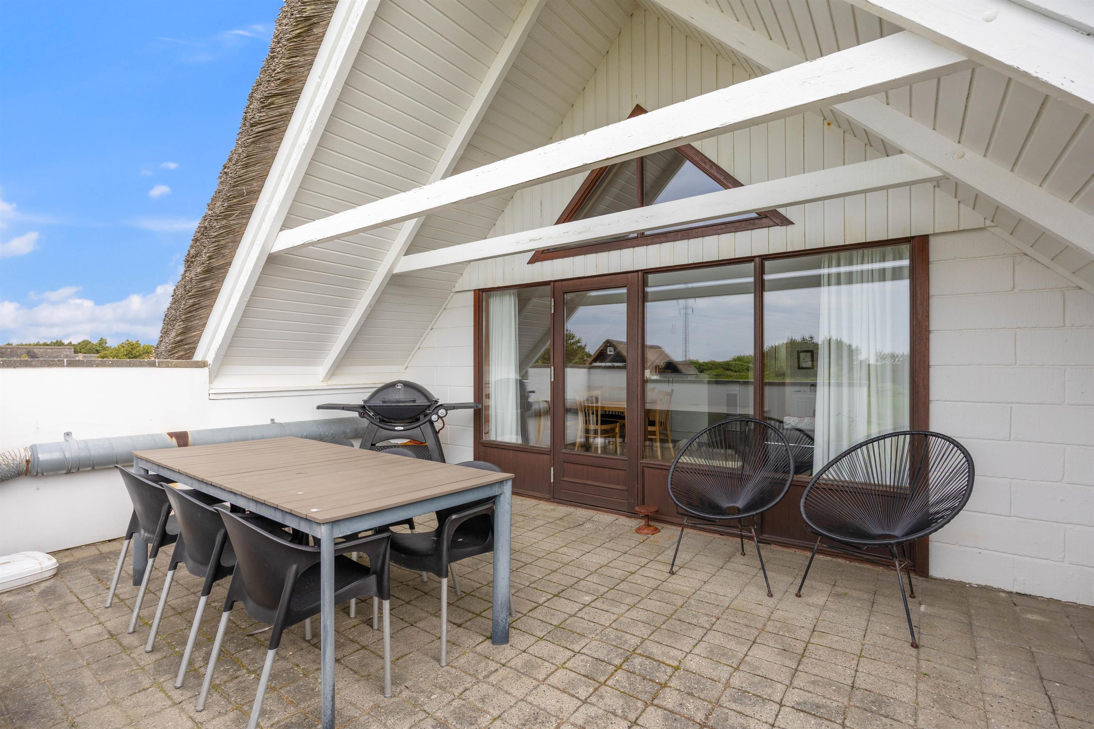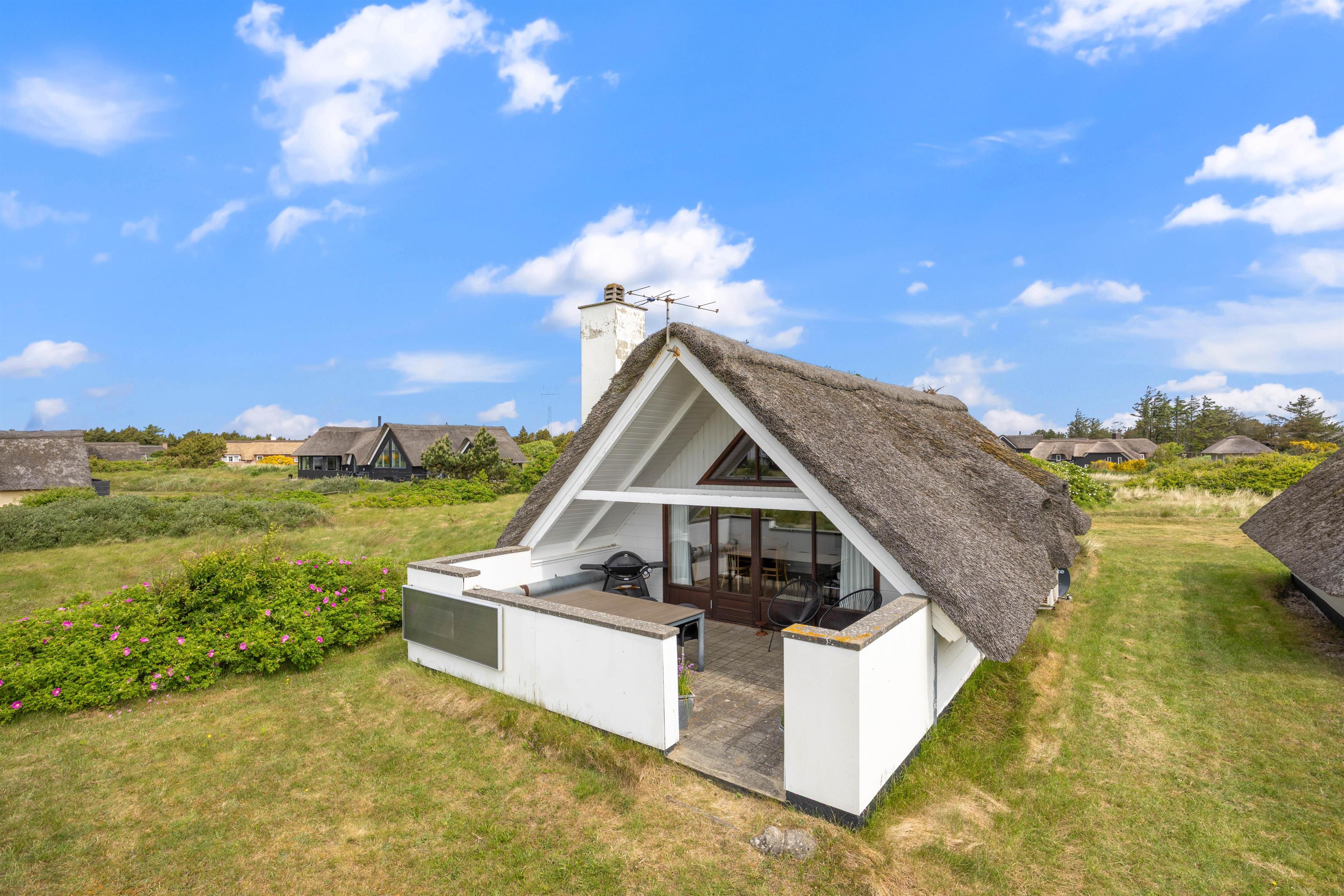 Når vejret byder op til det, kan I sætte jer ud på en af sommerhusets terrasser og nyde solen. Den ene terrasse er afskærmet og delvist overdækket, som giver jer mulighed for at slappe af i skyggen. På den nord-vestlige side af huset finder I en skøn træterrasse, hvor I kan nyde aftensolen. Havemøblerne gør det nemt at sætte sig godt til rette med en god bog i hånden, og om aften kan I finde grillen frem og rykke aftensmaden udendørs.