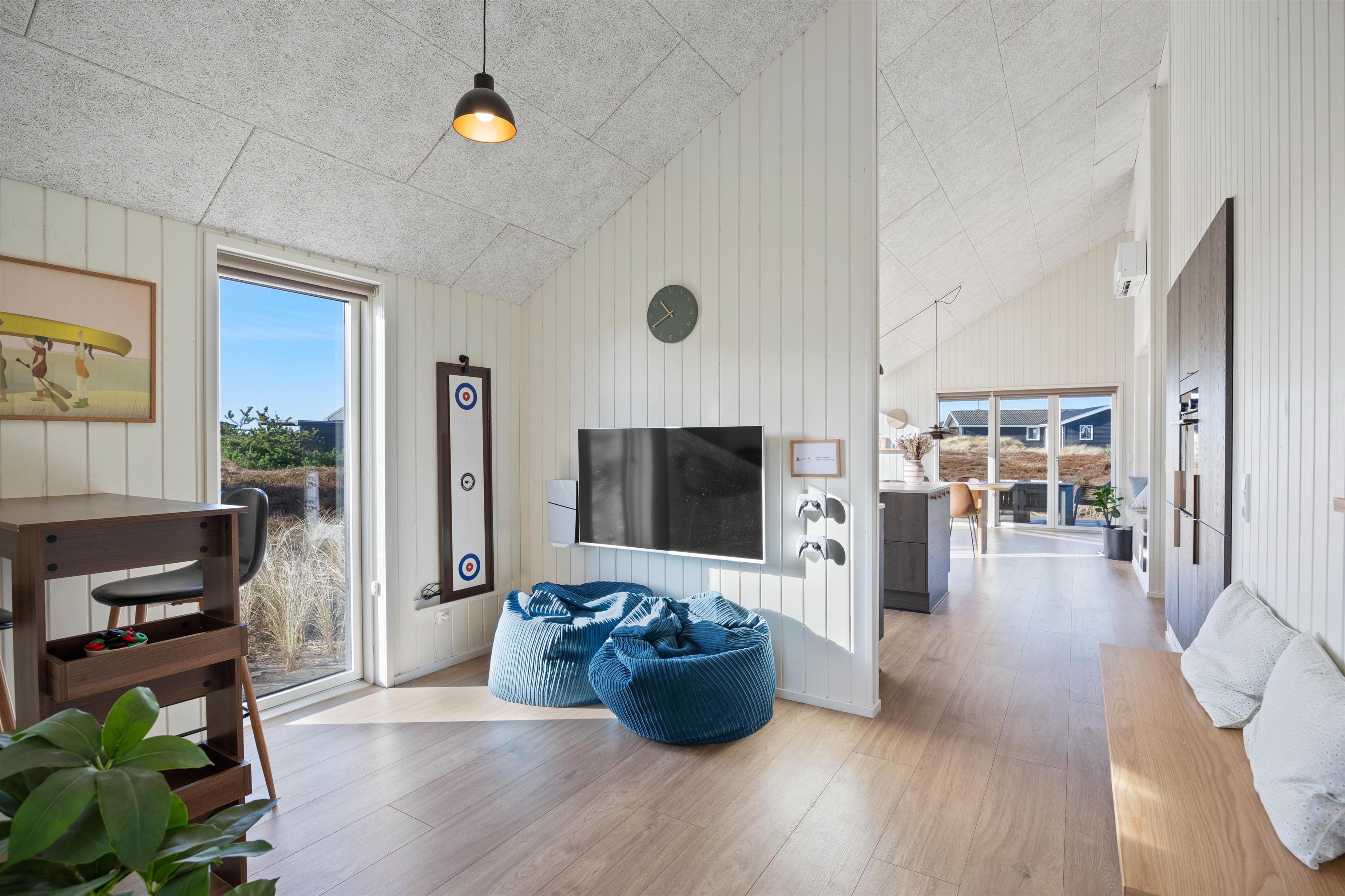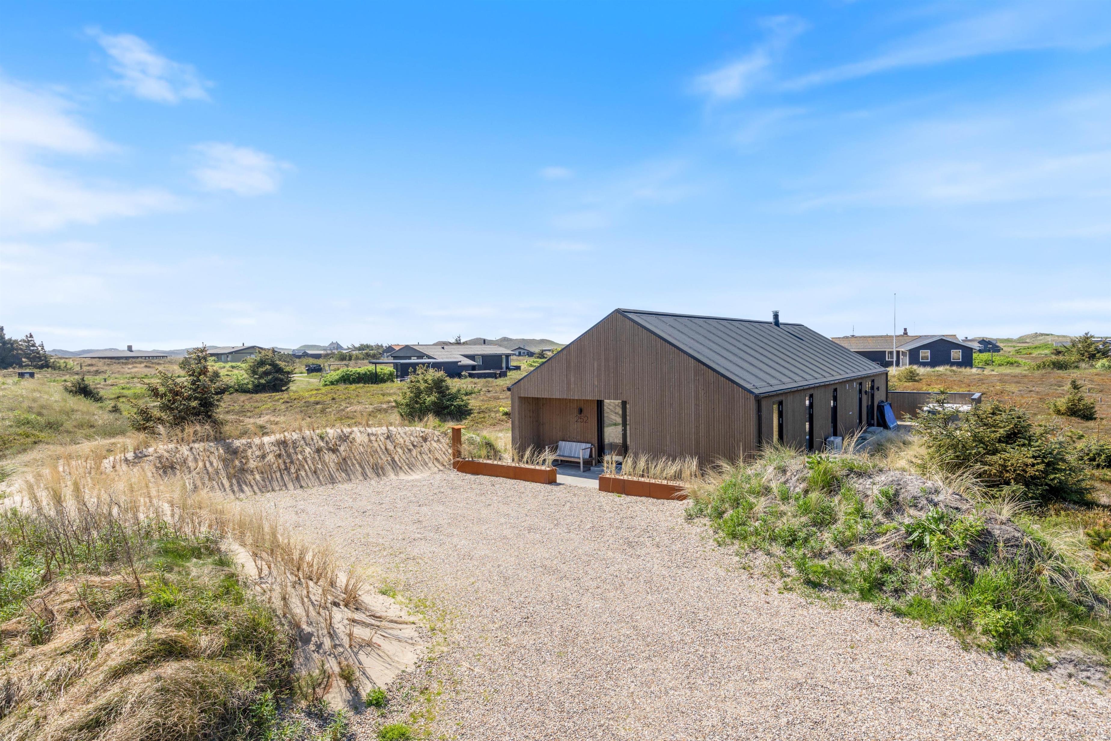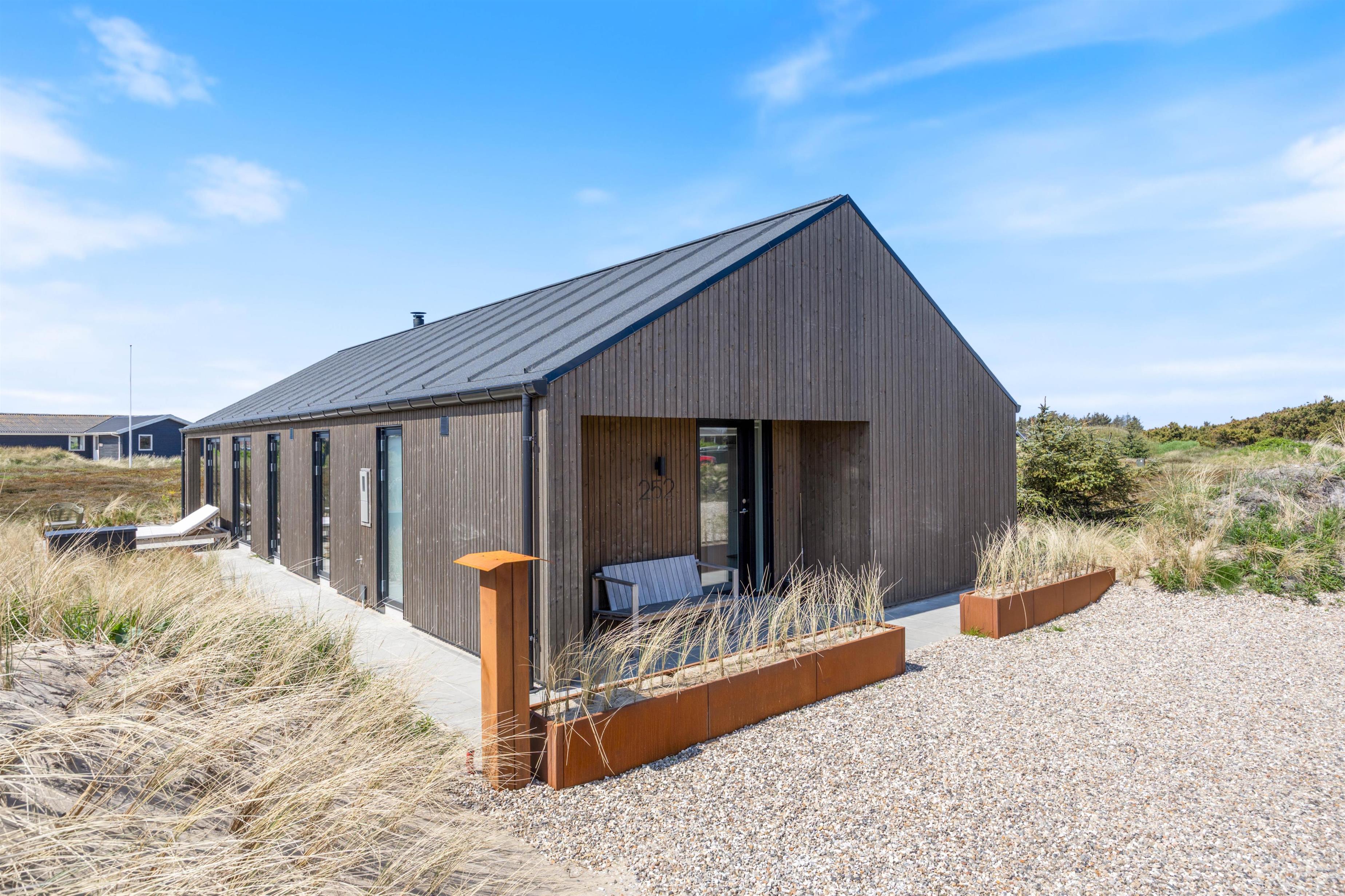 Dette moderne sommerhus er færdigbygget i 2023, og i sommerhuset kan der bo 6 personer. Feriehuset byder på en moderne og lys indretning, og på terrassen finder I både en udespa samt udebruser. Fra sommerhuset er der heller ikke langt til det brusende Vesterhav, så I nemt kan tage en frisk dukkert og skynde jer tilbage til sommerhuset, skylle saltvandet af i udebruseren og derefter hoppe ind i varmen i feriehusets sauna.