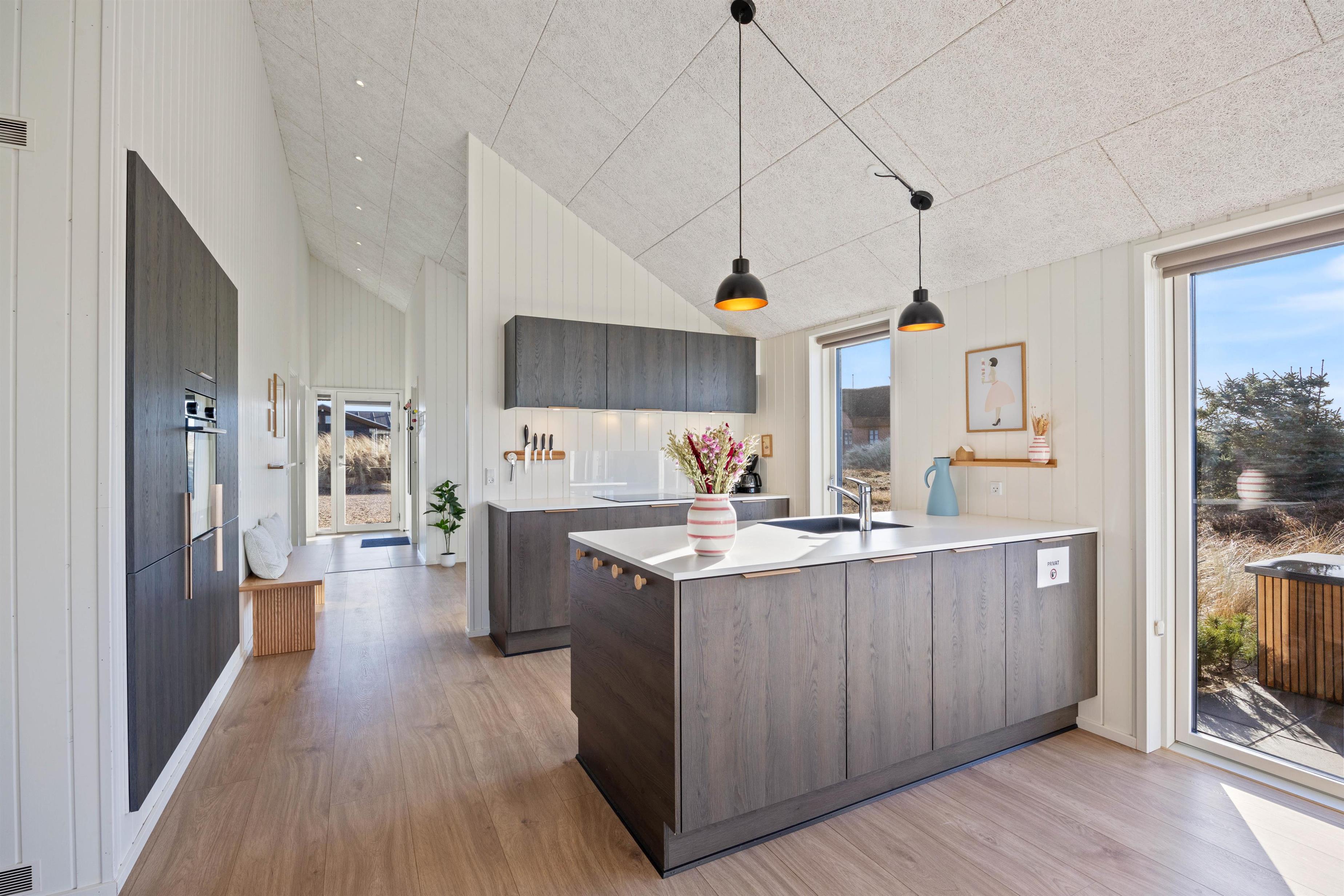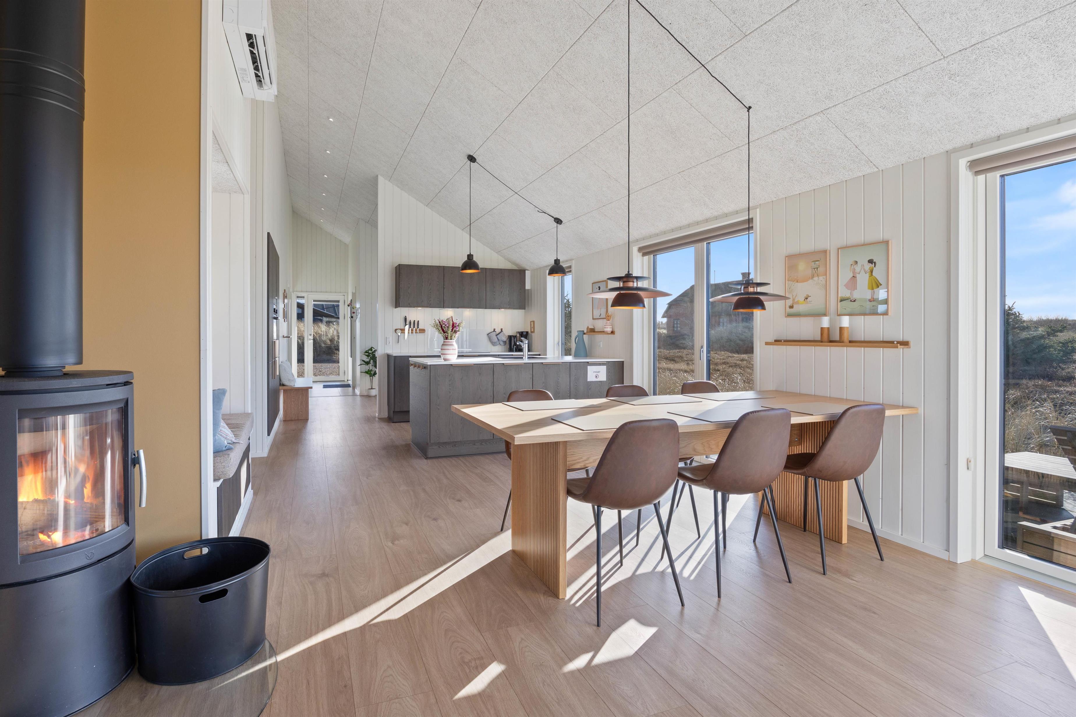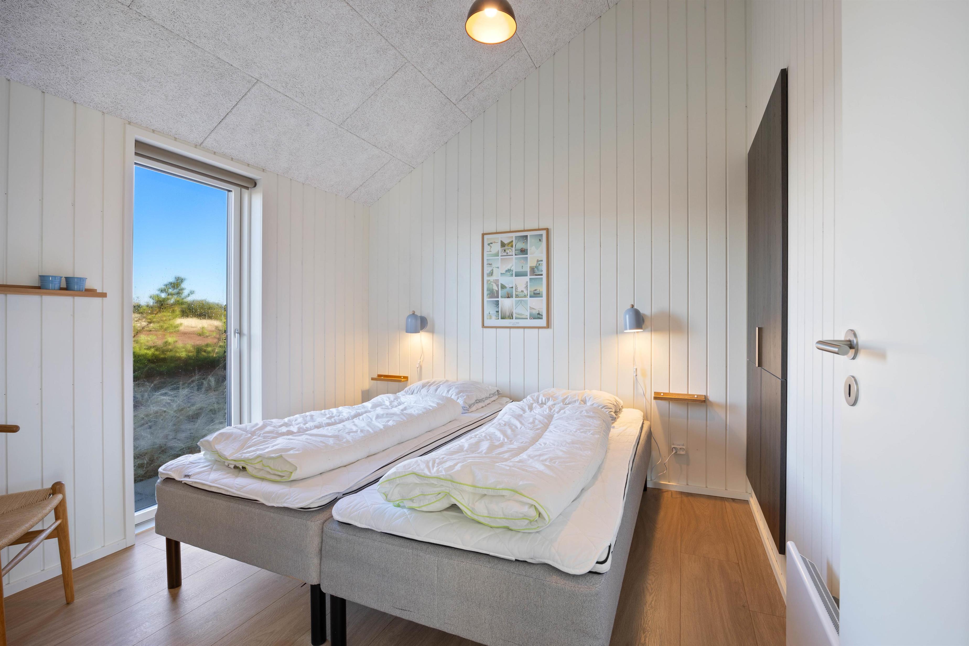 Dette moderne sommerhus er færdigbygget i 2023, og i sommerhuset kan der bo 6 personer. Feriehuset byder på en moderne og lys indretning, og på terrassen finder I både en udespa samt udebruser. Fra sommerhuset er der heller ikke langt til det brusende Vesterhav, så I nemt kan tage en frisk dukkert og skynde jer tilbage til sommerhuset, skylle saltvandet af i udebruseren og derefter hoppe ind i varmen i feriehusets sauna.