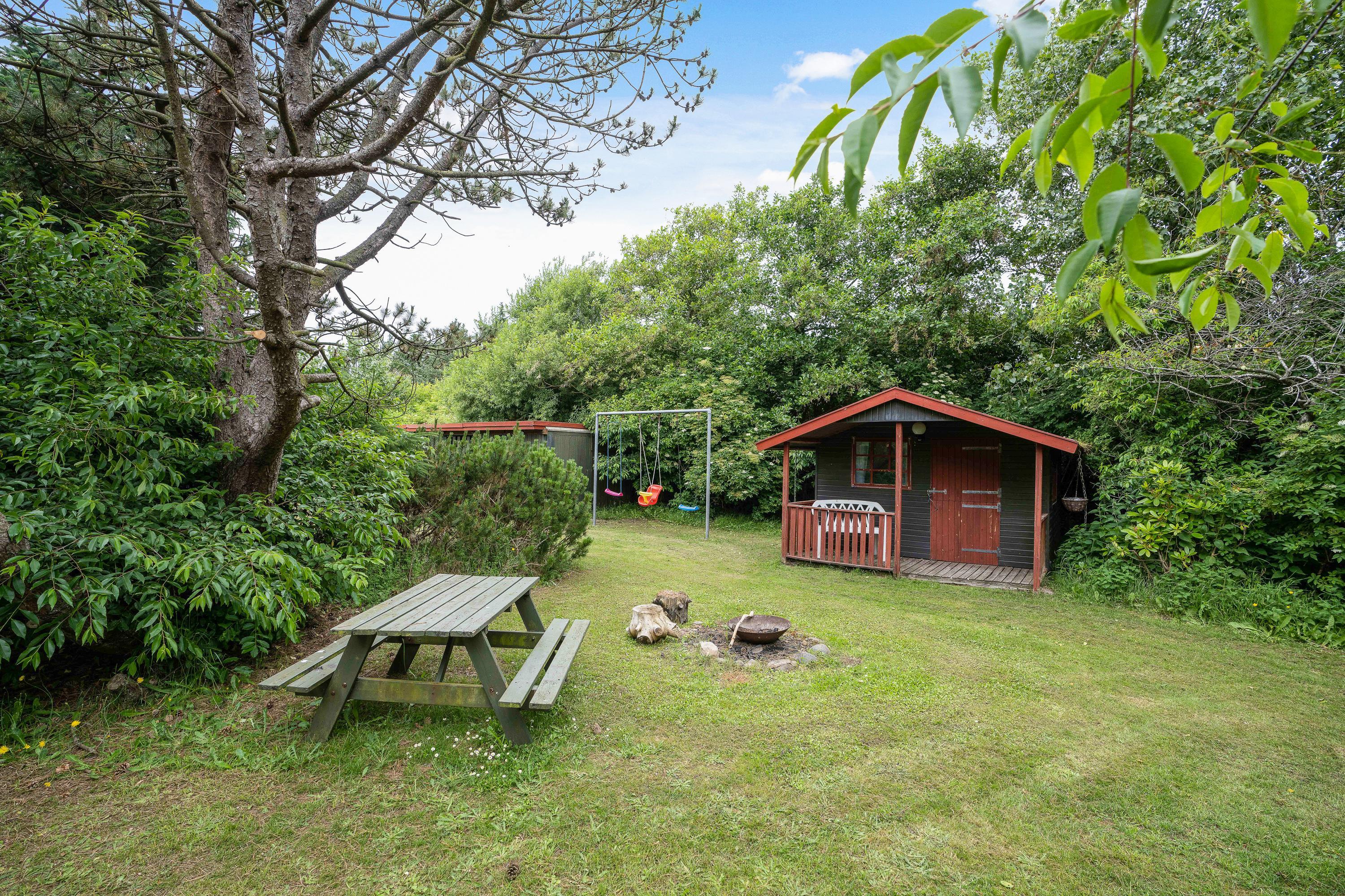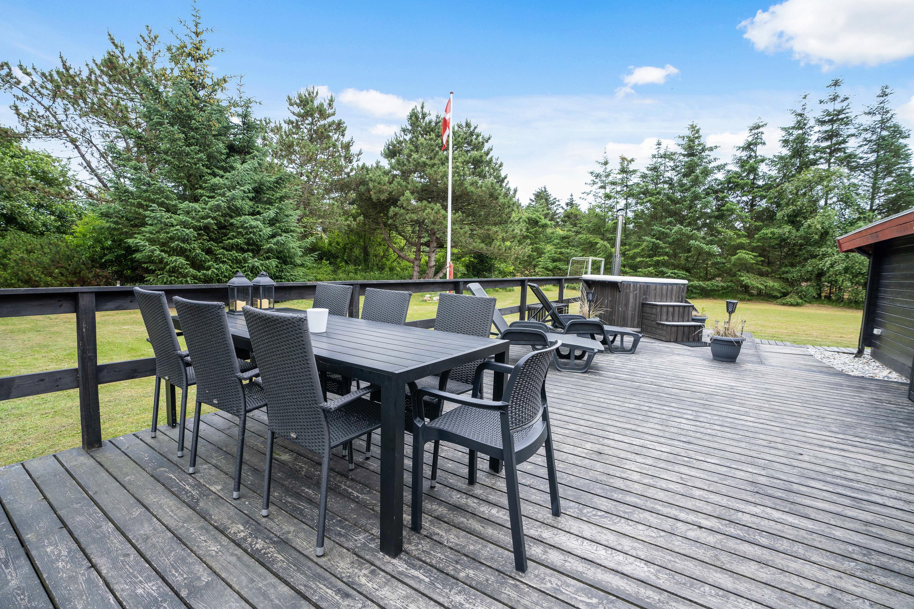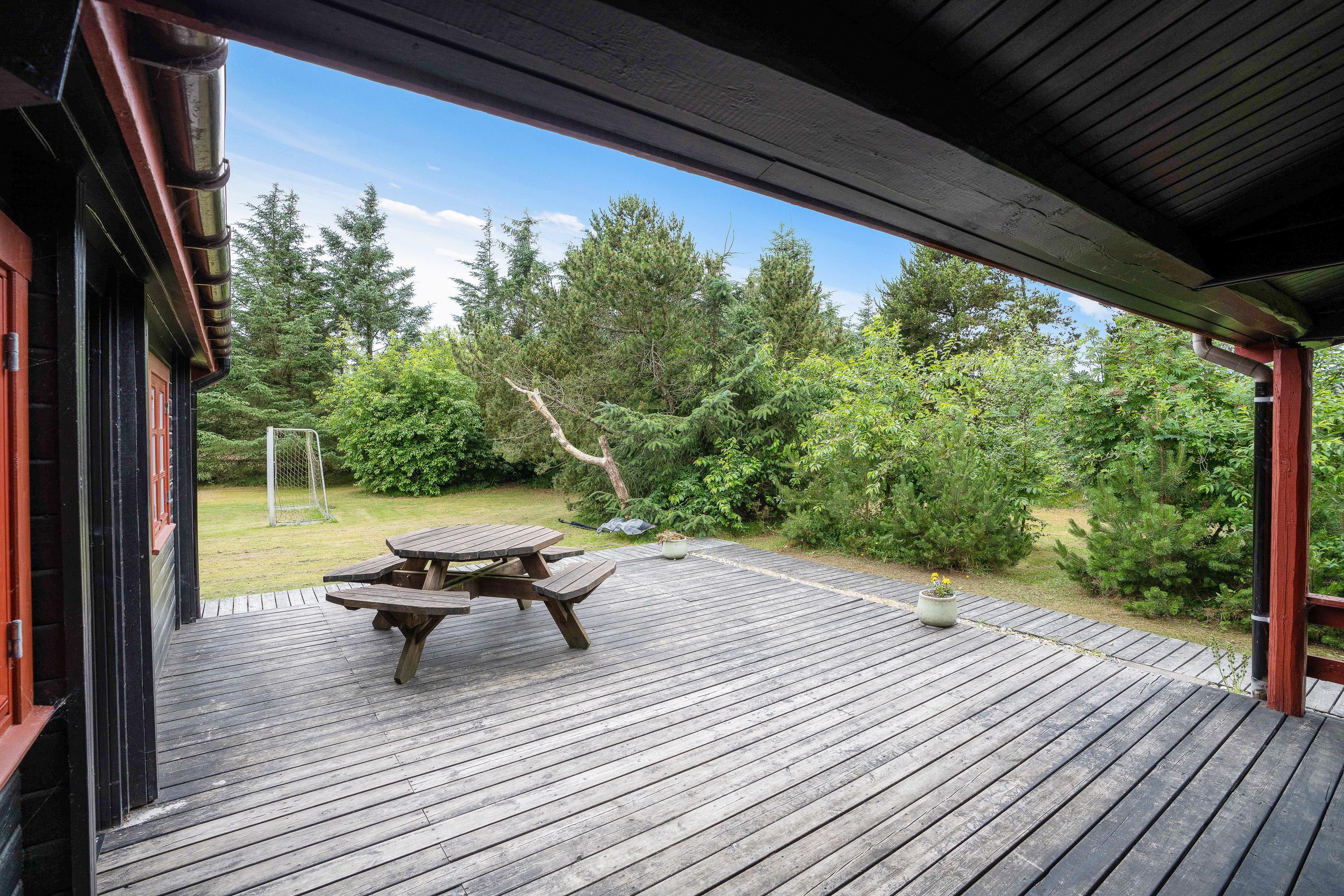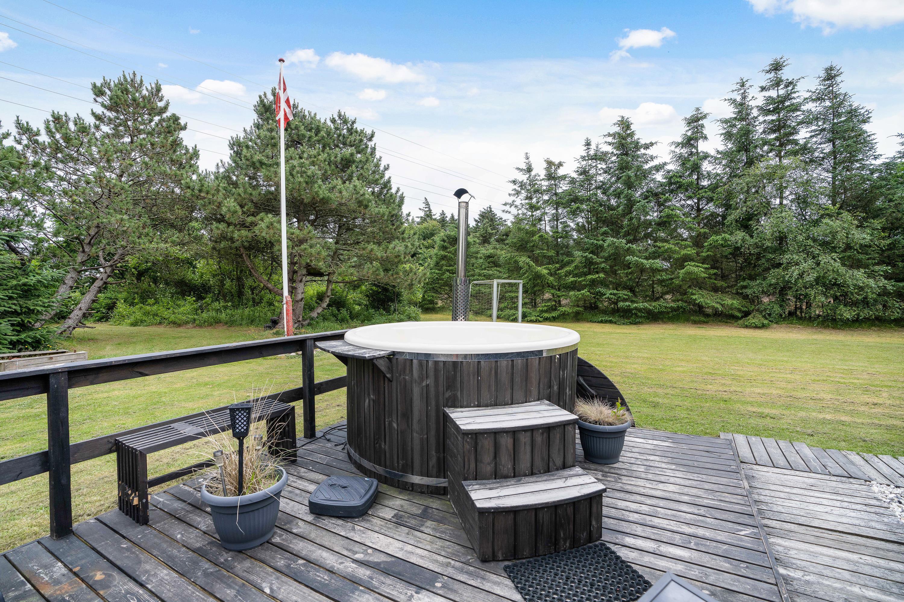 De voksne er bestemt ikke blevet glemt, heller ikke udenfor. På terrassen af sommerhuset er der et skønt vildmarksbad, som sætter prikken over i'et for afslapningen på jeres ferie.