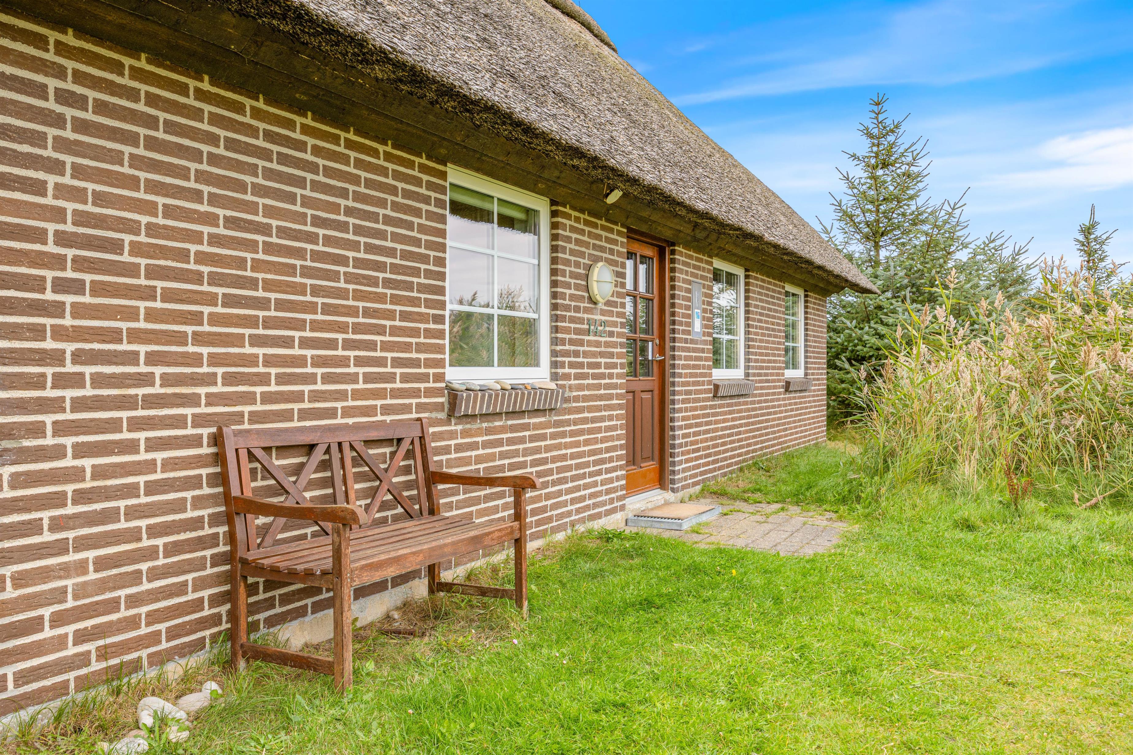 Feriehuset er beliggende på en flot og lyngklædt naturgrund, kun afbrudt af en lukket terrasse. Hele området er charmerende, og ikke langt mod vest ændrer landskabet sig til et kuperet klitområde. Havet kan tydeligt høres fra terrassen.