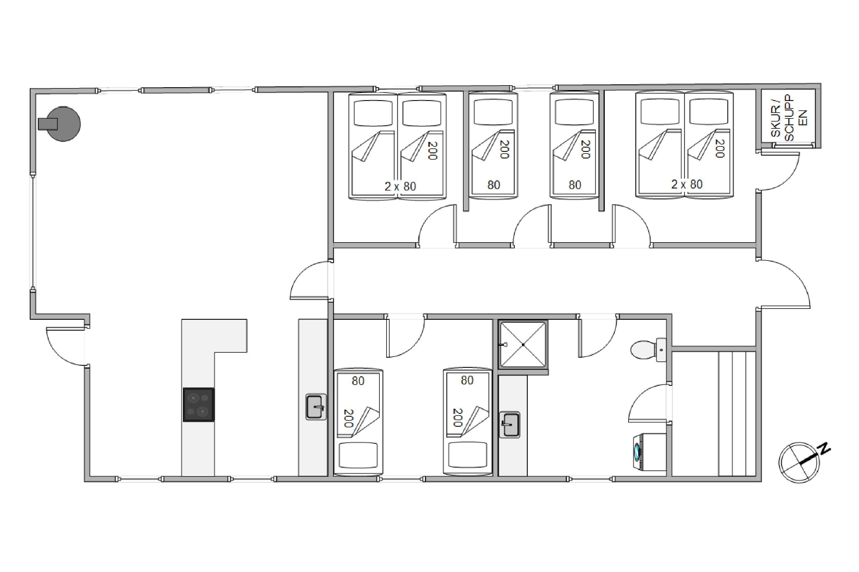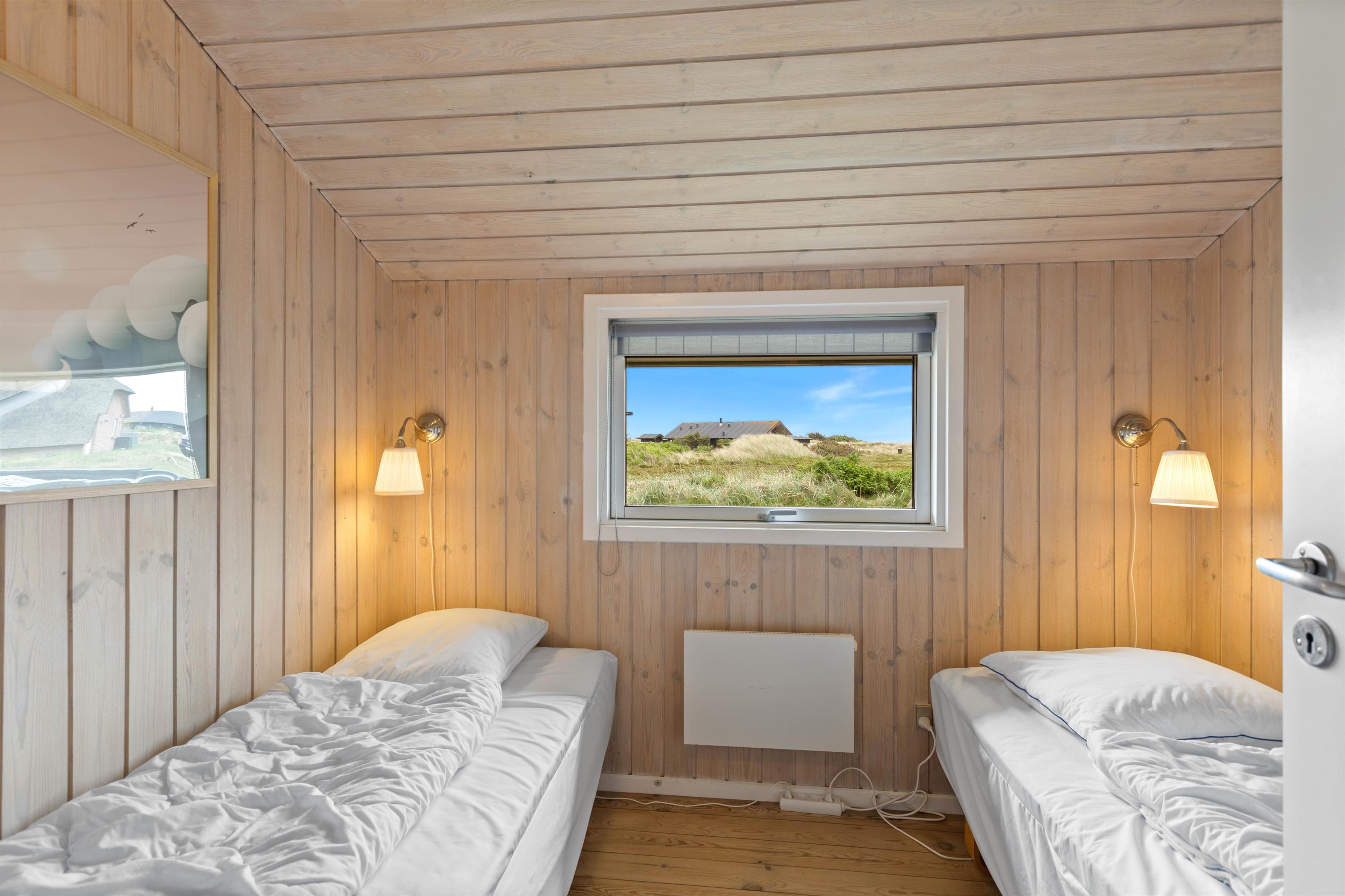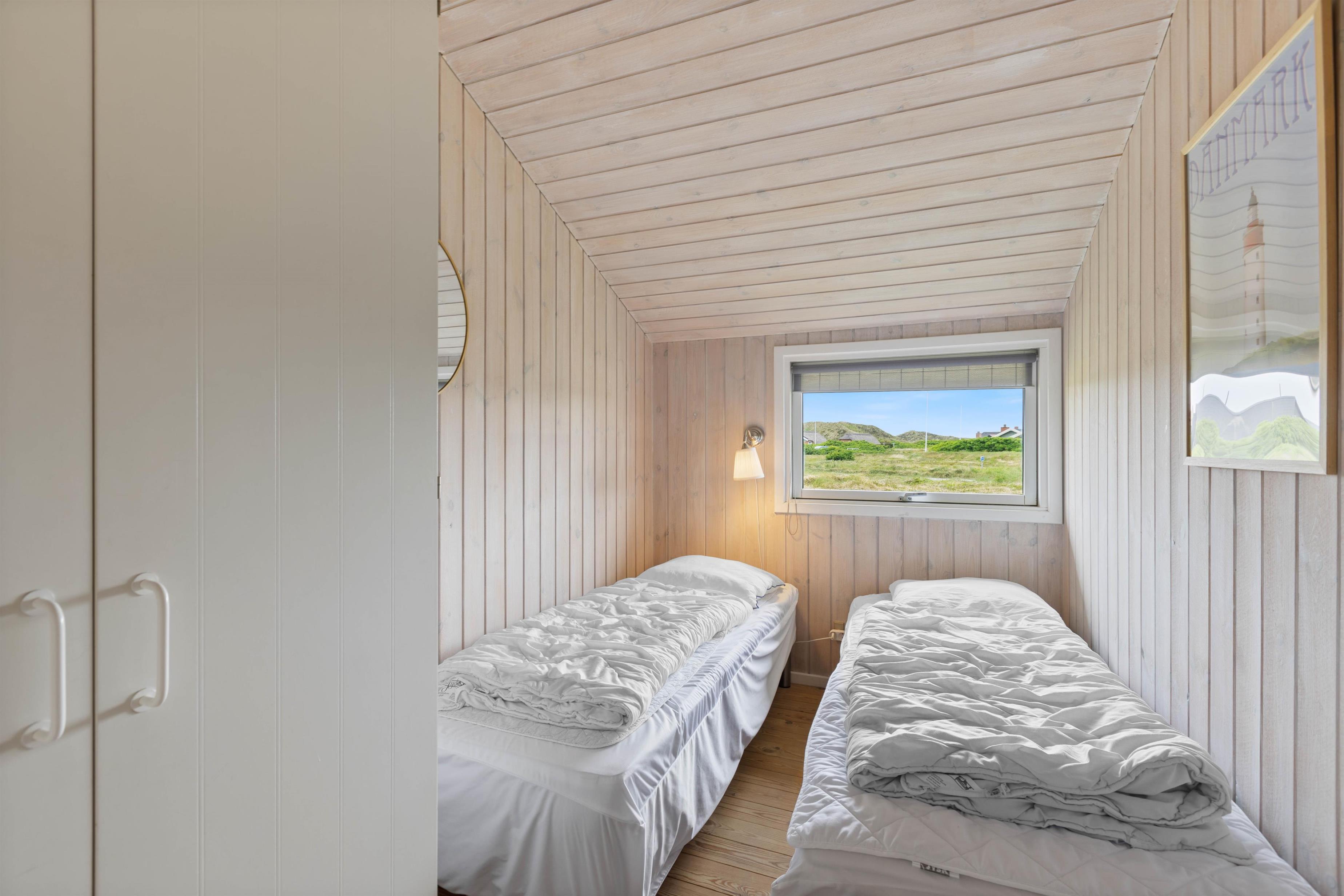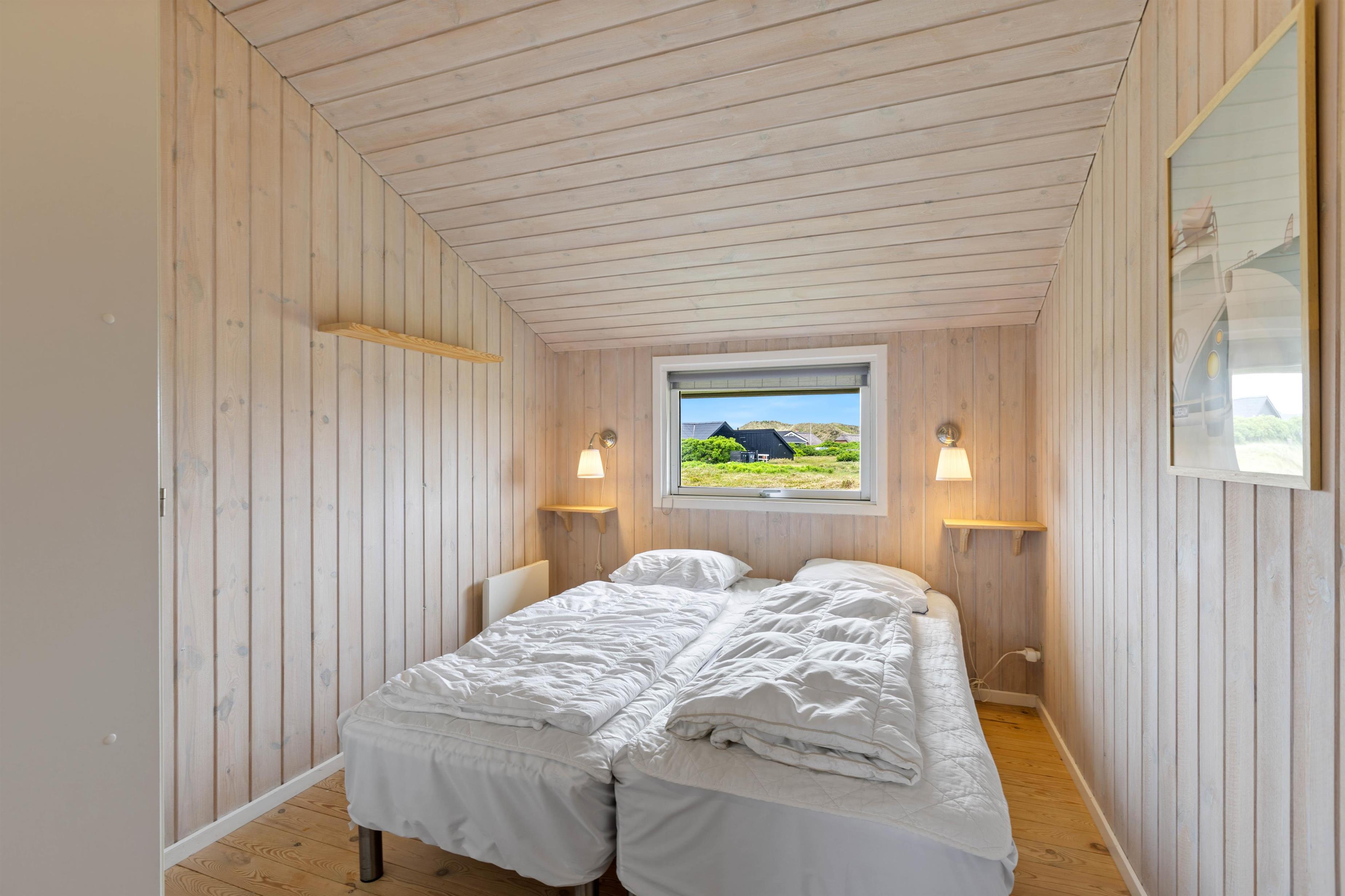 Dette 4-stjernede sommerhus på Fladsbjergvej 55 fremstår lyst og åbent og er beklædt med lyse træpaneler, der går op i kip, og som skaber ægte sommerhusstemning. Sommerhuset har 4 soverum, heraf 2 med dobbeltsenge. Det integrerede køkken er veludstyret med bl.a. opvaskemaskine, mikroovn og keramisk kogeplade. I den hyggelige stue kan I nyde udsigten ud over klitlandskabet fra de store vinduespartier, som tillader en masse sol og lys. Her vil I uden tvivl komme til at tilbringe gode feriestunder sammen.