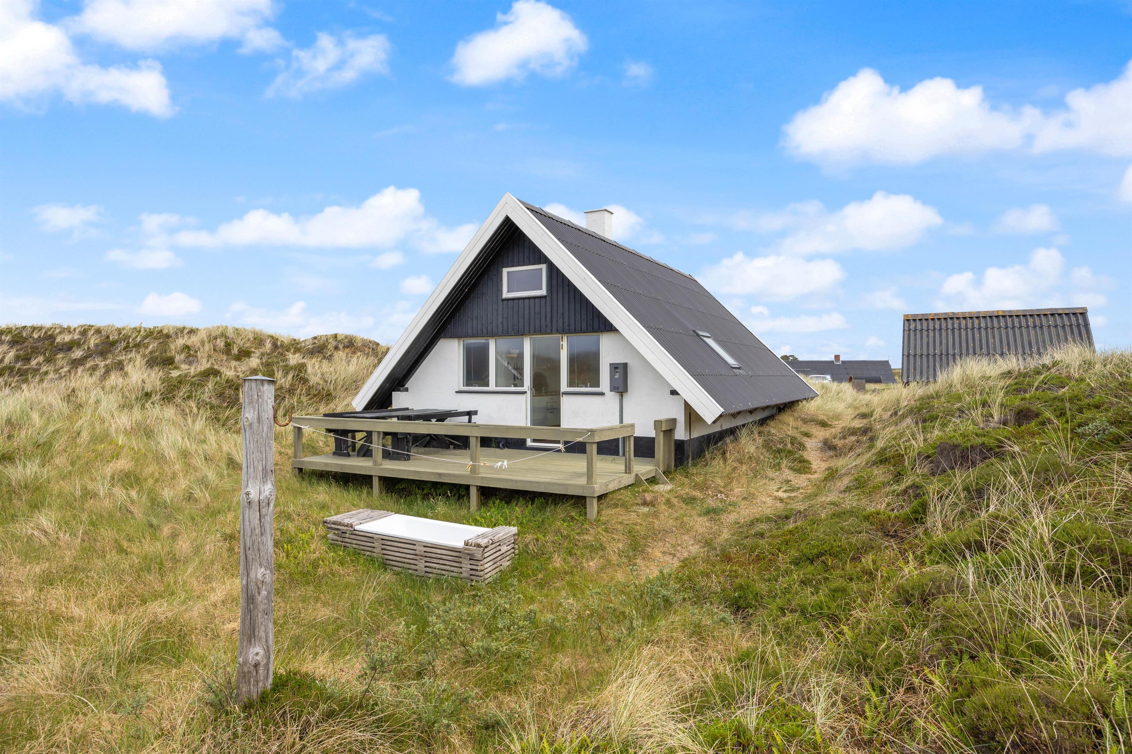 Hvis I elsker den danske natur og især sætter pris på naturen og vejret ved Vestkysten, er dette sommerhus’ udeareal lige noget for jer. Her er der nemlig en skøn afskærmet og overdækket terrasse, som I kan nyde det danske vejr på. Derudover ligger sommerhuset på en skøn naturgrund, som både I, jeres børn og jeres hunde kan få gavn af.