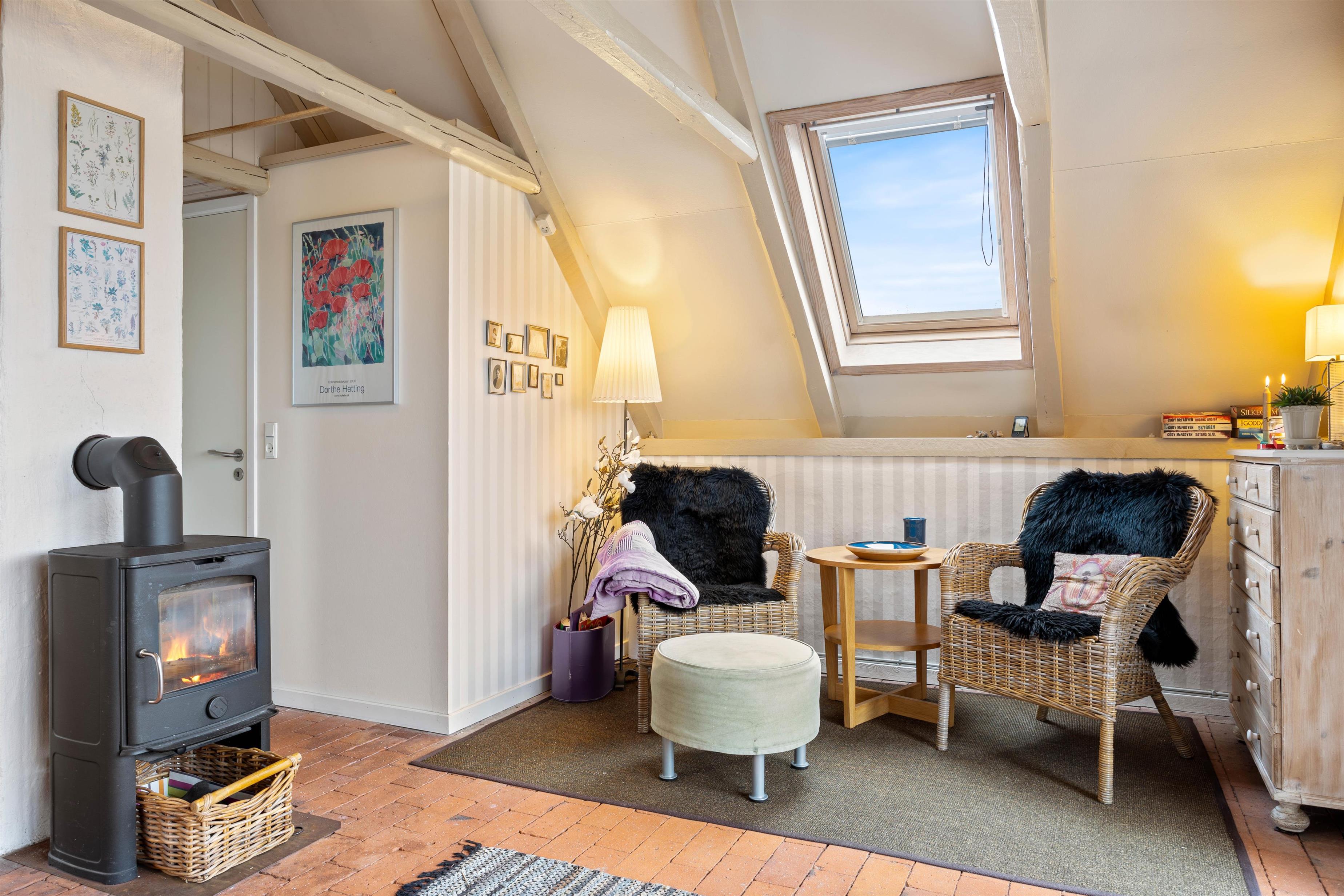 Til de lidt køligere perioder kan I tænde for den energibesparende varmepumpe eller nyde den skønne brændeovn, som jo er et typisk sommerhustræk. Så kan I også være sikre på, at de 2 soverum er opvarmet, når det er tid til at lade op til næste dags oplevelser.