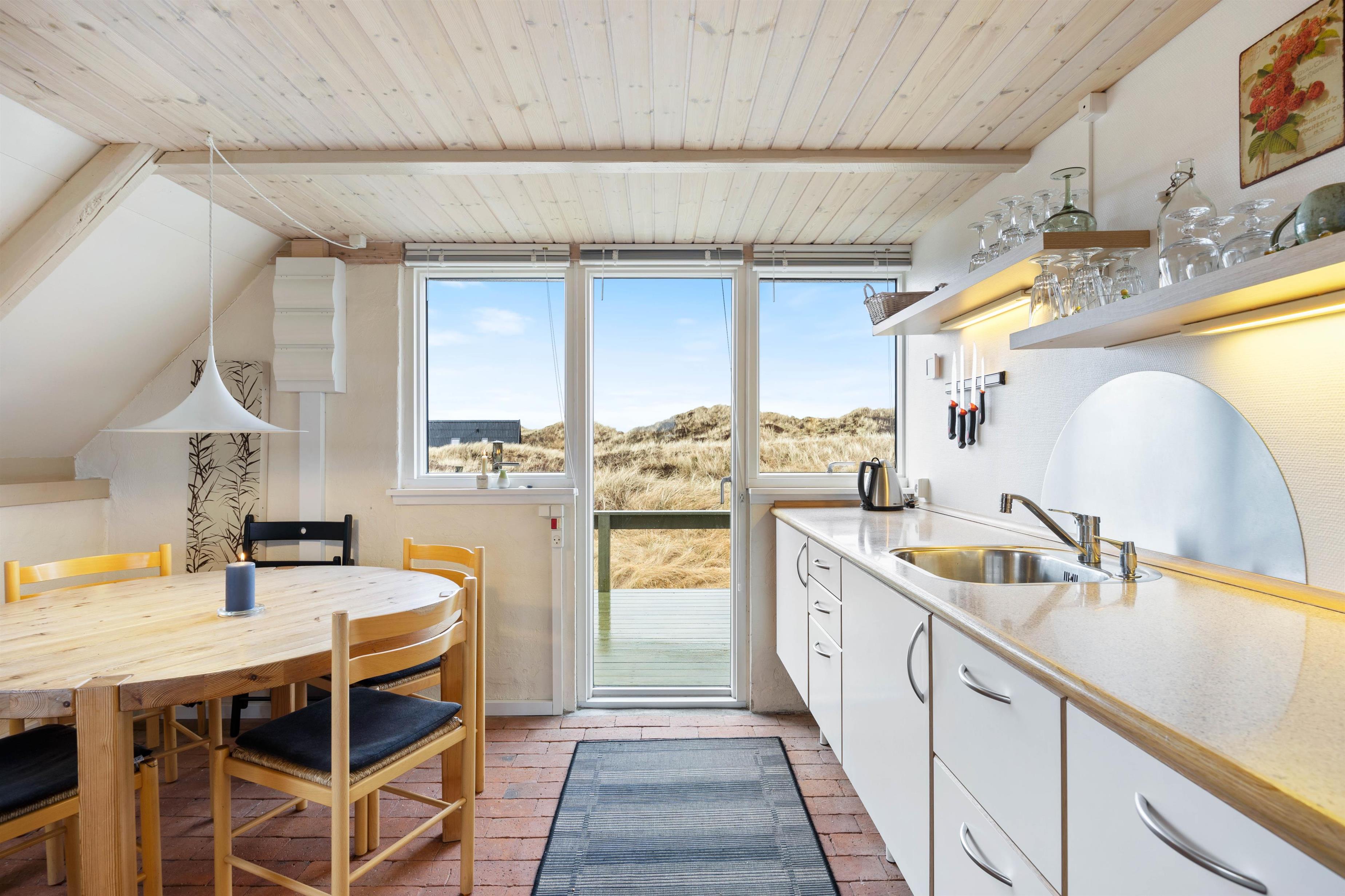 I køkkenet kan I forberede et lækkert måltid med hjælp fra jeres børn, så I kan gøre køkkentjansen til et hyggeligt ferieminde. Så mens nogle laver mad, kan de sidste personer hygge sig med at tage opvasken sammen i hånde, idet huset ikke har en opvaskemaskine. Sommerhuset har et køleskab med frostboks, så hvis I skulle være heldige at fange en fisk eller to kan disse opbevares heri.
