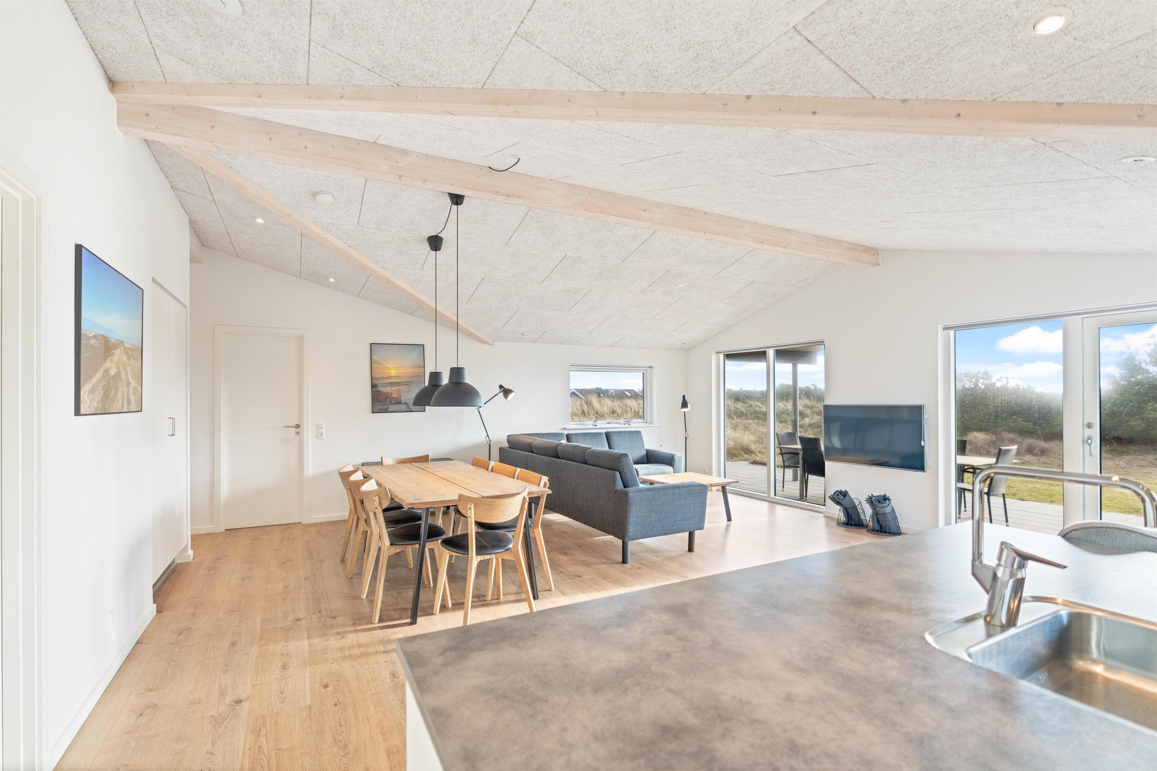 Husets hjerte er det åbne køkkenalrum, som er slået sammen med stuen. Her kan I samle hele familien til en skøn feriemiddag eller en hyggelig filmaften på sofaen. TV'et i stuen er til streaming, så her kan I streame lige, hvad I har lyst til. Brændeovnen sørger for, at I kan holde varmen hele året rundt, og tilfører en hyggelig ferieatmosfære med sine knitrende flammer. Derudover er der også mulighed for hygge i multirummet, hvor poolbordet blandt andet sørger for mange timers underholdning.