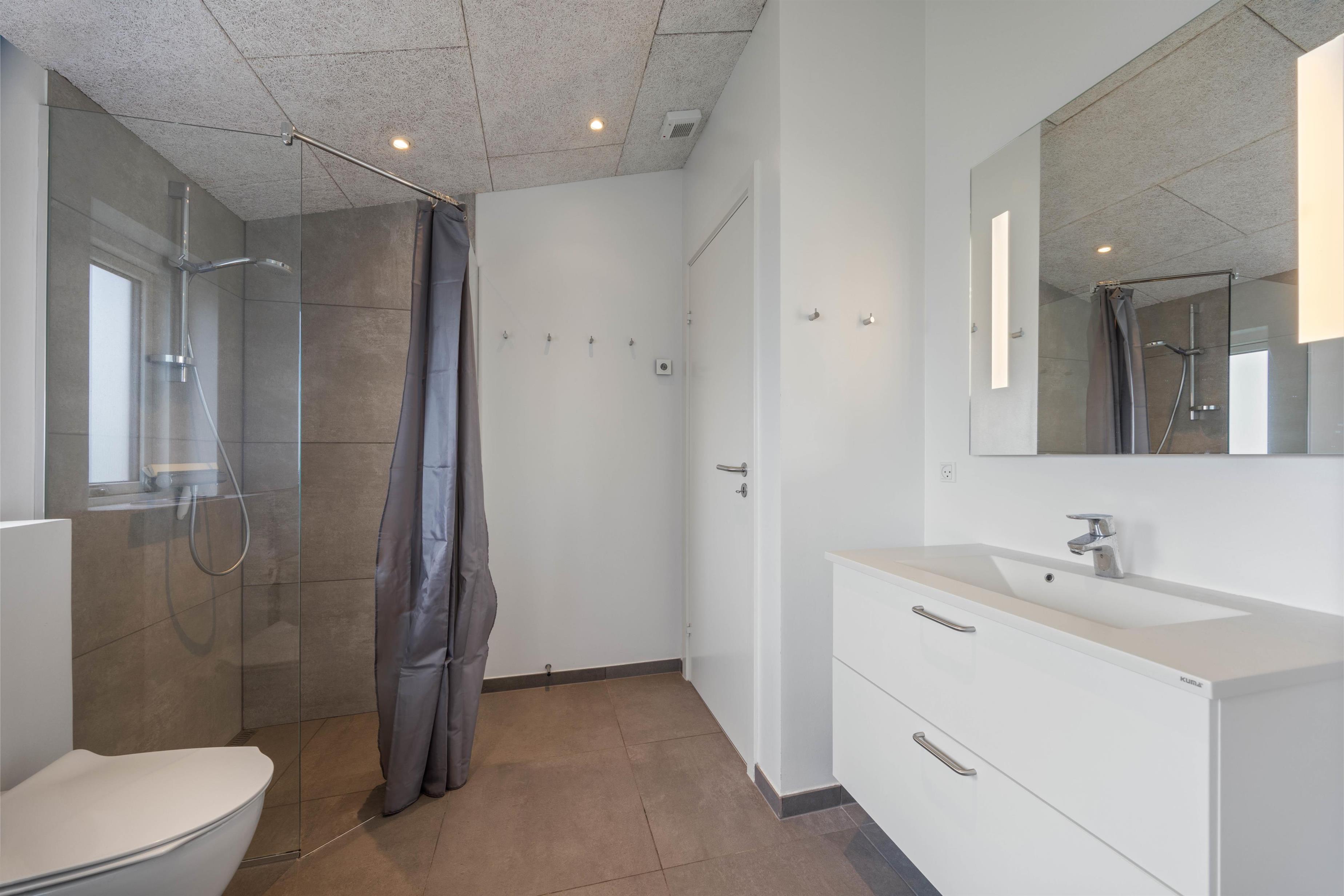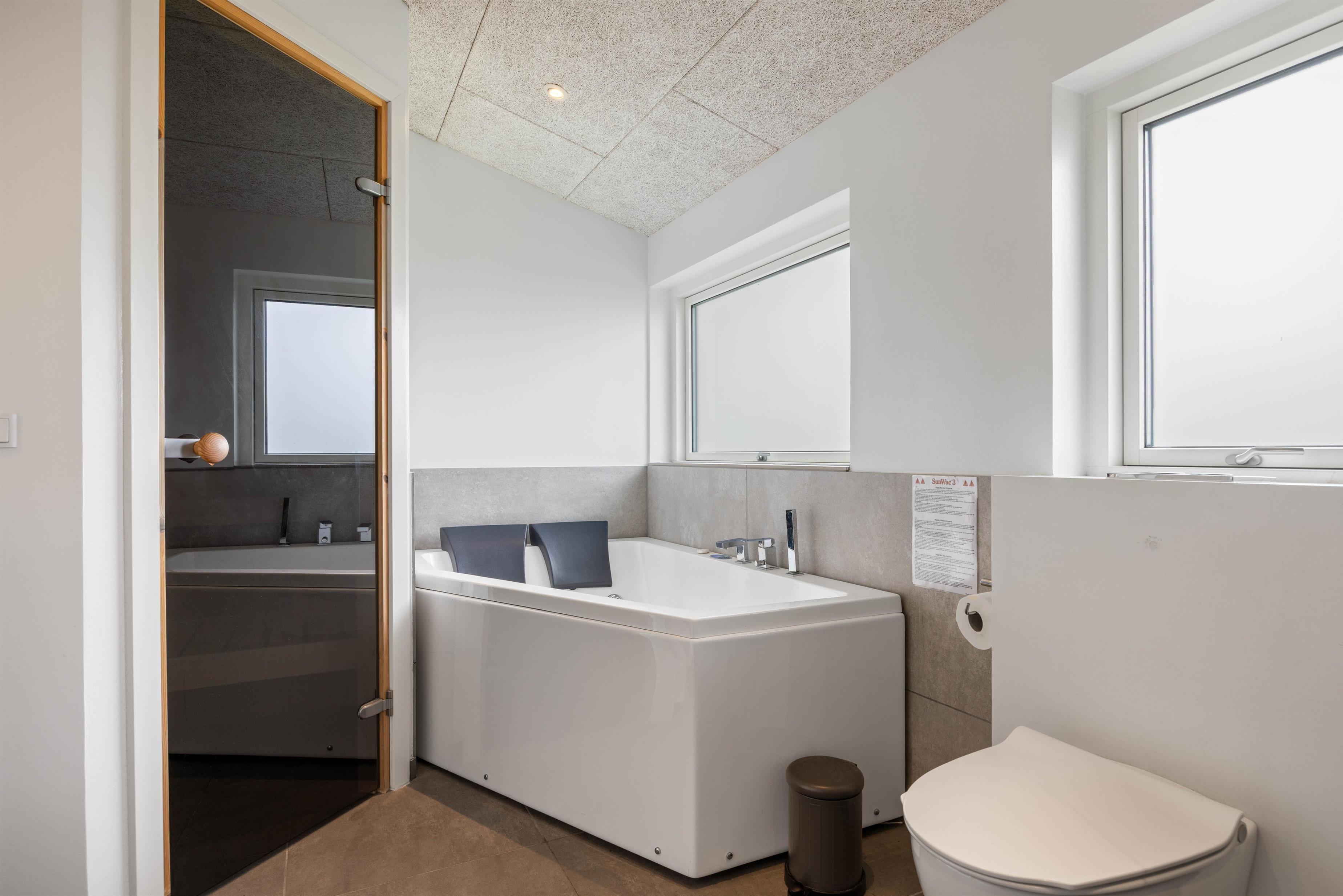 De 2 badeværelser er lige som resten af huset begge udstyret med gulvvarme, og i det største venter jer en ekstra wellnessoplevelse. Her er der både sauna og et stort spabad med plads til 2 personer, hvor både børnene kan få lov til at plaske rundt, og de voksne kan slappe af langt væk fra den travle hverdag.