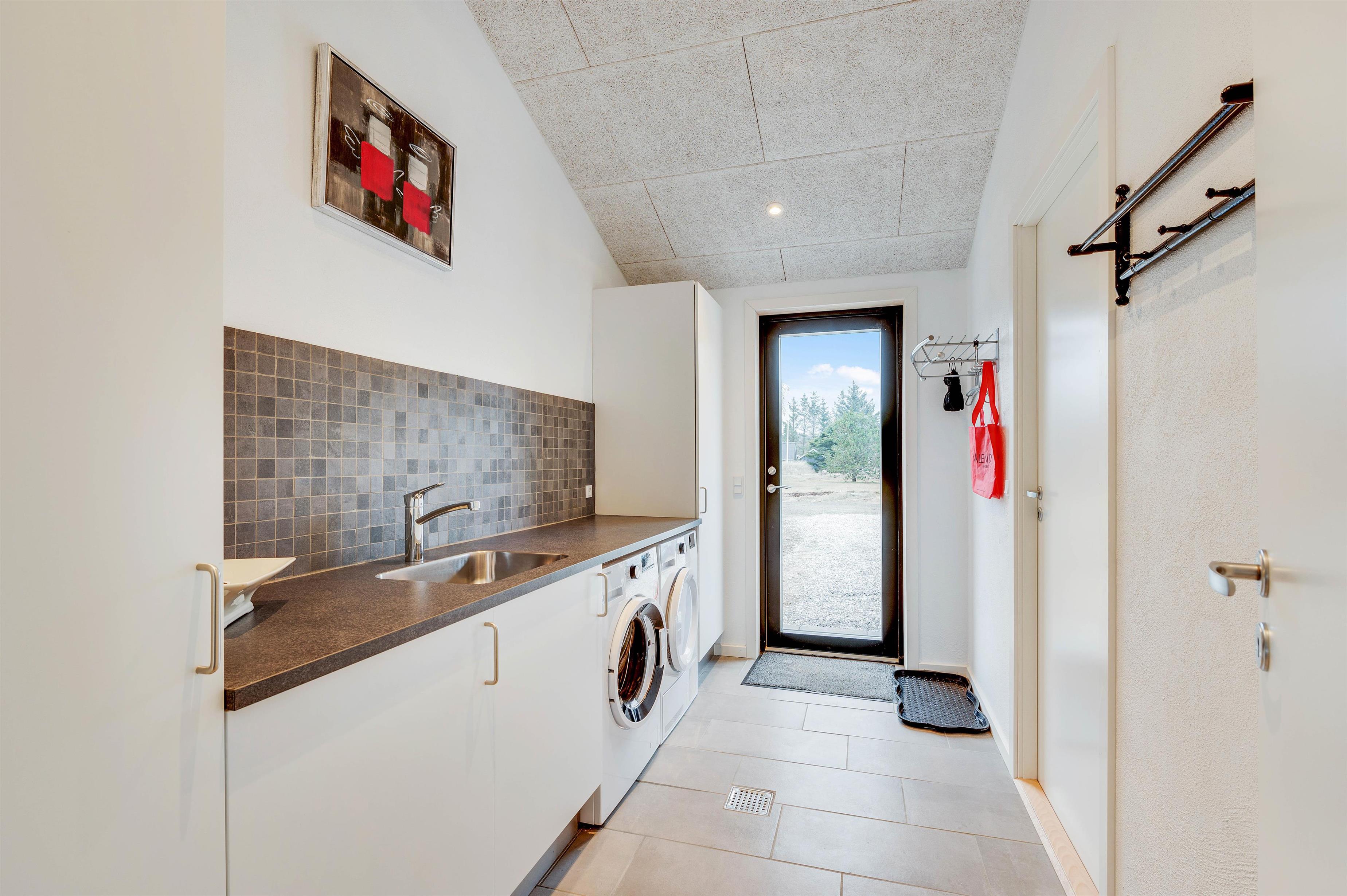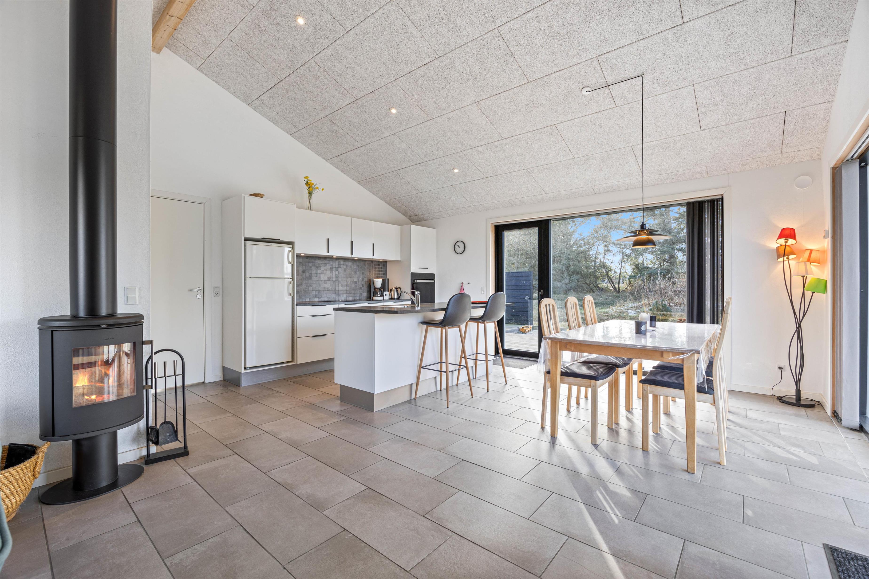 Som en ekstra bonus er ferieboligen indrettet med et aktivitetsrum med både bordfodbold, dartskive og masser af legesager til de yngste feriegæster. Sommerhusets 120 kvadratmeter er fordelt på entré med vaskemaskine og tørretumbler, 3 gode soveværelser, 2 badeværelser, stue og køkkenalrum. I både stuen og på badeværelserne er der gulvvarme. En brændeovn tilfører feriehuset et touch af klassisk sommerhusstil.