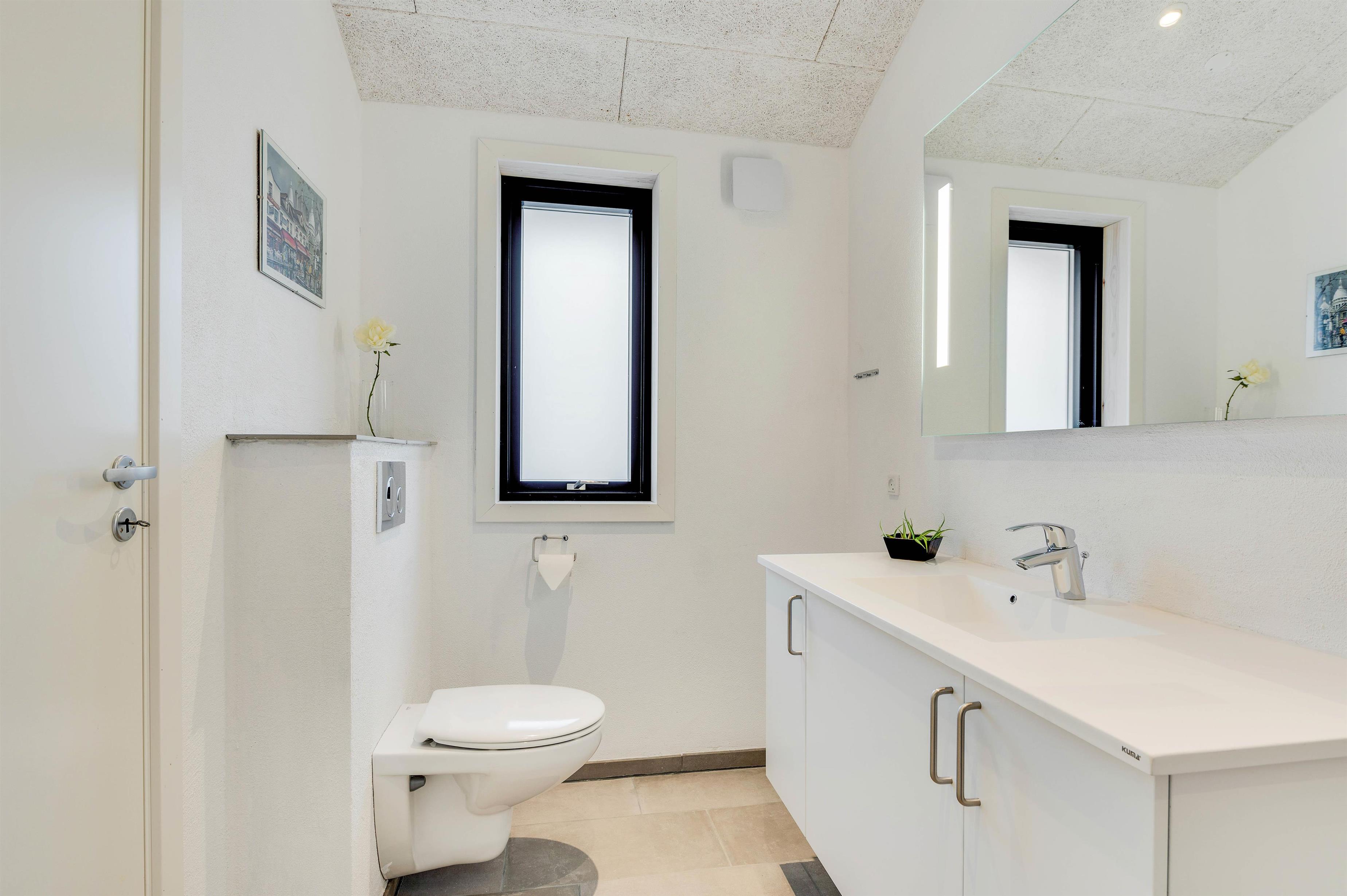 Der er flere udgange til den store, alsidige terrasse. Her finder alle 6 feriegæster – og det firbenede familiemedlem – hurtigt en plads i solen, og der er selvfølgelig sørget for godt med havemøbler og liggestole, så I kan nyde de varme solskinsdage i fulde drag. Der er altid ly og læ at finde til at nyde den friske luft, eftersom terrassen både har en afskærmet og overdækket del. Der er også mulighed for at få et forfriskende skyl under sommerhusets udendørs bruser, som er tilgængelig fra april til november.