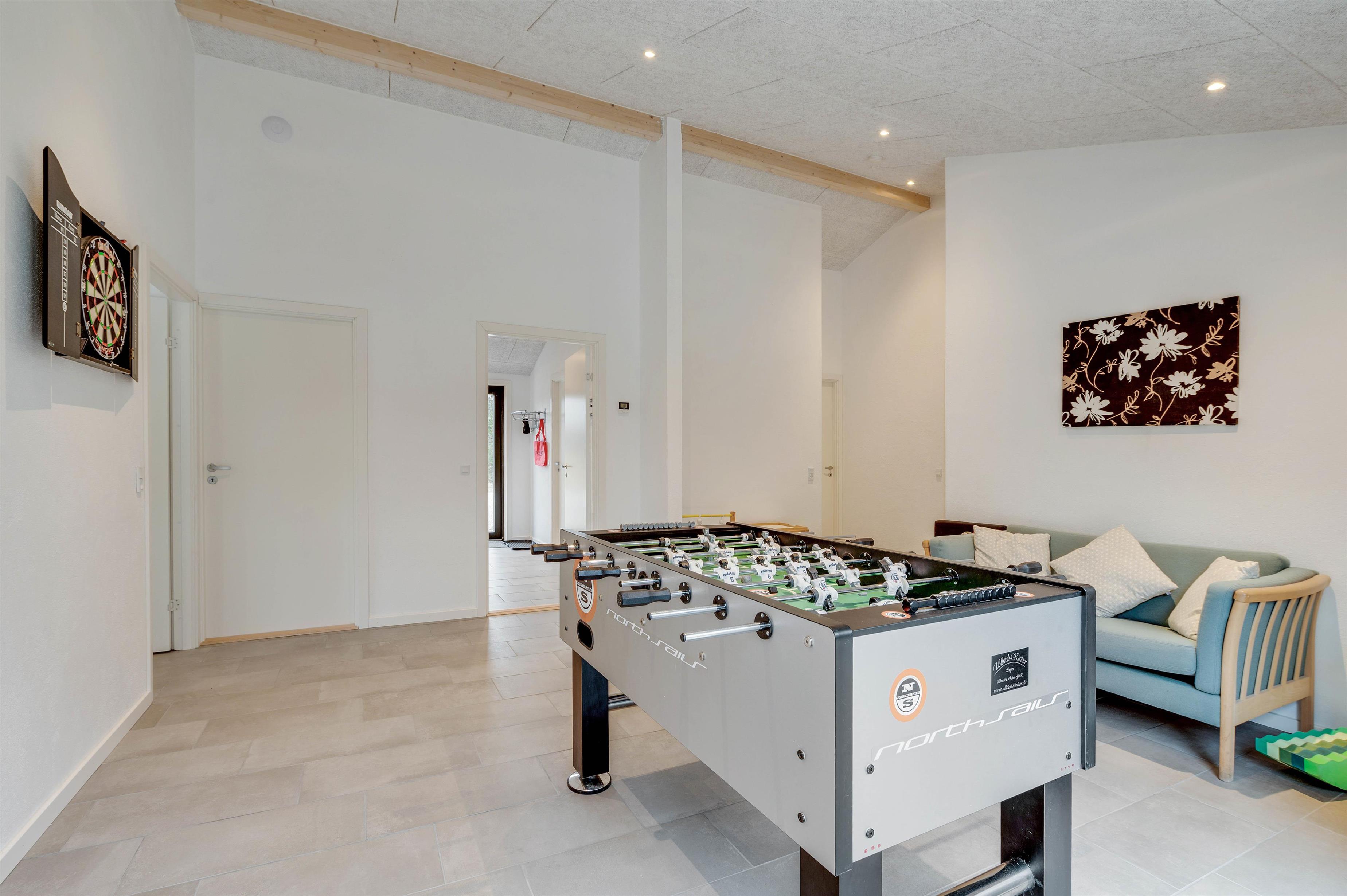 Flot og rummelig indretning med aktivitetsrum og brændeovn