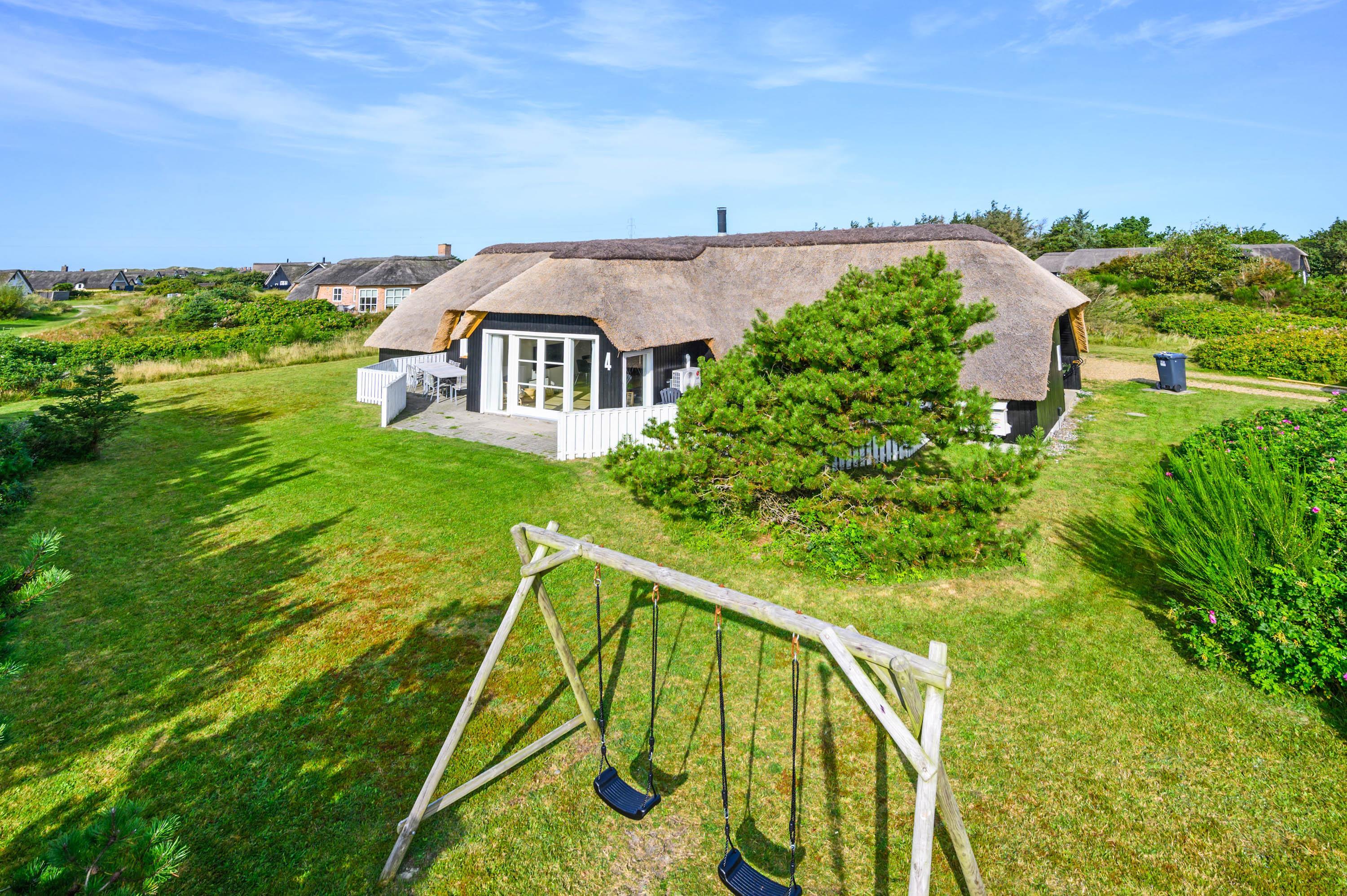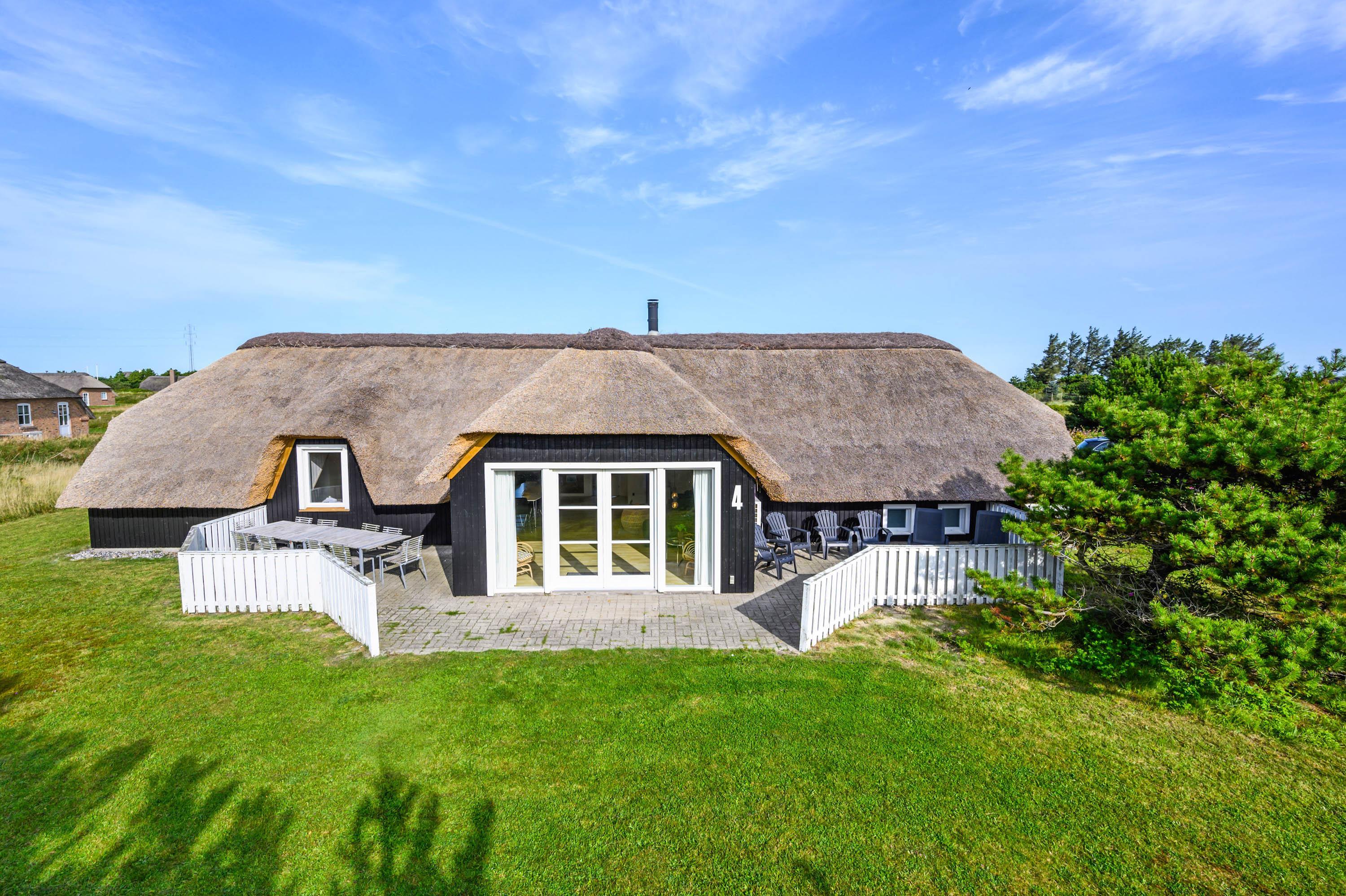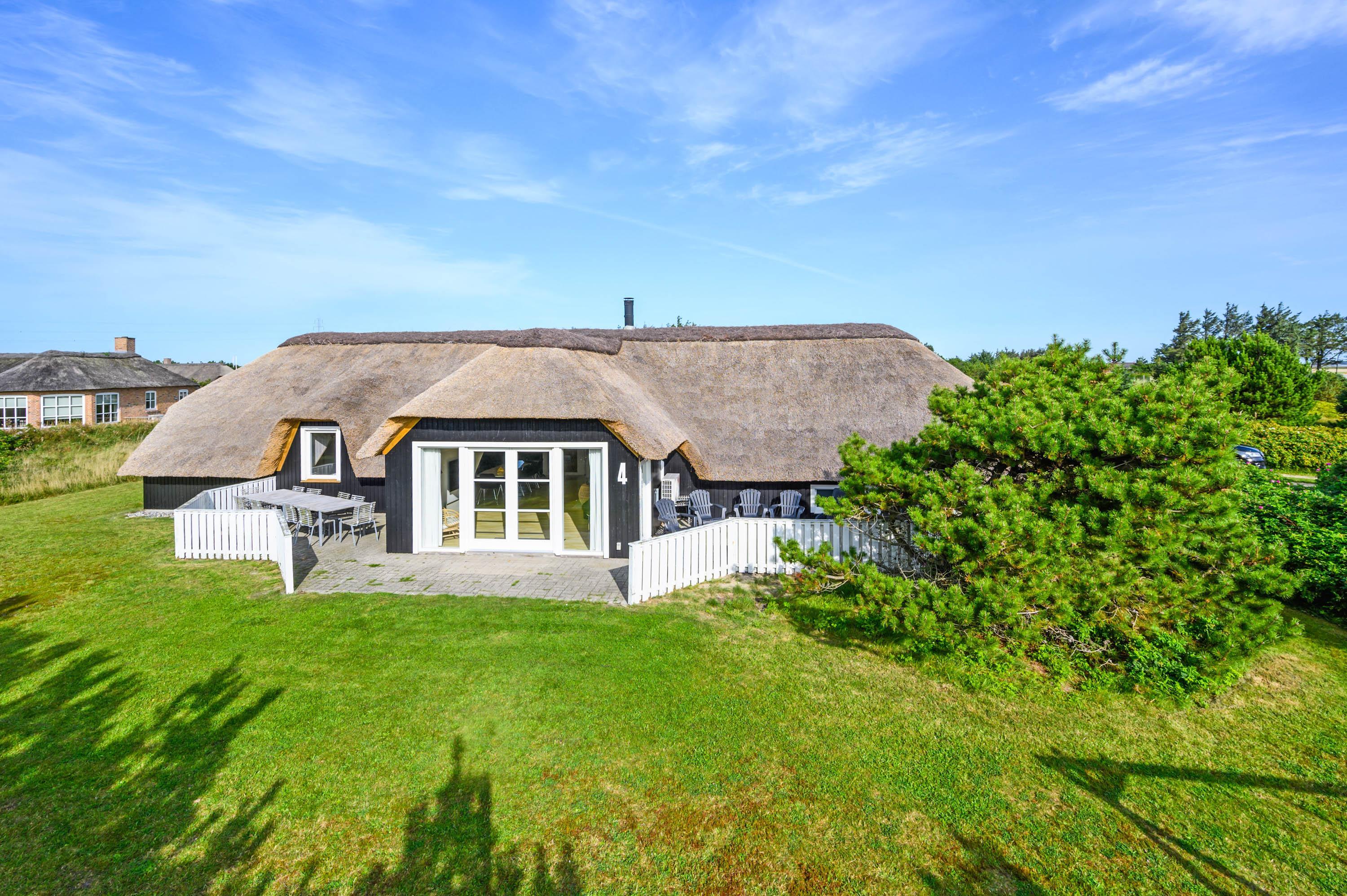 I dette skønne stråtækte poolhus på Nordsø Ferievej 4 i Klegod, der har plads til 10 personer og 2 hunde, kommer I ikke til at mangle noget. Masser af plads, en stor swimmingpool, et lækkert spabad og en sauna – alt, I har brug for til en god og afslappende ferie ved Vesterhavet. I den store have og på terrassen kan I tilbringe mange timer udendørs og samtidig nyde en skøn udsigt over klitterne i Klegod og til Ringkøbing Fjord.