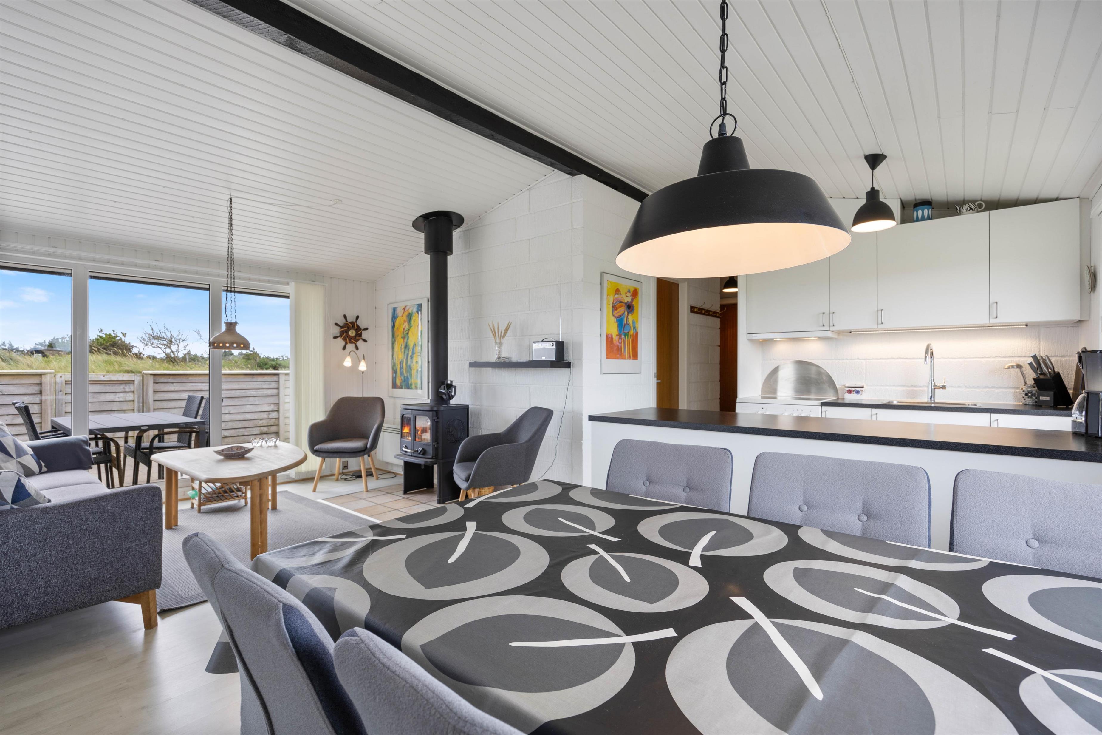 Rammerne til en afslappende og rolig ferie, hvor der er tid til samvær med dem I holder mest af er sat. Sommerhuset på Havklitvej 38 har et dejligt køkkenalrum, som byder ind til hyggelige samtaler, afslappende sofaaftener og lækre måltider. Med et lille og funktionelt køkken kan I altid lave nogle lækre måltider, med gode faciliteter som mikroovn og køleskab med frostboks.